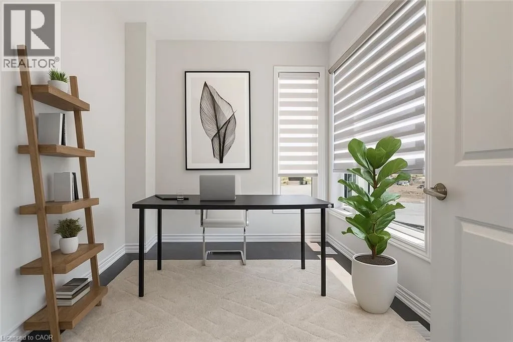GRAND RIVER STREET N/PARIS LINKS RD Welcome to 19 Mears Road, a never-lived-in home just over a year old, offering over 2,200 sq ft of bright, thoughtfully designed living space in one of Paris, Ontario's most sought-after neighbourhoods. Perfect for families or professionals, this home features 4 bedrooms, 4 bathrooms, a main-floor office, and parking for 4 cars. The main floor offers an open-concept layout with a large living and dining area, ideal for family gatherings. The kitchen features quartz countertops, a central island, ample cabinetry, modern appliances, and a side door for convenient access, with a walkout to the backyard. The main-floor office provides a dedicated workspace for remote work or study. Hardwood flooring throughout and an oak staircase add warmth and elegance to the home. Upstairs, the generous primary suite includes a 5-piece ensuite bathroom and a walk-in closet, accompanied by 3 additional bedrooms, 2 full bathrooms, and a separate laundry room for added convenience. The unfinished basement provides excellent potential for future expansion, with a rough-in for a bathroom - ideal for a recreation area, home gym, additional living space, or a future apartment for rental or in-law use. Outside, enjoy an open backyard and an attached garage with inside entry. Located within walking distance to downtown Paris with charming shops and restaurants, and just minutes from the Grand River with scenic trails and recreational opportunities. Close to schools, parks, trails, and major highways, this home offers the perfect combination of comfort, style, and convenience. A rare opportunity to own a like-new, spacious detached home in a prime Paris location. (id:27476)