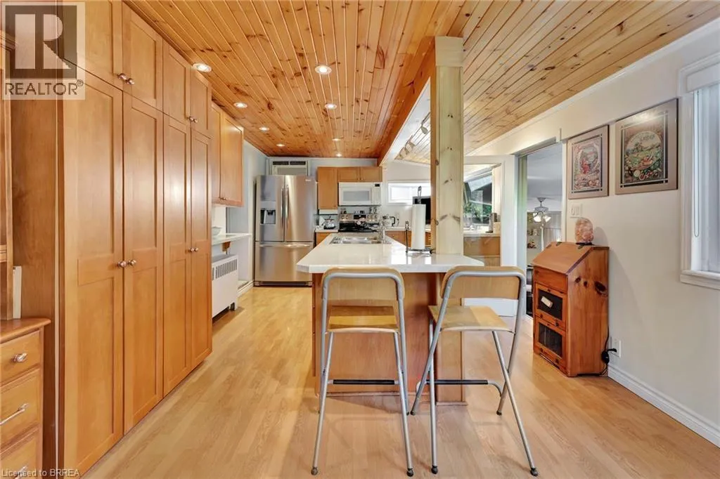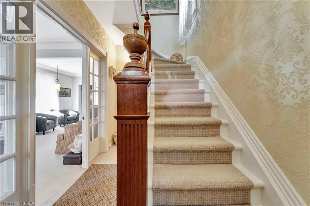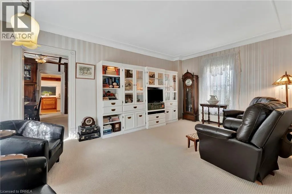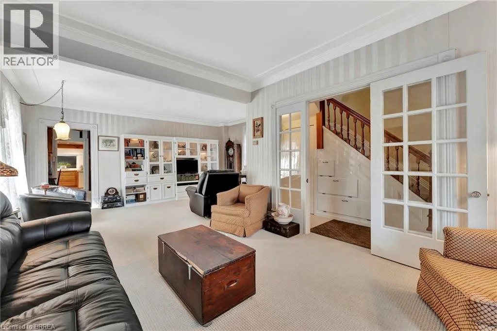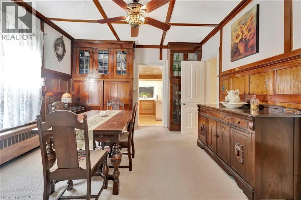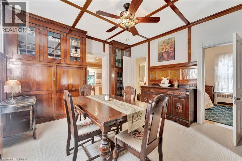 William St. turn left to Walnut St. Property on thr left watch for signage. Full of charm and character, this lovely century home (built in 1900) offers 3 bedrooms, 2 bathrooms, and a detached 2-car garage. A welcoming front porch invites you into the spacious main level featuring a bright living room, elegant dining area, and a functional kitchen with access to a cozy den. This level also includes a bedroom and a convenient 2-piece powder room. Upstairs, youâll find two generously sized bedrooms and a 4-piece bathroom. The finished basement adds even more living space with a large recreation room highlighted by a charming brick corner with a wood stove, as well as a laundry area. Enjoy the outdoors in your private backyard or make use of the detached double garage for parking and storage. Located in the picturesque town of Paris, this home is just minutes from scenic trails, the Grand River, downtown restaurants, and boutique shopping. Fall in love with small-town living and make this your special place to call home. (id:27476)