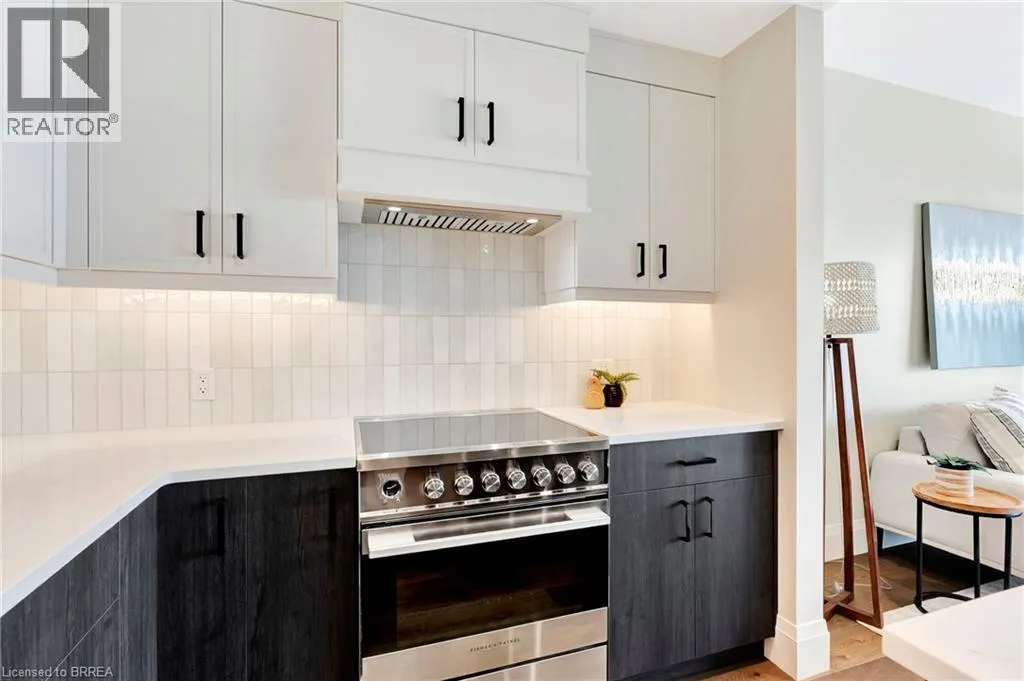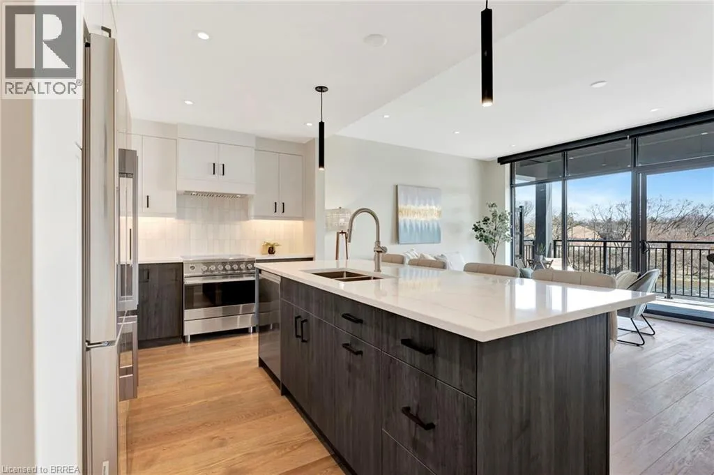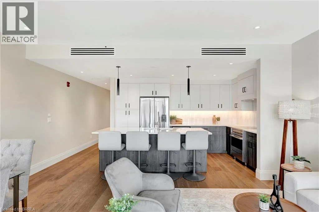 Located Across from the cenotaph. Parking in municipal lot or on mechanic St due to construction. Step into riverside luxury at Unit 203âan elegant 865 sq/ft 1-bedroom suite with a private 150 sq/ft riverside patio that brings the beauty of the Grand River right to your doorstep. This is more than just a condoâit's a lifestyle. From the moment you enter the secure, boutique building, you'll feel the difference that true craftsmanship and thoughtful design make. Inside, the open-concept layout is rich with upscale finishes: wide plank hardwood flooring, automated blinds, a chef-inspired kitchen with integrated Fisher & Paykel appliances, quartz countertops, and a spa-like bathroom complete with heated floors. Whether you're enjoying morning coffee by the river or hosting friends in your stylish kitchen, every detail in this suite is designed to impress. And with direct outdoor access and low-maintenance living, it's the perfect blend of nature and modern luxury. 5 units remain in this one of a kind 6 unit condo building in the heart of Paris! (id:27476)
