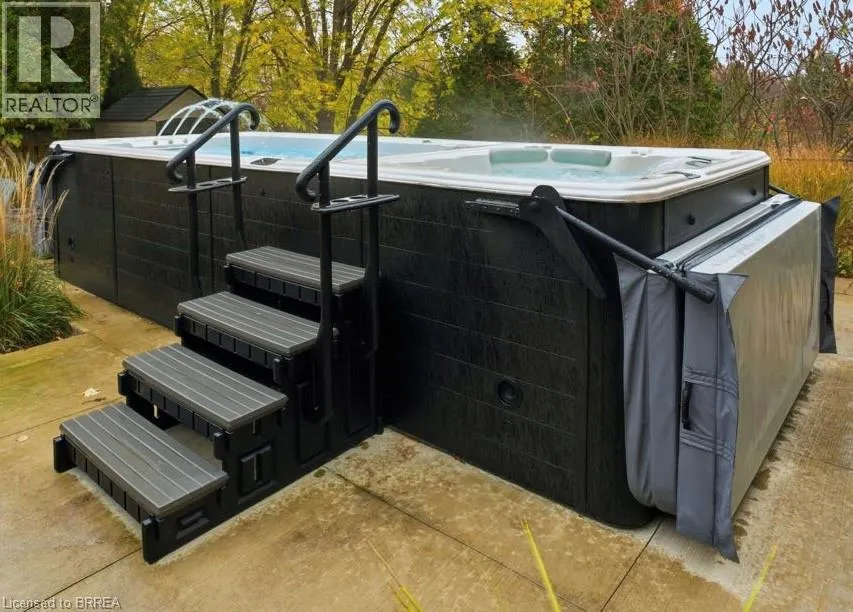 Rest Acres Rd to King Edward St., West on King Edward St. to Dundas St W. Welcome to 209 Dundas Street West in beautiful Paris, Ontario, where small-town charm meets modern comfort. This meticulously maintained 3+1 bedroom, 4 bathroom home offers over 2,500 sq ft of finished living space on a private lot beside a tranquil pond and mature trees, creating a peaceful setting with no side neighbour and natural views from nearly every room. Step inside to a bright, open-concept main floor featuring a spacious living and dining area that flows into a large eat-in kitchen with plenty of cabinetry, pantry storage, and a breakfast nook overlooking the fully fenced backyard. The cozy family room is the perfect place to unwind, complete with a gas fireplace and large windows framing the pond and green space beyond. A two-piece bath and inside entry to the double garage add everyday convenience. Upstairs, you'll find three generous bedrooms, including a lovely primary suite with a four-piece ensuite and walk-in closet. A full family bath and second-floor laundry make busy mornings easy and efficient. The finished lower level adds even more versatile living space with a large recreation room, a three-piece bath, and a fourth bedroom or home office - ideal for guests, teens, or working from home. Step outside to your private backyard oasis and enjoy a 19-foot dual-stream SwimLife swim spa, added in 2022, offering the ultimate year-round fitness and relaxation experience. Whether you're swimming laps, entertaining, or enjoying a quiet evening under the stars, this outdoor space is designed for comfort and enjoyment. Some updates include roof shingles (2018) and furnace and A/C (2017), providing peace of mind and efficiency. Located just minutes from Highway 403, this home offers quick access to Brantford, Hamilton, and Cambridge, plus all the boutique shops, cafés, and riverfront trails of downtown Paris. A perfect blend of space, privacy, and location - this home truly has it all. (id:27476)
