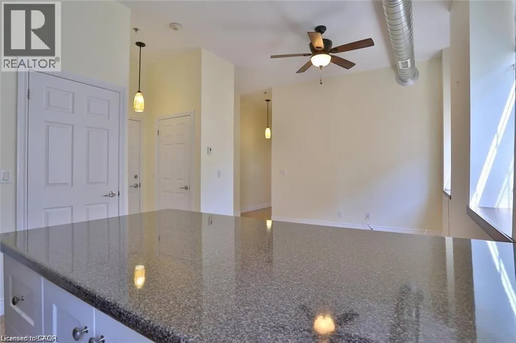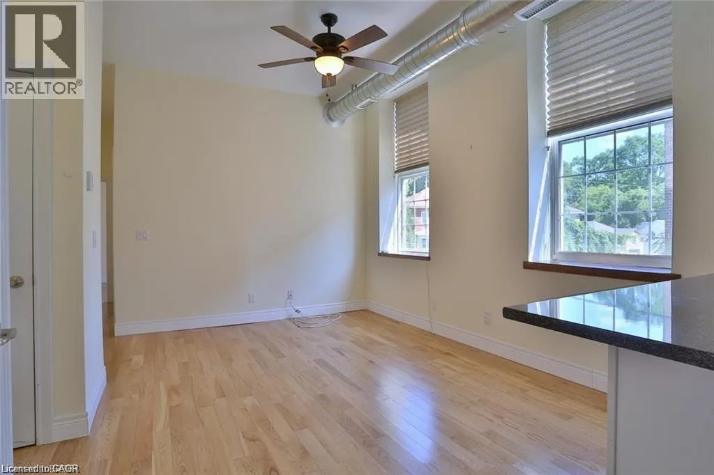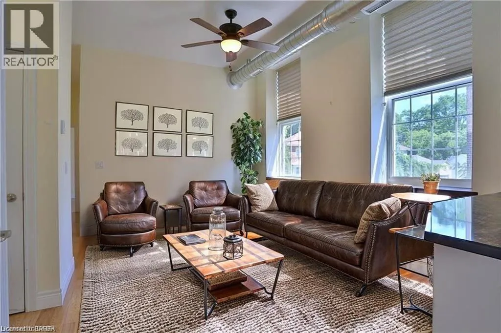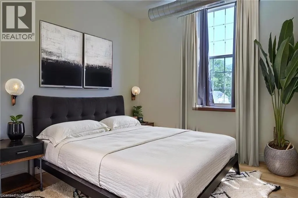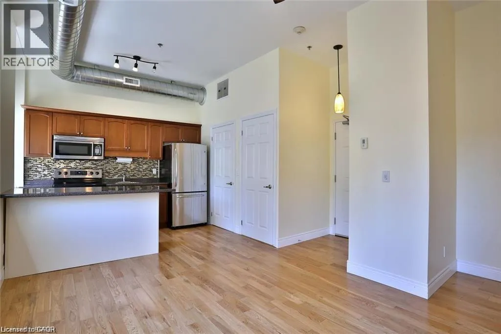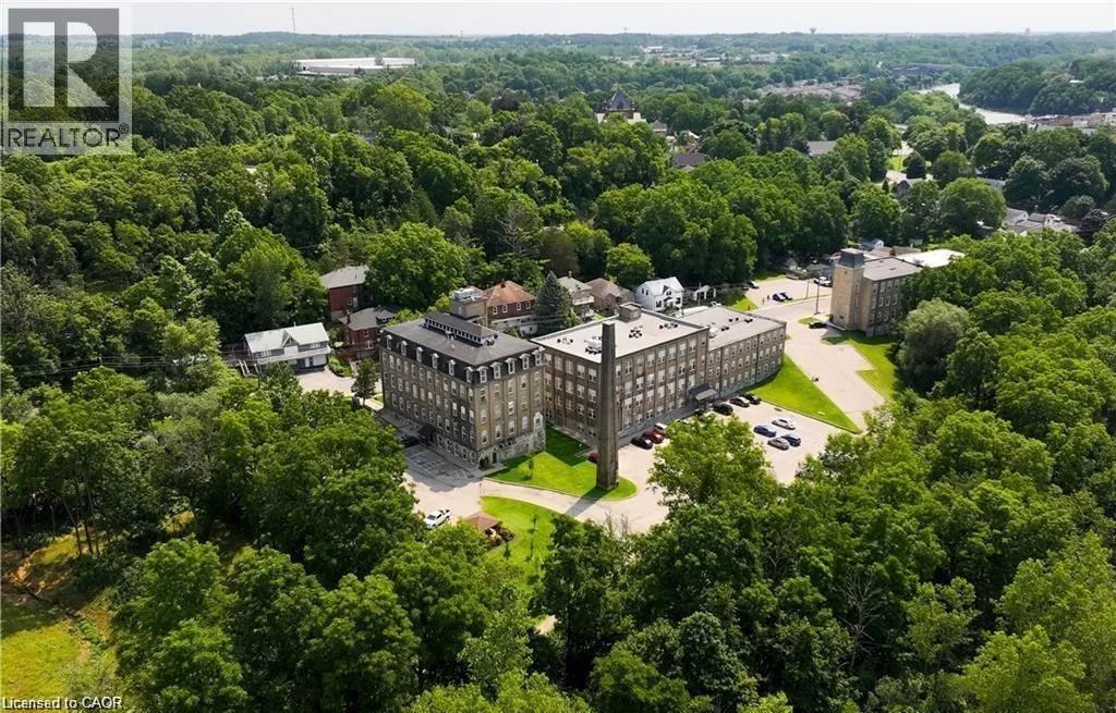 Grand River N Mechanic St West River St Welcome to 140 West River Street Unit 301. These units feature the perfect blend of modern convenience mixed with historical elements including 10ft ceilings and bright windows throughout providing lots of natural light and an open concept feel ! Offering 1 large bedroom, 1 bathroom, open concept living room / kitchen area with island and a special bonus of in suit laundry. Located steps away from the Nith River and only minutes from local bakeries, shops and trails you will not be disappointed. This beautiful Historic building has amenities such as a large party room, secure access, elevator, storage locker, outdoor patio, dedicated parking and amazing views from your windows to enjoy. Some recent updates include new air conditioner 2024; new custom window coverings done in April 2025 (black out in the bedroom); replaced light fixtures and faucets. Water heater and water softener are both new, rented. Don't miss out on your chance for condo living in the prettiest town of Paris! (id:27476)