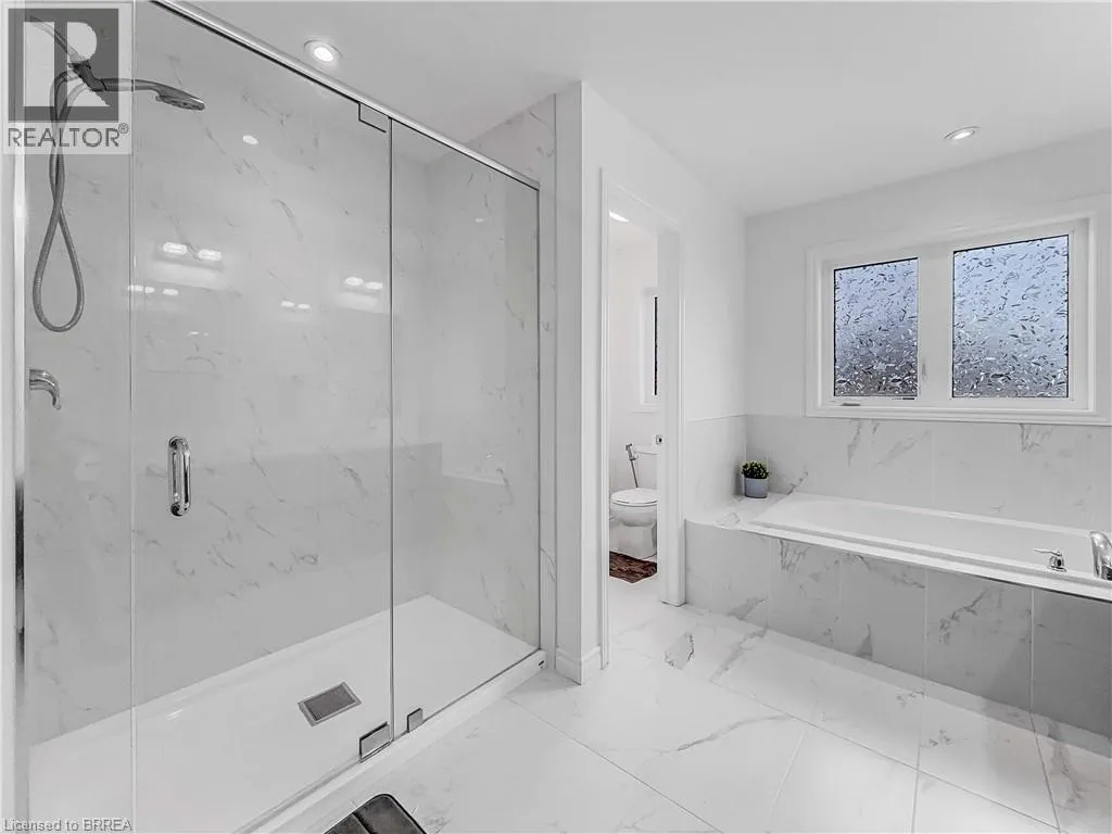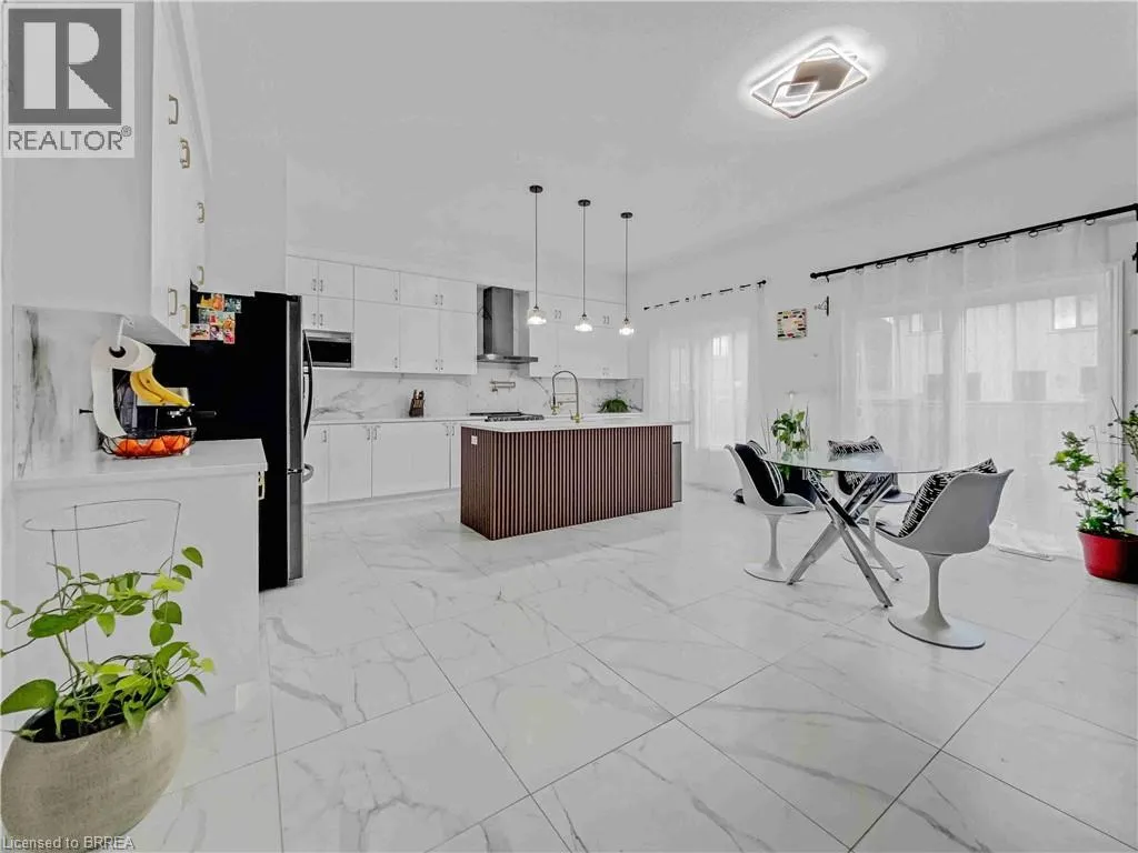 Grandville Circle & Sass Crescent Welcome to 28 Sass Crescent in Arlington Meadowsâone of Parisâ top family communities. This modern, beautifully finished home features 10-ft ceilings, bright open-concept living, and a stunning custom feature wall in the living room. The chef-inspired kitchen showcases stone counters, a gorgeous tone-on-tone backsplash, extended cabinetry, pantry storage, and a custom-designed island that anchors the space. A main-floor office/den easily converts to a fifth bedroom, complemented by a convenient side entrance ideal for multigenerational living. Upstairs offers four spacious bedrooms and three full bathrooms, including two private ensuites, a Jack & Jill, walk-in closets, and a second-floor laundry plus bonus den. The 9-ft basement provides endless potential for a gym, theatre, or future suite. A fully fenced backyard with evening lighting, double garage, and extended driveway complete this exceptional home. Close to schools, parks, trails, and Highway 403âthis is a rare find in a premium neighbourhood. (id:27476)