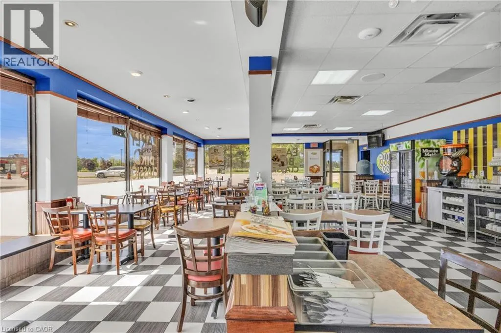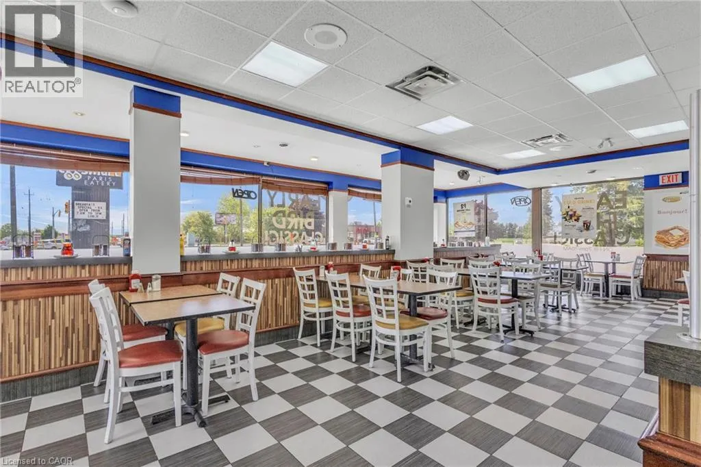Dundas St And Paris Rd Take advantage of this exceptional opportunity to own a successful and well-established restaurant located at one of the countyâs busiest intersections, ensuring maximum exposure and high foot traffic. Operating daily from 7:00 AM to 3:00 PM, the business offers a popular and diverse menu of breakfast and brunch options with dine-in, takeout, and delivery services. The spacious 1,700 sq ft retail area includes seating for 64 guests indoors plus additional patio seating, and is supported by ample on-site parking. This turn-key operation features growing sales, low food costs, affordable franchise fees, and strong profit margins. With low rent, a long-term lease, and comprehensive training and support provided, this is an ideal opportunity for both new and experienced operators. Don't miss your chance to own a thriving business in a high-demand location. Low Monthly Rent: $5,860 including TMI and HST (id:27476)