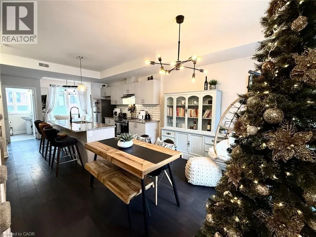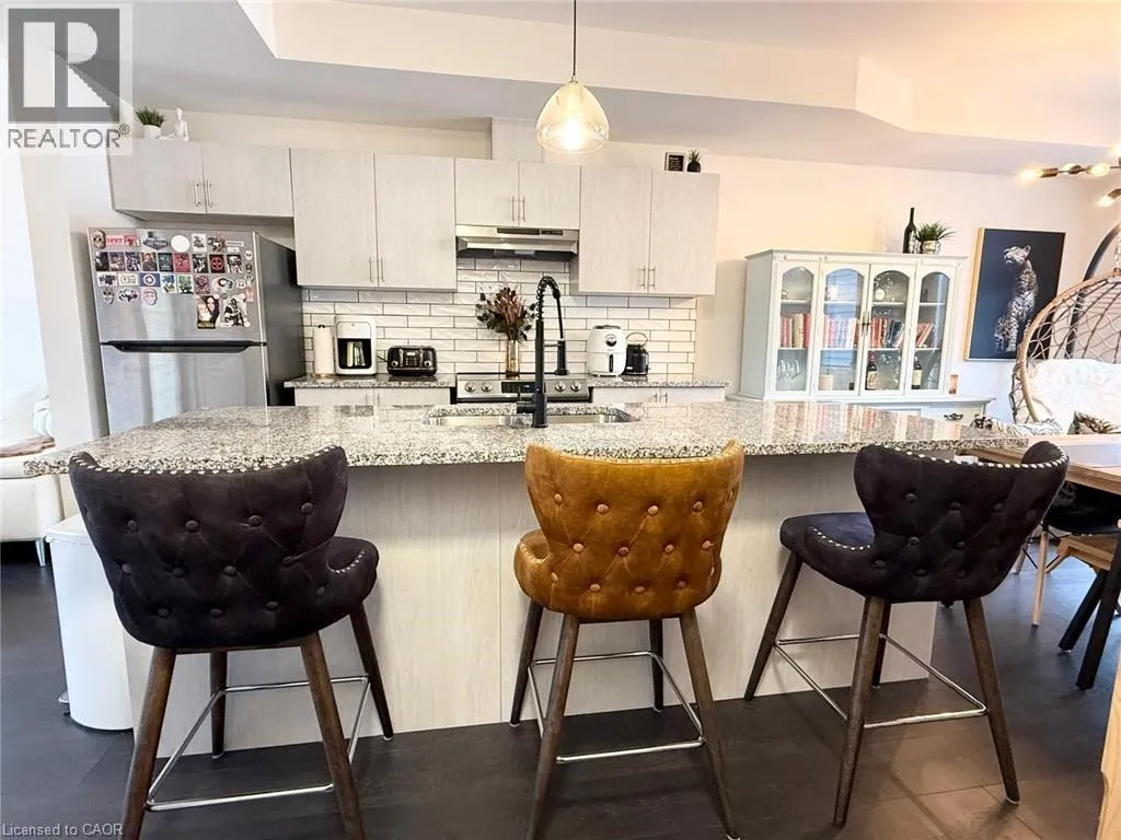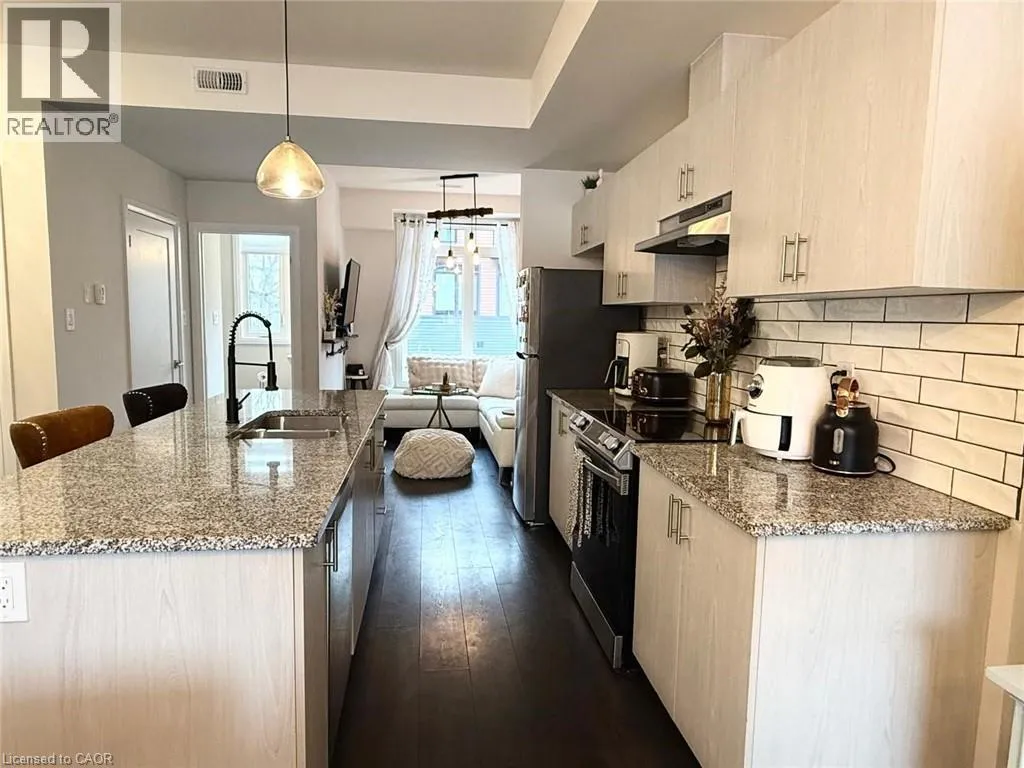 Dundas To Willow Street Beautiful exquisite townhome located in spectacular location with surrounding views of Grand River in the heart of Paris. Gorgeous open concept on main floor that beams with natural light and has hardwood floors. Living & formal dining areas (with balcony east view) and brilliant chef style kitchen with granite counters and huge island, stunning cabinetry, stainless steel appliances where you can begin making wonderful memories entertaining with friends and family or sit in your cozy living area and relax while you view the Grand River and watch the sun go down. The upper level has hardwood floors, classical master bedroom with walk in closet and 3 pc ensuite with delightfully large shower. Also on the upper level is a 2nd bedroom, 4 pc main bathroom and laundry closet. This property just keeps on adding to its uniqueness with your own roof top terrace, once there you have your own oasis without leaving your home! Also a bonus of having an attached garage for your vehicle and 1 outside parking space. So many opportunities living in this beautiful environment with lots of nearby nature, walking trails, canoeing and sight seeing in the delightful town of PARIS. This is a home where you can live your life the fullest. Book your showing today. (id:27476)