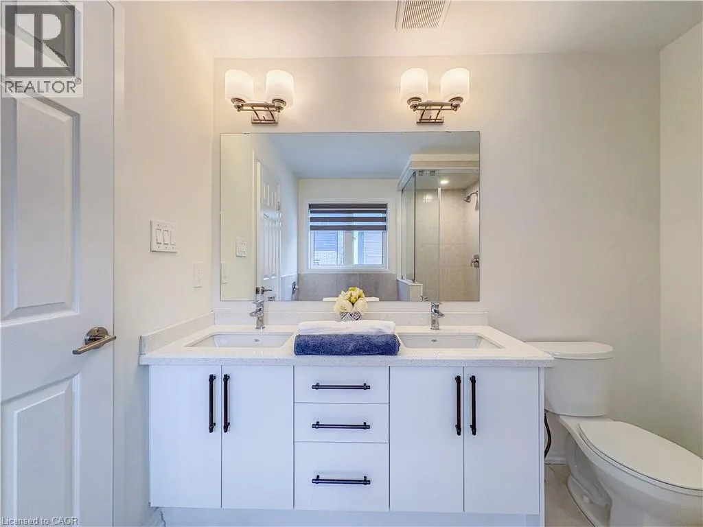 403- Rest Acres Rd- Powerline Rd- Brewis St Stunning 4-bedroom, 4-bath luxury home by LIV Communities (The Boughton 5, Elev. C, 2023), featuring an elegant stone, stucco, and brick exterior. The bright, open-concept layout offers 9-ft ceilings, engineered hardwood floors, and an expansive great room highlighted by a sleek direct-vent fireplace and a large window that fills the space with natural light. The chefâs kitchen impresses with custom built-in stainless-steel appliances, glossy European-style cabinetry, a lantern glass backsplash, quartz island, and upgraded lighting. Builder-installed pot lights throughout the main floor ensure the home remains bright and inviting, even on gloomy days. Convenient garage access leads to the mudroom and unfinished basementâready for your personal design vision. This home delivers exceptional space, upgrades, and functionality in all the right places. The upper level features a grand primary retreat with French door entry, a spa-inspired 6-piece ensuite with soaking tub and glass shower, and his-and-her closets. The second bedroom offers a raised ceiling and private ensuite with a sleek glass standing showerâperfect for unwinding after a long day. The third bedroom showcases views of a decorative exterior balcony, while the fourth bedroom provides flexible use for a growing family or home office. Ideally located just minutes from Hwy 403, Brant Sports Complex, top-rated schools, scenic trails, shopping, and dining. Extras include: lantern glass backsplash, builder-installed pot lights (main floor), motorized window coverings (main floor), undermount sinks, white quartz countertops throughout, glossy European-style cabinetry in the kitchen and bathrooms, upgraded light fixtures, upper-level laundry room, bidets in two bathrooms, direct-vent gas fireplace, oak stairs, HRV and built-in appliances. (id:27476)