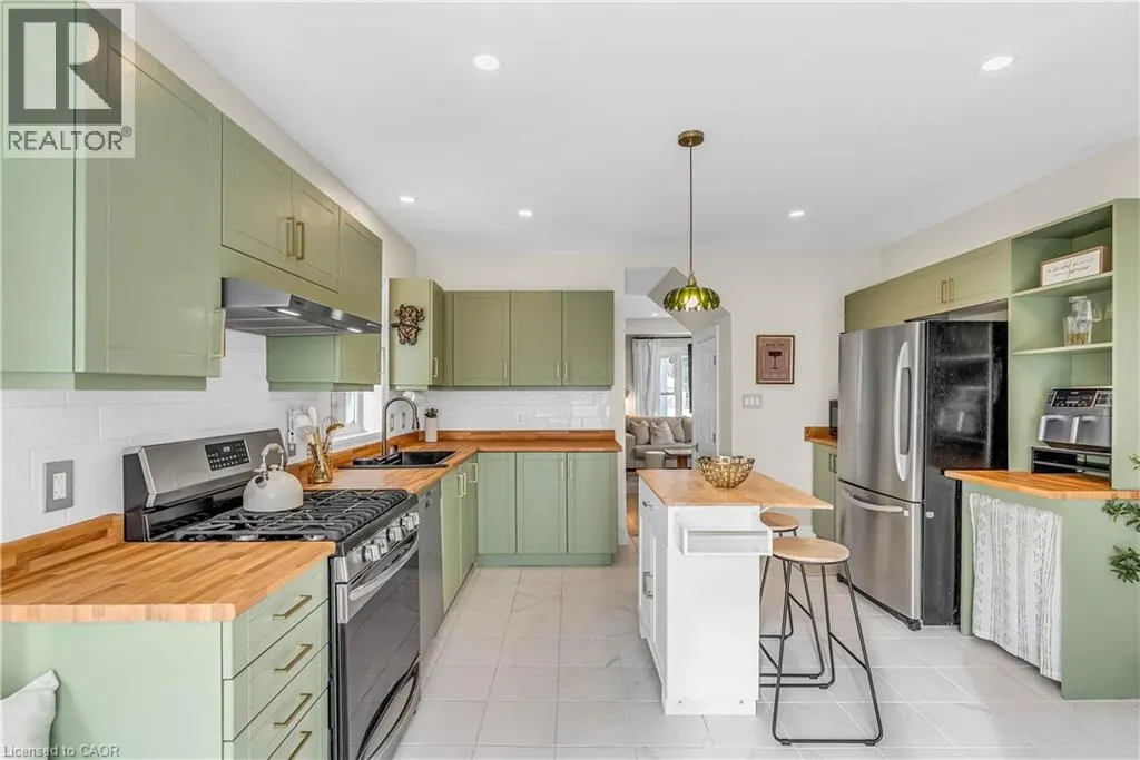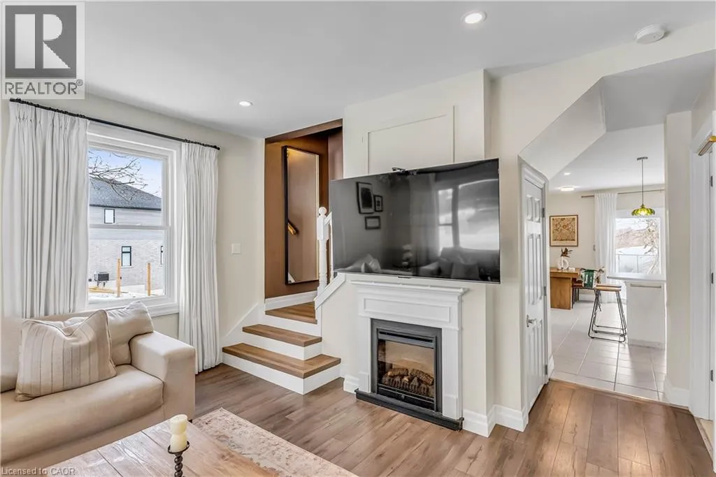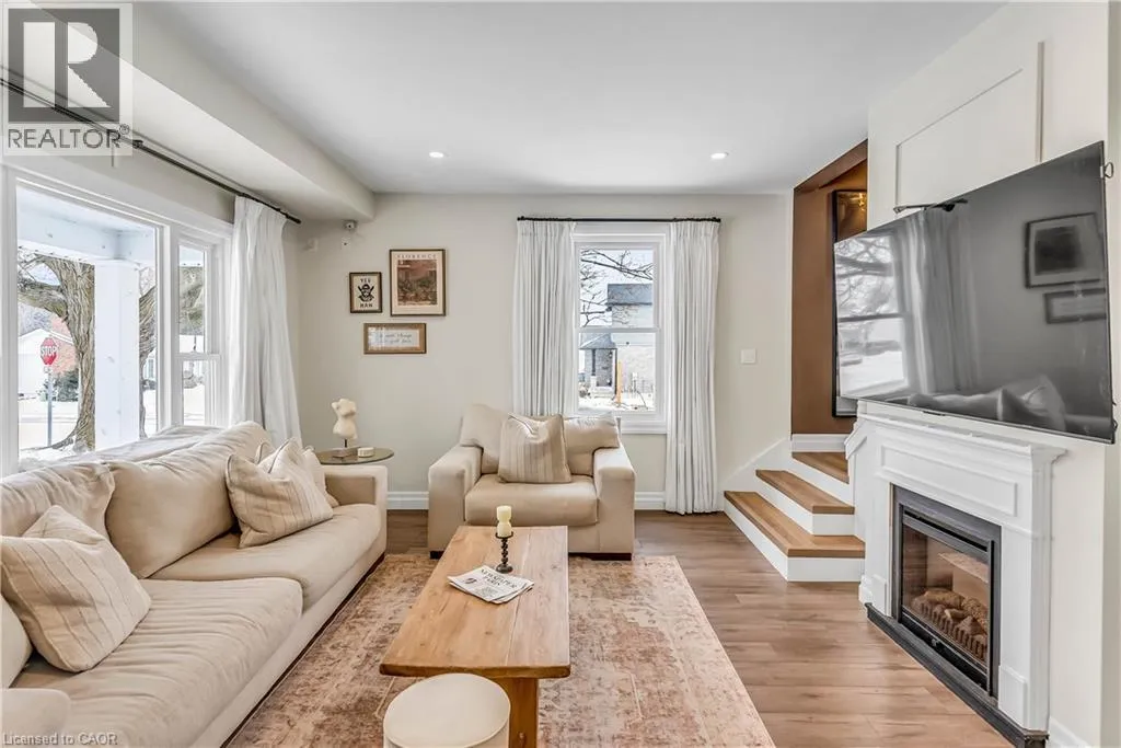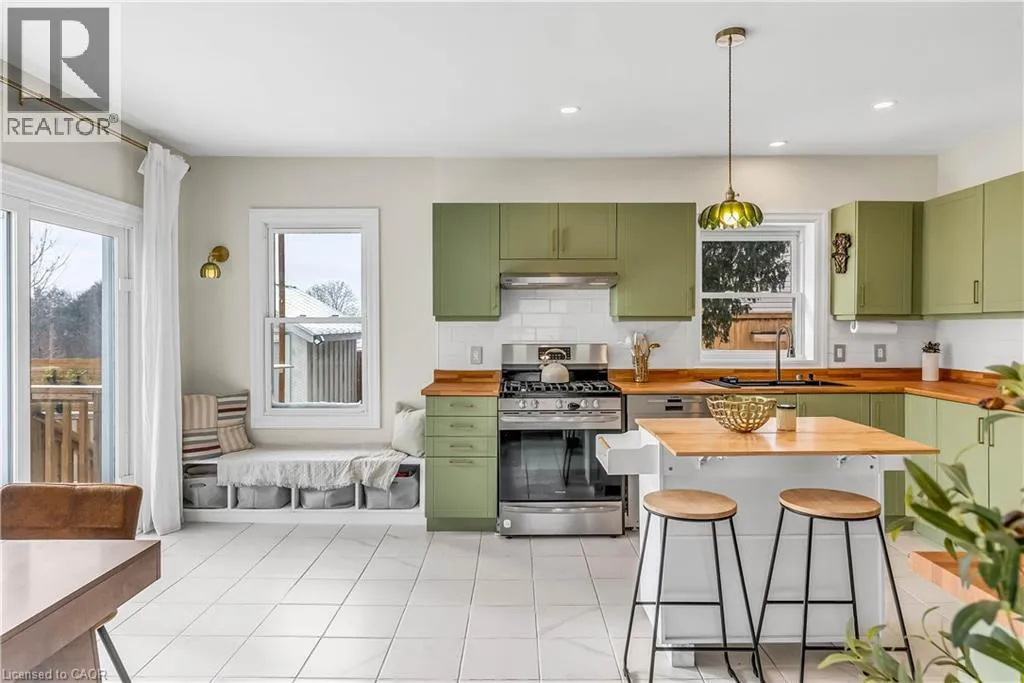 Market St. TO Spruce St. TO Mulberry St. TO Wellington St. Welcome to 50 Wellington St, a thoughtfully updated century home where timeless character meets modern investment. This 2 bedroom, 2 bath residence has seen over $65,000 in upgrades, including a $25K retaining wall, $15,000 paved driveways, and a $10,000 finished basement, delivering both style and substance. Car enthusiasts, hobbyists, and shop seekers will appreciate the finished double car garage, complete with new flooring and a propane wall mounted heater, allowing for comfortable, year round use. With parking for 10+ vehicles across two paved driveways, this property offers rare functionality. Inside, a bright, inviting layout showcases a light filled living room with large windows, an electric fireplace, and custom built-ins. The eat-in kitchen offers generous counter space and storage, flowing seamlessly into a versatile bonus room ideal for a home office or play space. A full 4 piece bath and main floor laundry complete the level. Upstairs features two well proportioned bedrooms and a 3 piece bath, while the partially finished basement adds flexible living space and storage. Outside, enjoy a fully fenced yard with a newer two-tier deck, perfect for entertaining. Located in the heart of Paris, just steps to downtown, the scenic trails, schools, and parks, this is a turnkey home with meaningful upgrades in one of the areaâs most desirable communities. UPGRADES: Fence (2023), Deck (2023), Siding (2021), Windows & Doors (2018 & 2022), Garage Roof (2018), Furnace & AC (2018), Sprayed Insulation (2018), Board & Batten (2018), Electrical wiring throughout (2018), Pex Plumbing throughout (2018), Attic reinsulated (2018), and House Roof (2016). The entire home was updated from the mechanicals to paint, flooring, trim, newer kitchen and bathrooms. Retaining wall (2025), Finished basement (2025), Bathroom reno (2025), Paved Driveways (2025), Dishwasher (2025), Hood vent (2025), Paint (2025), Porch swing (2025), Bosch dishwasher $1500 (2024). (id:27476)
