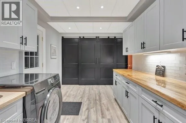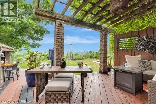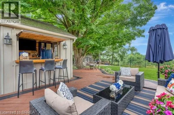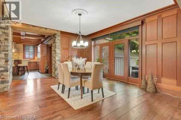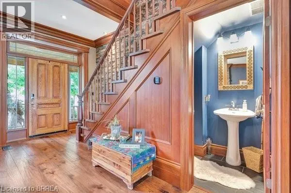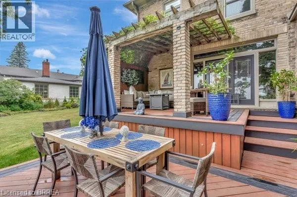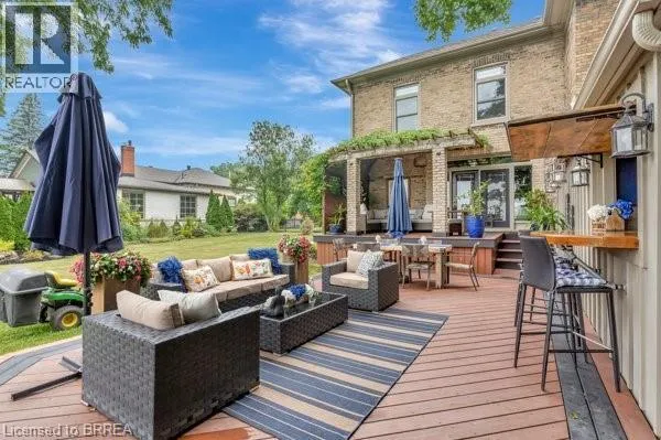 Grand River Street North to Banfield Street. Step into timeless elegance with this exquisite 1879 century home which offers over 2,800sqft above grade. Brimming with charm and character, this 4-bedroom beauty features a spacious primary suite with a beechwood accent wall, cozy electric fireplace, and a spa-inspired ensuite boasting a soaker tub, custom stone walk-in shower, dual sinks, and an elegant bow window. Upstairs, theres another full bath, while the main level offers a handy 2-pc bath; both have been tastefully renovated. The heart of the home is a stunning cherrywood kitchen complete with granite countertops, functional island, pot lights, sleek stainless steel appliances, and a separate bar area with a second sink = the epitome of a chef's kitchen. Enjoy morning coffee on the covered front verandah, or unwind with countryside views on the tiered back deck with a bar area and covered seating. The large formal dining room and inviting living room boast hand-scraped hickory engineered hardwood floors, oversized windows, crown molding, and a warm gas fireplace. A stunning solid wood staircase, stacked stone accents, and thoughtful craftsmanship throughout showcase attention to EvErY detail. The laundry/mudroom area, just off the breezeway & 1.5 car garage/shop, offers both ample storage & convenience. The high & dry basement provides lots of additional storage space as well as a recreation room for the kids to hang-out. Updates include: windows, doors, plumbing, electrical, furnace & AC too. Situated on generous lot in Grand Paris = Canada's Prettiest Little Town, you are just a short walk to quaint downtown shops, fine dining, and scenic trails along the Grand River. This incredible home blends historic charm with modern luxury, and would make anyone happy to call it home. Like to entertain & host guests? This is, most certainly, the property for you!!! Bonus: the severed lot (to the right) offers a rare opportunity for you to pick your neighbours and build a home right next door (MLS # 40797054). (id:27476)