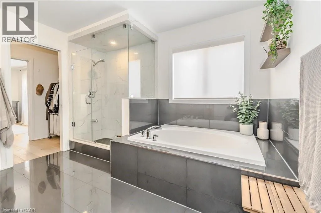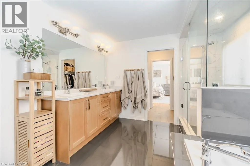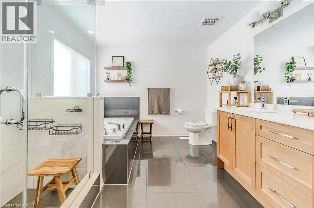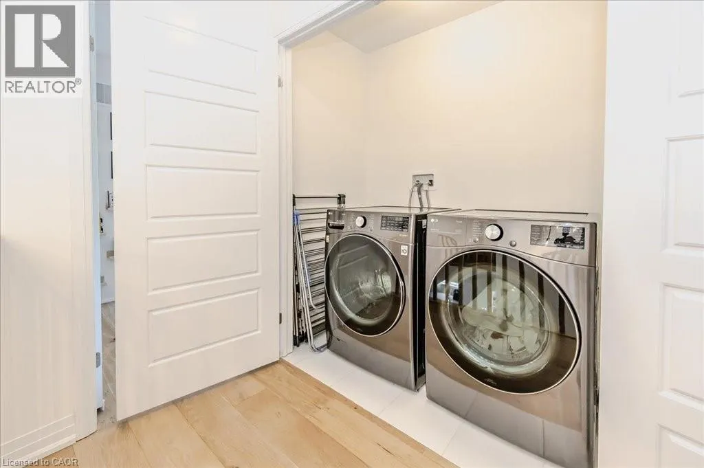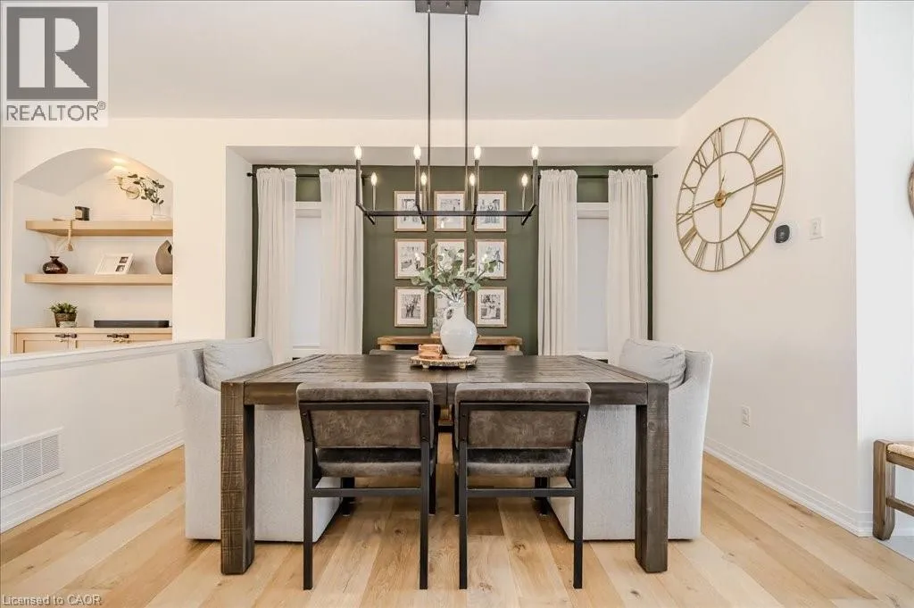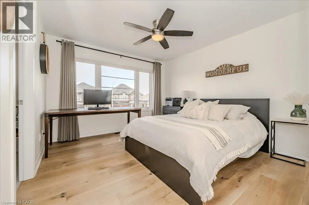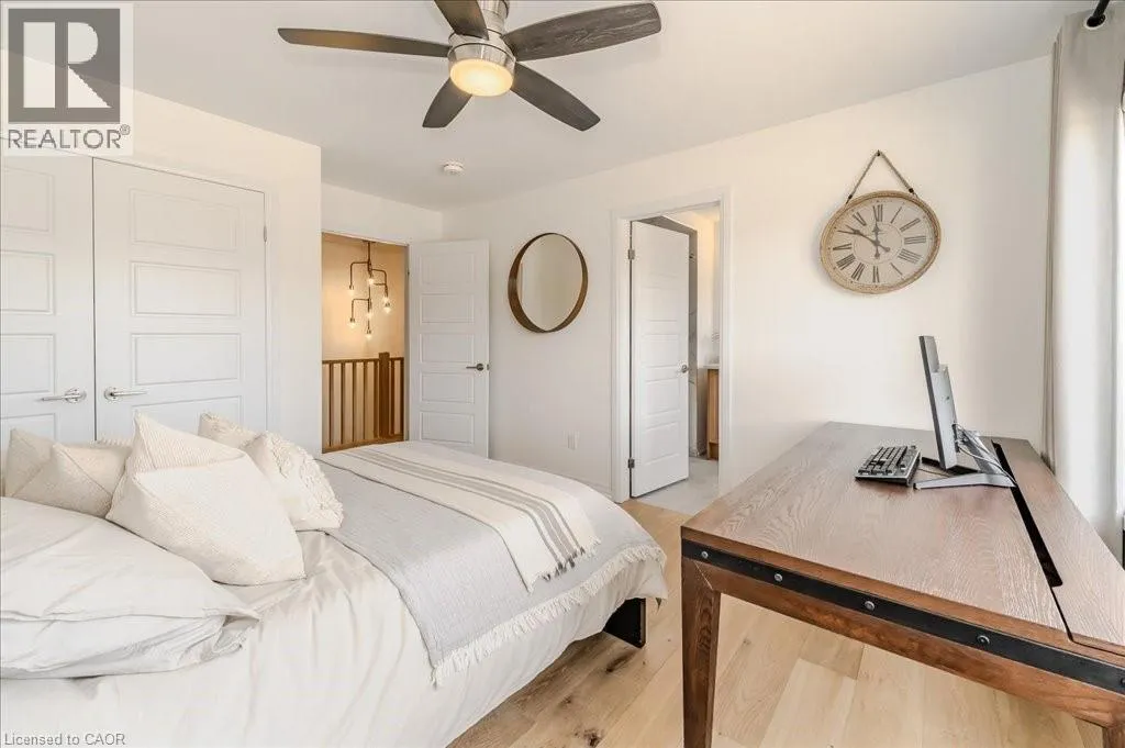 Stunning 4-bedroom, 3.5-bathroom home in the heart of Paris, Ontario, built by LIV Communities, offering 2,646 sq ft of luxurious living space. This fully upgraded home features wide plank European white oak hardwood throughout, 9-foot ceilings on the main floor, and custom lighting and window shades throughout (2022). The grand living room boasts a quarried stone fireplace with custom white oak built-ins and a large premium Napoleon gas fireplace (2023). The chef-inspired kitchen (2022) is a dream, with floor-to-ceiling soft-close cabinetry, a 36 Fischer & Paykel induction range, Miele dishwasher, and an oversized quartz island with seating for six. Enjoy convenient extras like a built-in Insinkerator for instant near-boiling water, reverse osmosis system, a large pantry, and hidden appliance garage.The spacious primary ensuite offers a large double vanity, tempered glass shower, and a large soaker tub. Two more bedrooms offer a Jack & Jill ensuite bathroom and the third bedroom boasts its own ensuite bathroom. The upstairs is complete with an LG washer and dryer (2021) which provides added convenience. The private backyard features a new wooden privacy fence (2024), a two-tiered deck (20' x 25'), and a new 12' x 10' gazebo, perfect for entertaining. Additional highlights include a 4-car driveway, 2-car garage with Wi-Fi opener, and a covered porch and second floor balcony. The basement is unspoiled and waiting for your finishing touches.This home blends modern upgrades with classic craftsmanship and is ready for you to move in and enjoy. (id:27476)