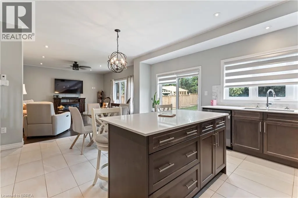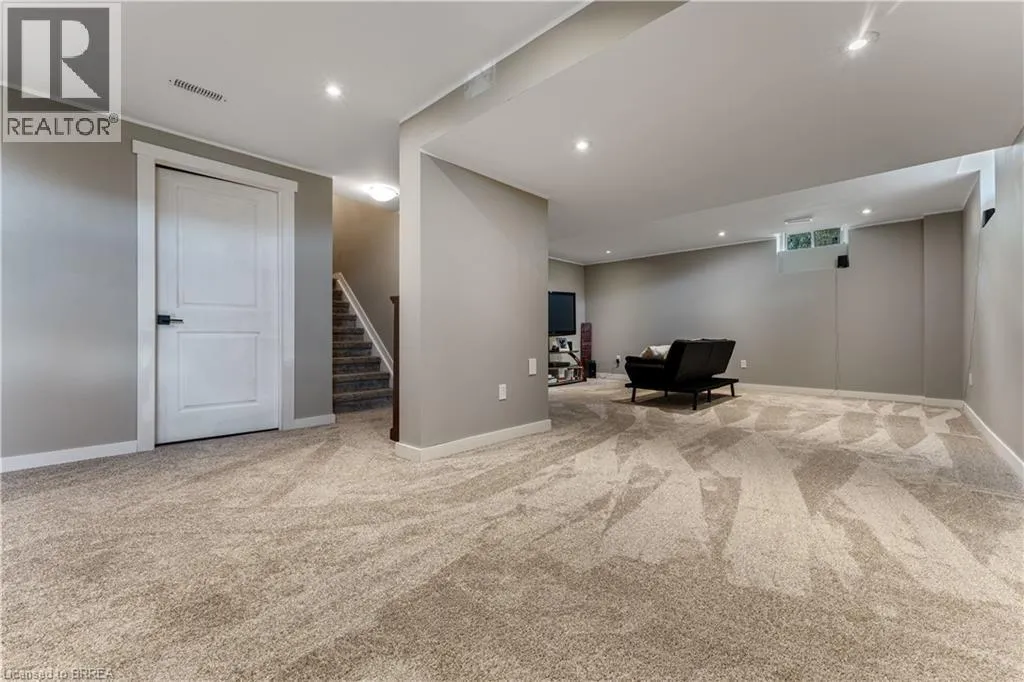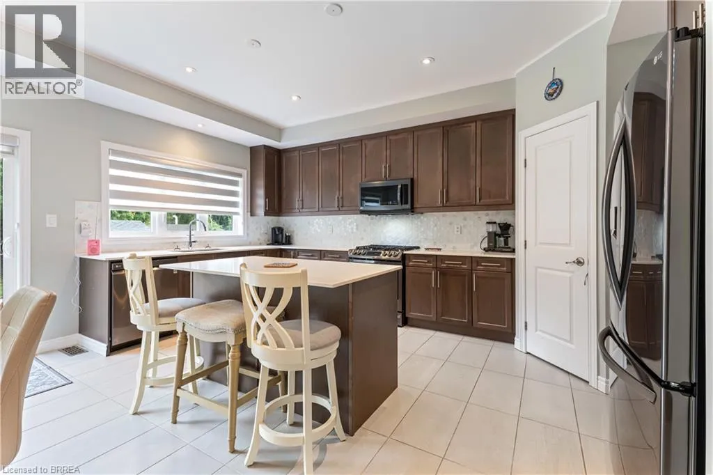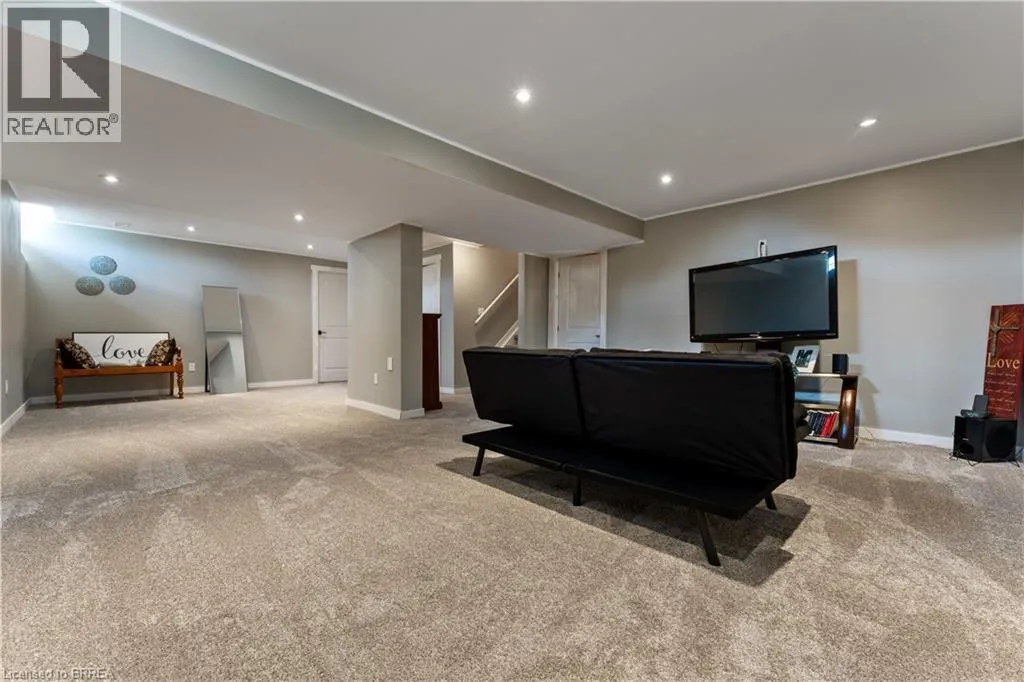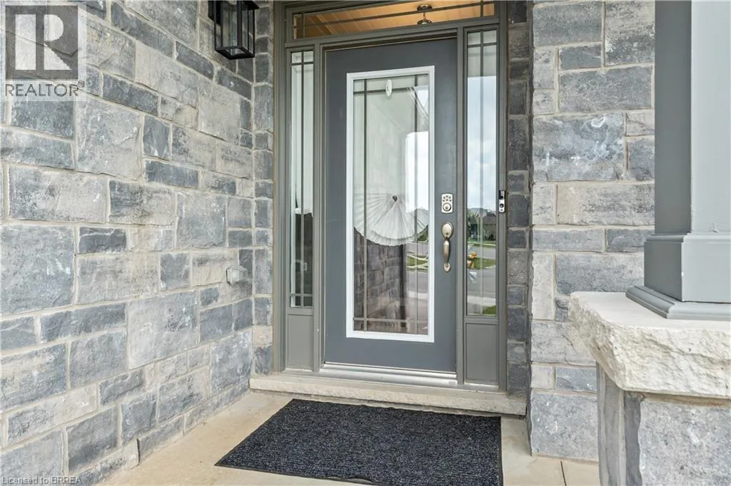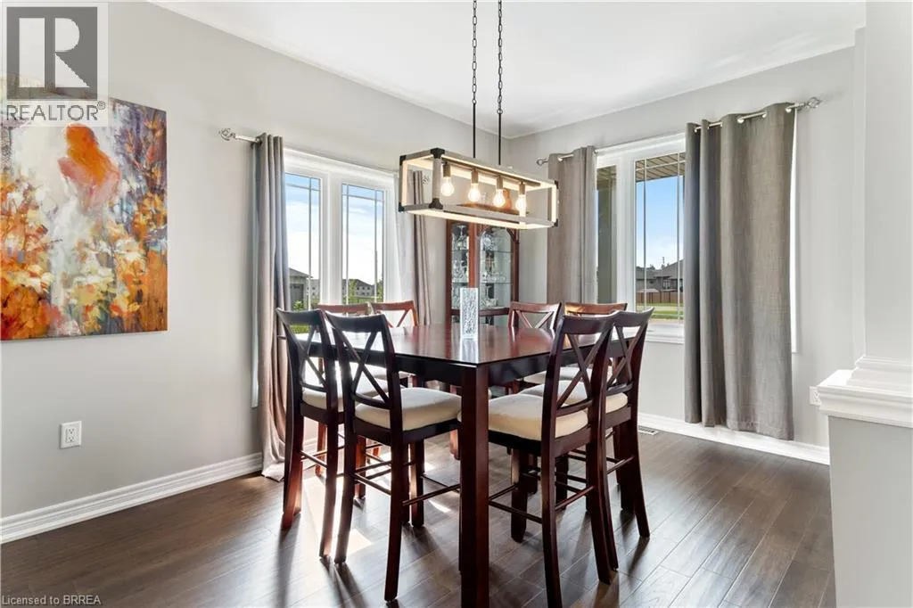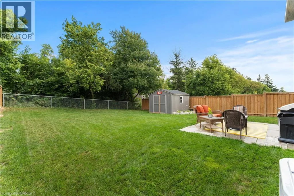 Rest Acres Road to Vic Chambers Place, Right on Lorne Card Drive Desirable executive home on a private premium lot with no rear neighbours. This 4 bedroom 2 and a half bathroom Losani home features include carpet free main floor area, open concept main floor area, a large porch and a 4 car driveway to name a few of the highlights. Main level has a separate formal dining room at the front of the home, an office, a 2pc bath, kitchen with large island and walk in pantry and quartz counter top with backsplash, 9 ft ceilings a large great room with plenty of natural light and hardwood flooring throughout. Sliding patio doors lead you to your private rear yard over looking the treed forest behind you, a patio to sit and relax and a fully fenced yard with storage shed. The solid oak staircase leads you to the Second level which has 4 bedrooms with a spacious master having a walk in closet, 5 piece ensuite with glass door shower, soaker tub, double sink in the vanity, and a walk out to the balcony to enjoy your morning coffee. The Laundry room is also located on the second floor and 4 piece bathroom also. The lower level is partially finished with a large recreation room, a storage room, a utility room, a rough in for 3pc bathroom and also can finish another bedroom to bring the total to 5 bedrooms. Newly built park beside the home, mins from the 403 highway, downtown Paris and shopping and recreation center/skate rink within a minute walk. Must be seen to be appreciated! (id:27476)