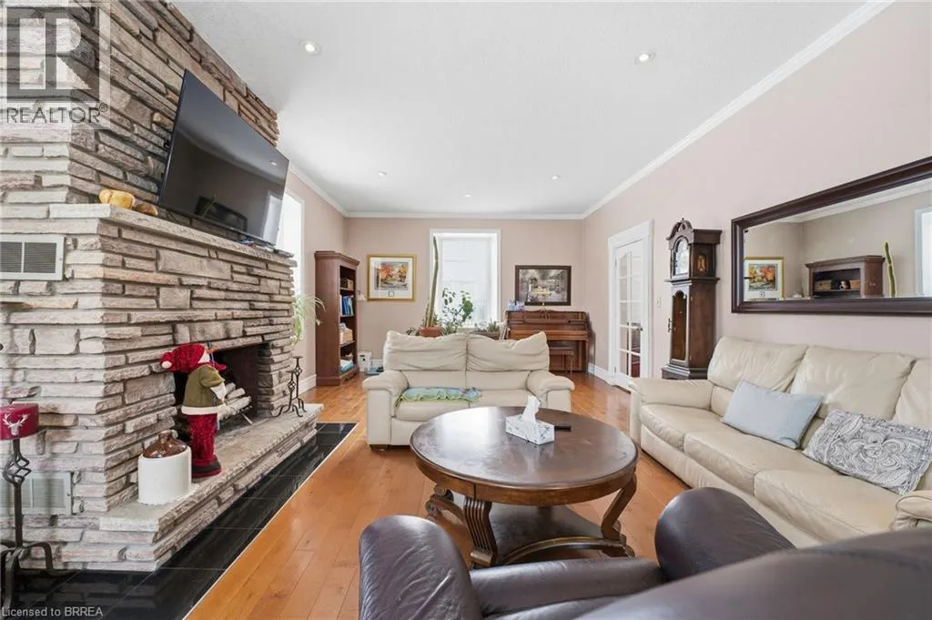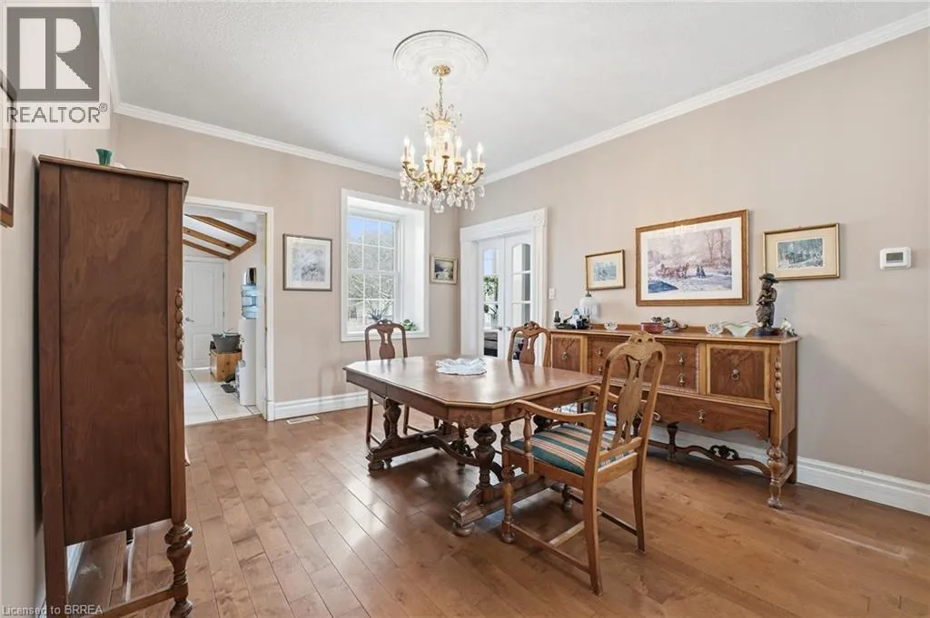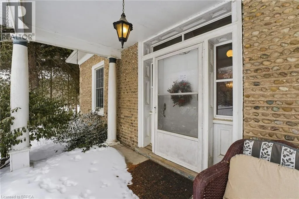 Grand River Street N/ Silver Street (Hwy 52) This impressive home is set back from the road on a 0.69 of an acre lot and features a covered front porch with an inviting entrance, a huge living room for entertaining that has a 10â4â high ceiling with pot lighting, crown molding, hardwood flooring, and lots of natural light through all the windows, a formal dining room for family meals, a bright eat-in kitchen with tile flooring, an updated 4pc. bathroom at the front of the house that has tiled walls and a modern vanity, spacious bedrooms with more hardwood flooring and crown molding, another bathroom at the back of the house that doubles as a convenient main floor laundry room, and there is a large bedroom with a vaulted ceiling and patio doors leading out to the deck in the private backyard(the bedroom is currently being used as an office and workspace). The basement boasts a cozy recreation room with a walk-up to the backyard, a den, and plenty of storage space. You can relax with your family and friends around the inground swimming pool in the private backyard with high cedars that run across the back of the property, and the detached garage will be perfect for a hobbyist. Updates include a metal roof in 2019, new furnace in 2015, updated vinyl windows, new pool floor and pool liner in 2021, and more. A spectacular home thatâs close to schools, parks, trails for walking and biking along the river, shopping, and fine restaurants. Book a private showing before itâs gone! (id:27476)