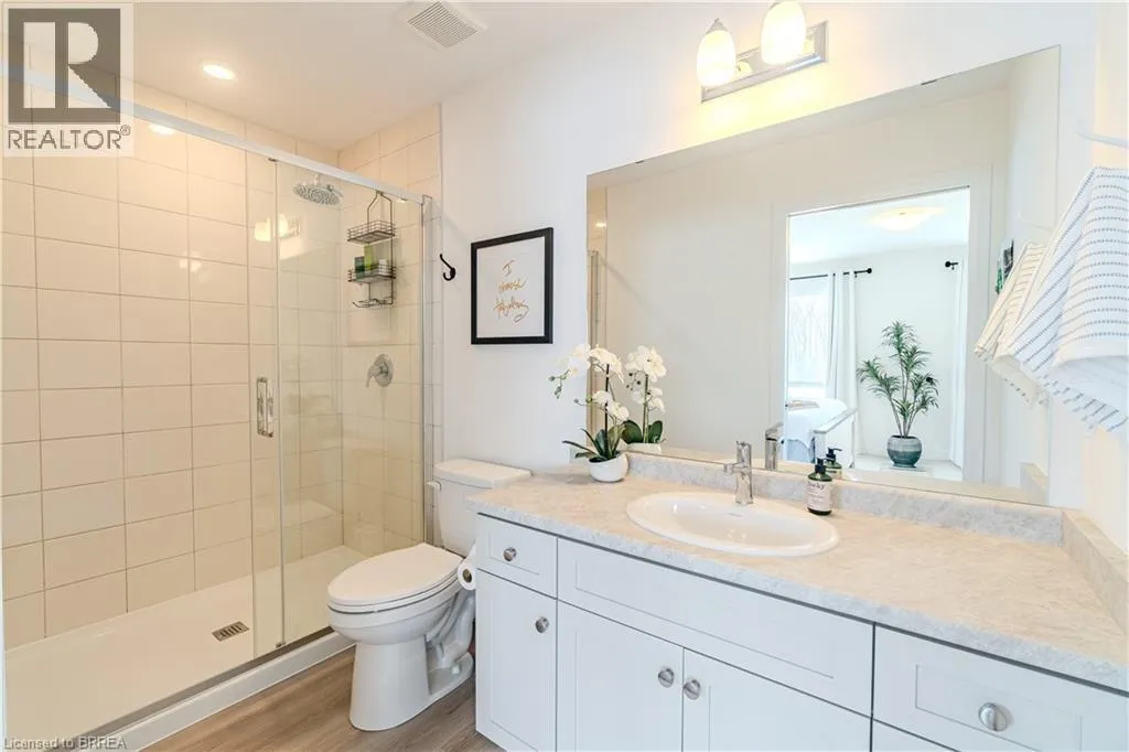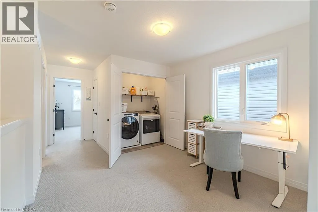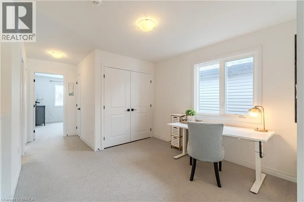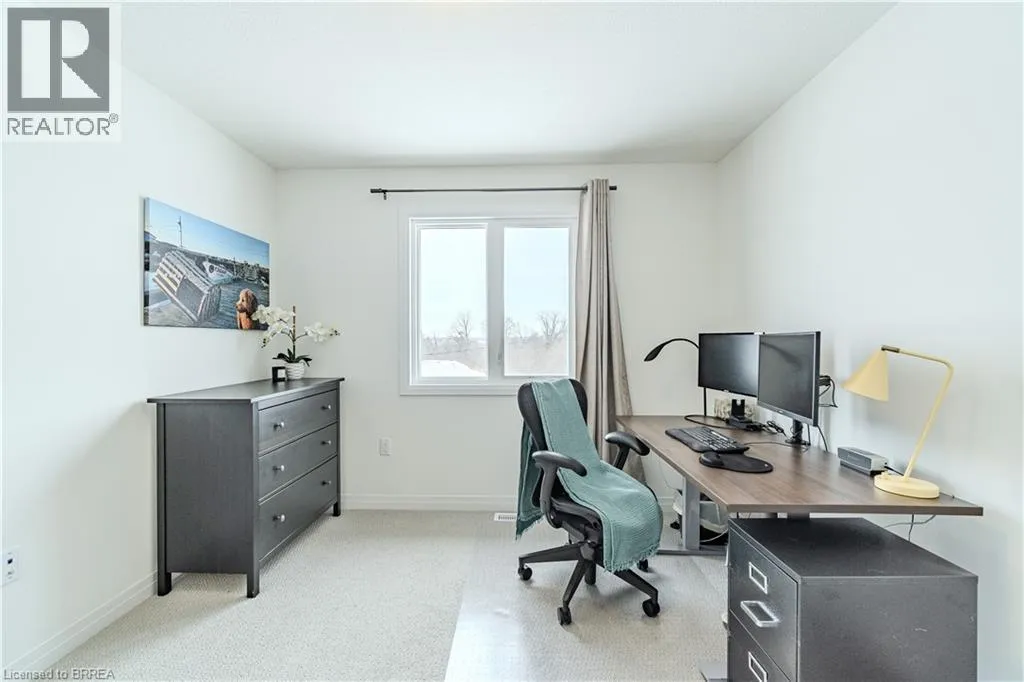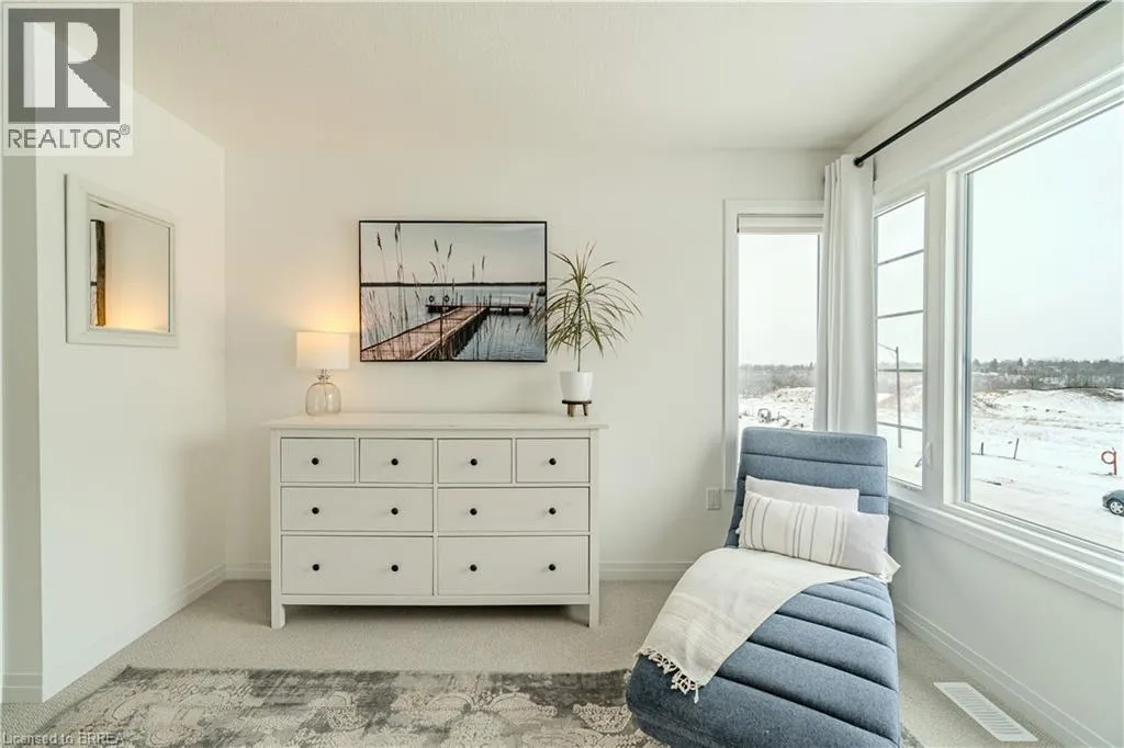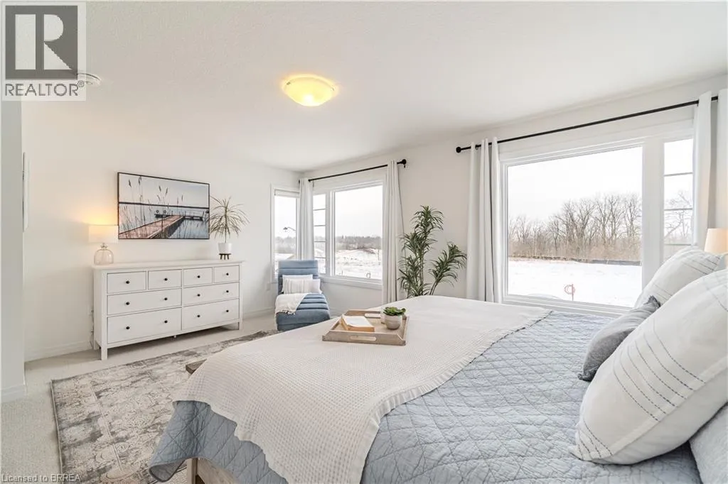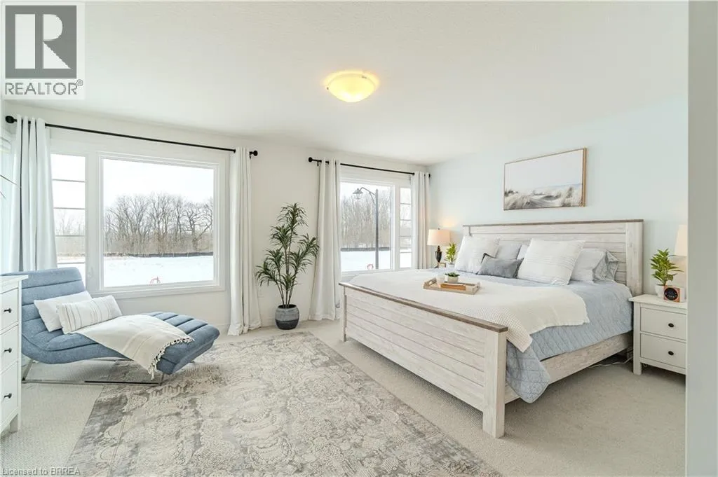 This exceptional freehold (no condo fees) end-unit townhome, built in 2025 by Losani Homes, features the Ambrosia Model with over 1,700 sq ft of refined living space. Encircled by nature and bordered by the Nith River, it offers an unmatched lifestyle. Trails at your doorstep invite canoeing, kayaking, hiking, fishing, and dog walks. Stroll through family-friendly Lions Park along the river past festivals, live music, the outdoor pool, splash pad, ball diamonds, then cross the rustic bridge into the charming downtown core to browse Wincey Mills Marketplace for fresh ingredients, coffee, fresh flowers, stop at Paris Beer Co., and wander home along the river. Striking curb appeal with dramatic dark trim, oversized windows, wood accents, modern glass door, and a large driveway to the double insulated garage. Detached homes planned behind and across the street enhance privacy and long-term value. Inside, the open-concept main floor with generous layout is perfect for entertaining, featuring shaker-style white cabinetry, quartz countertops with a statement island, designer backsplash, under-cabinet lighting, pot lights, soft-close cabinetry, fully tiled shower surrounds with niche and frameless glass, and huge windows that flood the space with light. Upstairs, the massive master suite features large windows with stunning views of the Nith River Valley, a spacious walk-in closet, and a luxurious ensuite. Two additional bedrooms, laundry, and open space complete the upper level. Additional highlights include keyless entry, extreme lookout basement window, upgraded garage insulation, high-end LG appliances, r/o water system, humidifier, central air, garage door opener, and custom window coverings. Sod and a future deck are yet to be completed, allowing personalized outdoor space, while a proposed park just down the street adds appeal. Expertly built with superior soundproofing, this home offers a level of privacy rarely found in townhome living. (id:27476)
