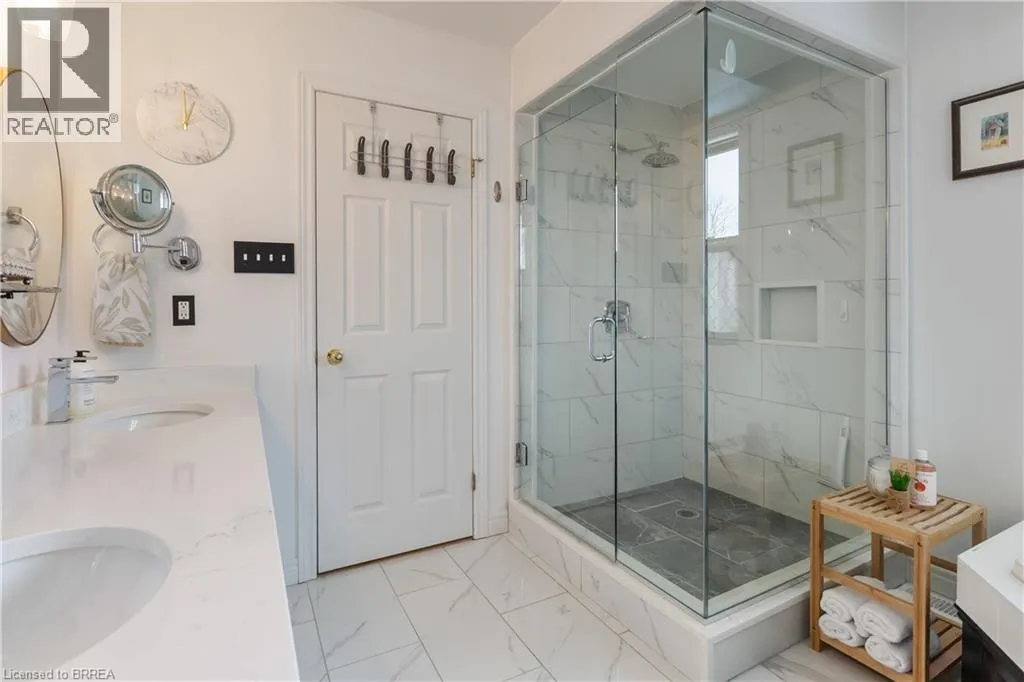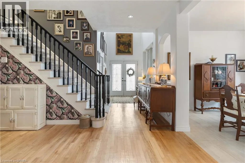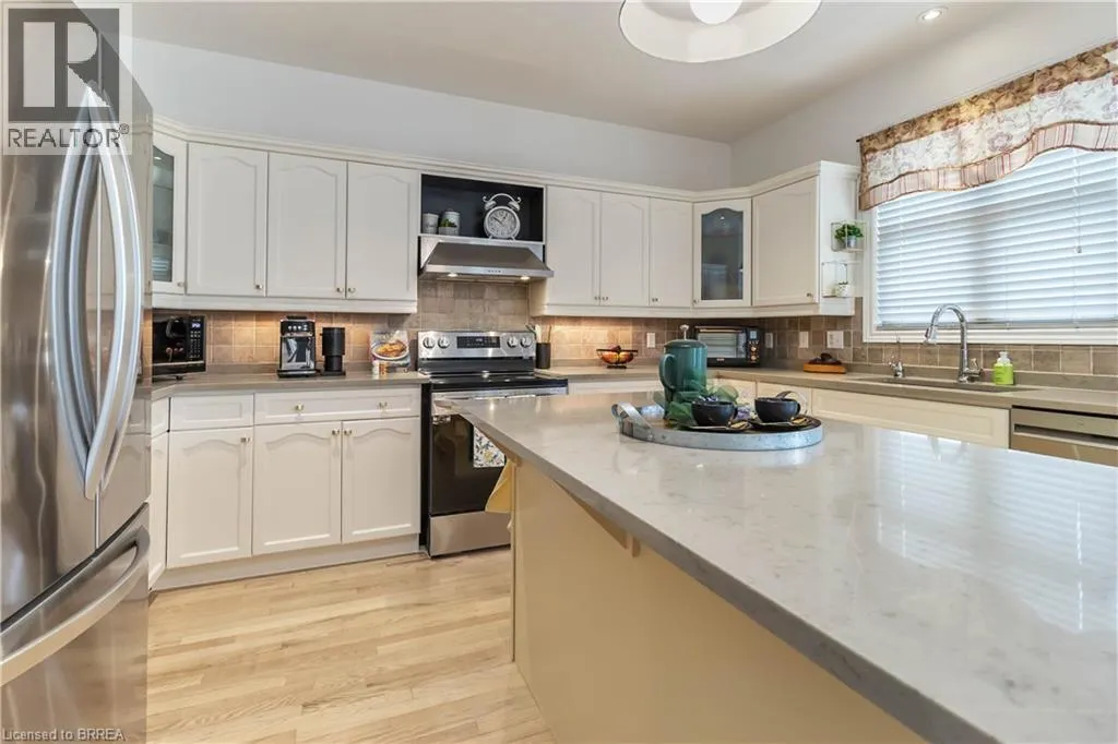 FREEMAN STREET Welcome To 211 Dundas Street West, nestled in the Heart of a peaceful Paris Ontario neighbourhood, where charm and tranquility converge. This beautiful family home is designed with your every need in mind. As you step inside, you're greeted by an airy open main floor. To your left is a Bonus room that is currently being used as an office, this can be Anything you want, breakfast room, library denâ¦the choice is yours! There is a separate dining for those special occasions. The Living room, kitchen with stunning quartz counter tops and eating area seamlessly connect for those great parties! A gas fireplace is the center piece of the living area, providing a cozy atmosphere for those gatherings or a quiet place just to chill!. On the second floor the three large bedrooms provide ample space for the whole family. Escape to your private sanctuary in the primary bedroom, complete with an ensuite bathroom and walk-in custom California closet(2022), offering the perfect place to unwind from your hecktic day. The lower level is a great place for Movie night or the kid hangout! With an additional bedroom and full bathroom with walk-in shower, your guests just may not want to leave. Step into your own private paradise as you discover the spacious backyard. Don't miss the opportunity to make this remarkable family home your own. Extras: this home has been meticulously maintained, some upgrades include; Sump pump(2015), Roof(2015), Furnace(2015), Driveway(2023), Garage Doors(2022) and Water Softener(2024), A/C (2025), Flooring in upstairs kids bedrooms to match hall & primary (2026) (id:27476)