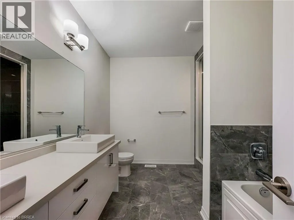 POWERLINE ROAD TO BREWIS STREET Be the second owner of this newer-built 4-level side split offering a functional layout and strong value. The main level features a formal dining area, living room with fireplace, bright dinette, and a modern kitchen with clean finishes and great flow. The standout feature is the great room with 12â ceilings, oversized windows, and a walkout to a front-facing balcony. Tons of natural light and usable space. Upstairs includes 4 full bedrooms. The primary has a walk-in closet and private ensuite. Laundry is conveniently located on the bedroom level. Two-car garage. Clean curb appeal. Move-in ready. Located minutes to Highway 403 and close to the Brant Sports Complex, schools, shopping, and trails. Best price on the street for a home like this. Book your showing before itâs gone. (id:27476)