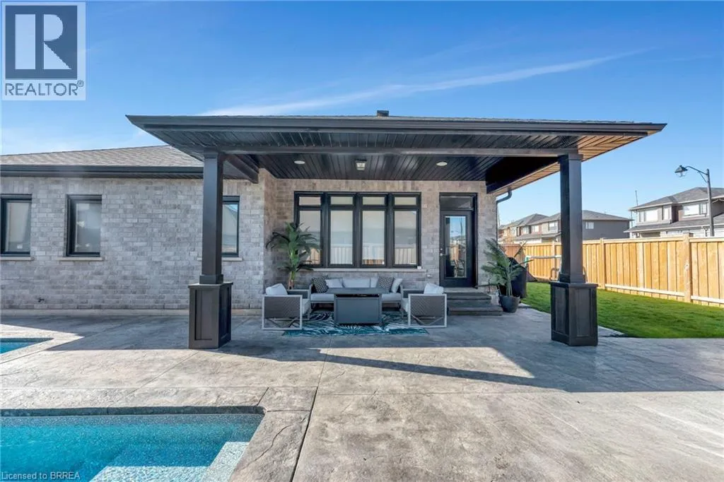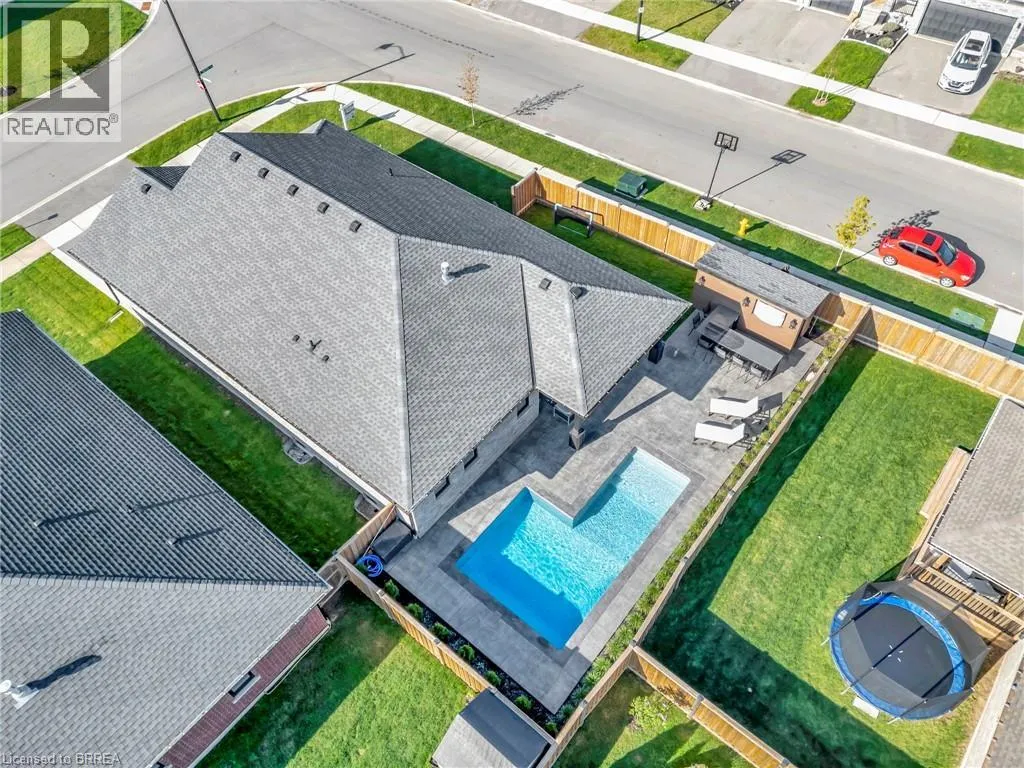 Powerline Road Tom Brown Drive Welcome home to 2 Masters Lane, Paris. Conveniently located just a couple of minutes to Rest Acres Rd. and highway 403, perfect for a family with highly rated schools and cool down all summer in your new heated saltwater inground pool! Situated on an oversized corner lot and one of the larger footprint's in the area, find a sprawling 1786 sq ft. (above grade) and a finished 1598 sq ft. (below grade). Built in 2019 find 3+2 beds and 3 baths in a beautifully finished interior! Enter your oversized foyer with closet and notice a dedicated and bright dining room to your left. Walk into your open concept kitchen and living room, plenty of cabinetry for your family and stone counters in kitchen and tray ceiling with gas fireplace in living room looking out at your inground pool! The backyard also has a bar/ pool house and covered area off the deck. Find a sizeable primary bedroom with walk in closet and well designed ensuite, as well as 2 other main levels beds and a full bath. Downstairs is perfect for entertaining with a large open rec room with more built in speakers. Also 2 additional bedrooms (or office) and another full bath. Nothing left to do but move in and enjoy! Home shows A++! (id:27476)