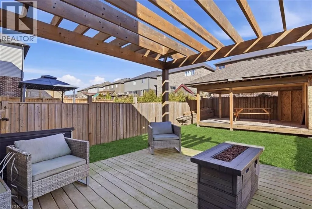 coming from 403 turn onto Rest Acres rd. follow for about 3mins. than make a right onto Vic Chambers Pl Just minutes to the 403, this bright, open-concept home offers the perfect blend of comfort and everyday convenience. The main floor features chocolate brown hardwood and white ceramic flooring, and an upgraded kitchen with maple cabinetry, granite countertops, and an eat-up island is truly the heart of the home where family and friends naturally gather. Main floor laundry with a mudroom keeps life organized and running smoothly. Upstairs, the primary bedroom is your personal retreat, complete with a walk-in closet, private ensuite with an upgraded 6â soaker tub/shower and a built-in window seatâperfect for quiet mornings with a coffee or unwinding at the end of the day. The finished basement adds even more flexible living space to suit your needs. Step outside to a fully fenced backyard featuring a 14â x 14â deck with pergolaâan ideal space for summer evenings and entertaining. Thereâs also an outbuilding in progress intended to be a 10â x 14â shed with an 18â x 14â covered sitting area, offering future potential for storage or outdoor enjoyment. An insulated double car garage with an 8â high door, ideal for larger vehicle and a 50-year Timberline Ultra Patriot roof adds peace of mind. Close to parks, trails, shopping and commuter routes, this home is move-in ready and waiting for you to make it your own. (id:27476)