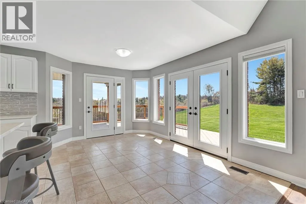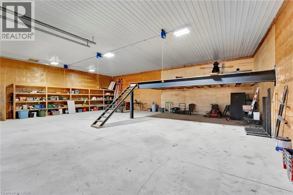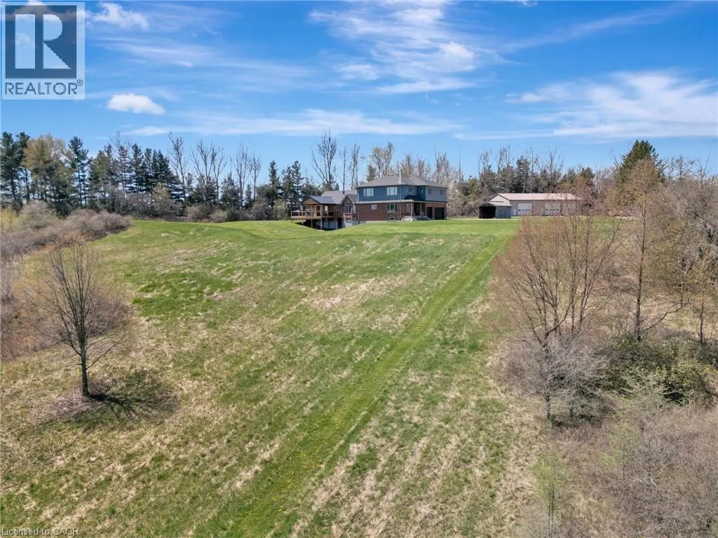 401 to Wayne Gretzky PKW North - Park Rd North - Right on Governors Road E or From Hwy 52 Copetown Head West on Governors Road. This incredible 57+-acre slice of paradise is more than just a propertyâit's a retreat into natureâs beauty. Rolling hills & valleys are interwoven with trails, offering a true paradise for outdoor enthusiasts. Fairchild Creek winds its way through the l&, offering an idyllic setting for relaxation & recreation. Explore the l&scape on foot, hunt, ride ATVS or off-road vehicles, or simply enjoy the peace & serenity. Step onto the deck to greet magical sunrises & unwind with breathtaking sunsets. With ample space & privacy, this property is ideal for large or extended families seeking room to grow & enjoy life together. The move-in ready home features over 3,800 sq. ft. of finished living space, including 5 spacious bedrooms, office space, & 3 full baths. The open-concept kitchen & main living area are perfect for modern living. The primary bedroom boasts an oversized walk-in closet & a 4-piece ensuite. Wood stoves at each end of the home add a cozy touch of country charm, complemented by a geothermal heating & cooling system for efficient, sustainable warmth & comfort year-round. A finished walk-out lower level adds even more versatile living space. An oversized three-car garage offers extra storage & ample parking. Need space for hobbies or projects? The 3,200 sq. ft. insulated & heated workshop is a dream come true. Featuring three oversized garage doors, 14-foot ceilings, & a built-in loft, this space is perfect for collectors, fabricators, or anyone needing a large, organized workspace. Thereâs room for vehicles, tractors, & all your toys. Adding to its appeal, approximately 25 acres of woodlot include around 1,200 blue spruce & 150 oak trees, showcasing a commitment to sustainability & natural beauty. Whether seeking a private retreat, recreational playground, or family paradise, this property offers peace, adventure, & endless possibilities. Centrally located just minutes from St. George, Paris, Brantford, Ancaster (id:27476)