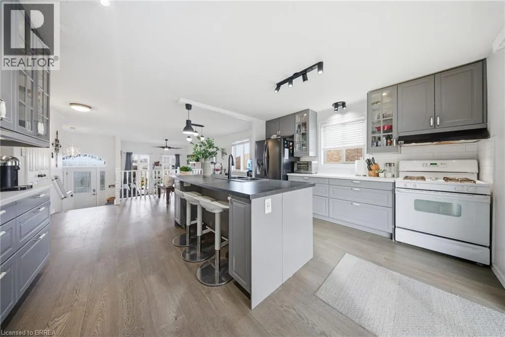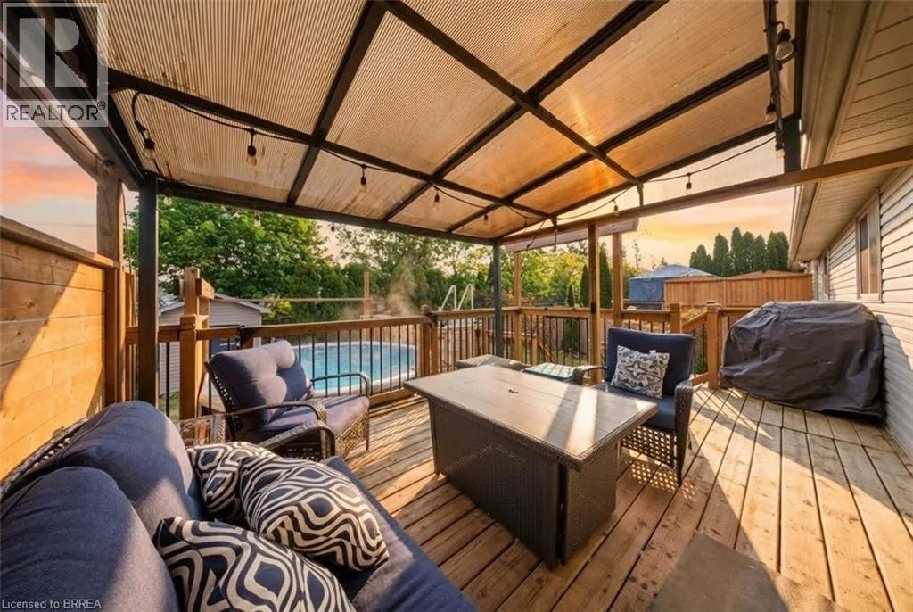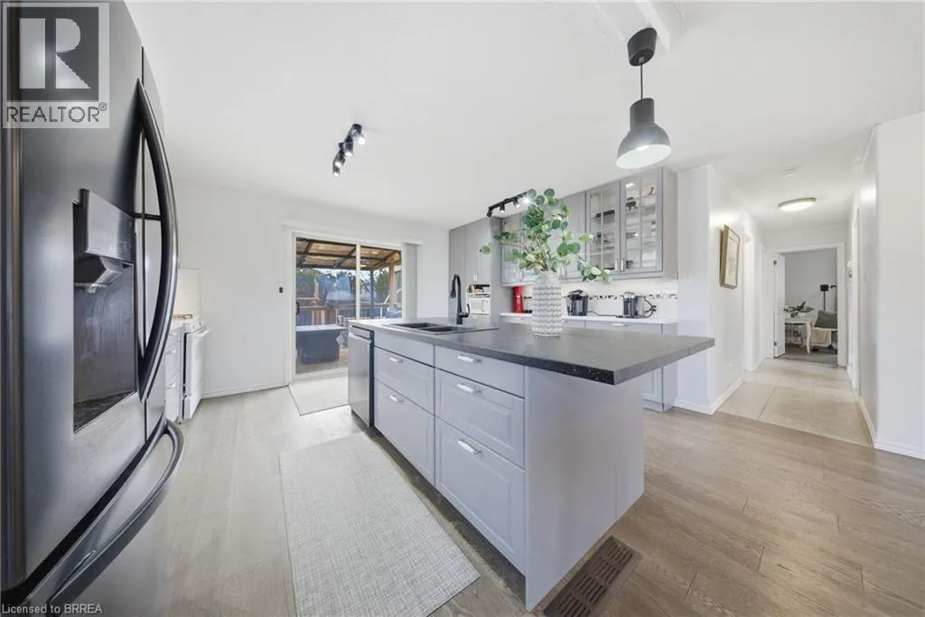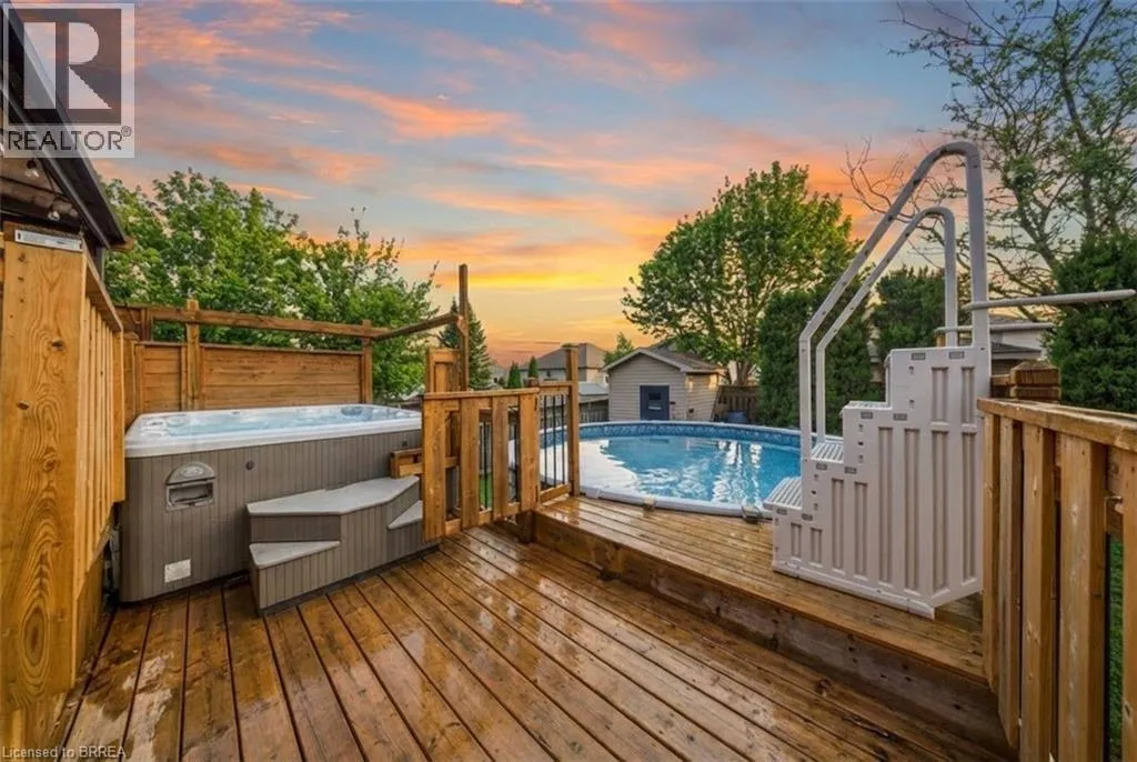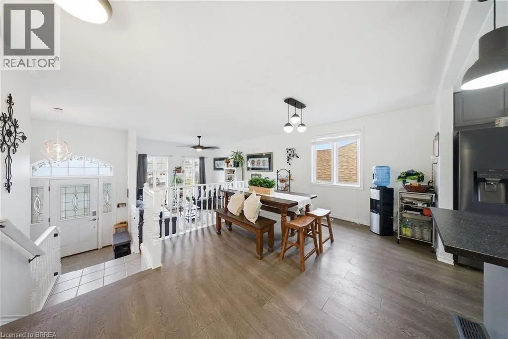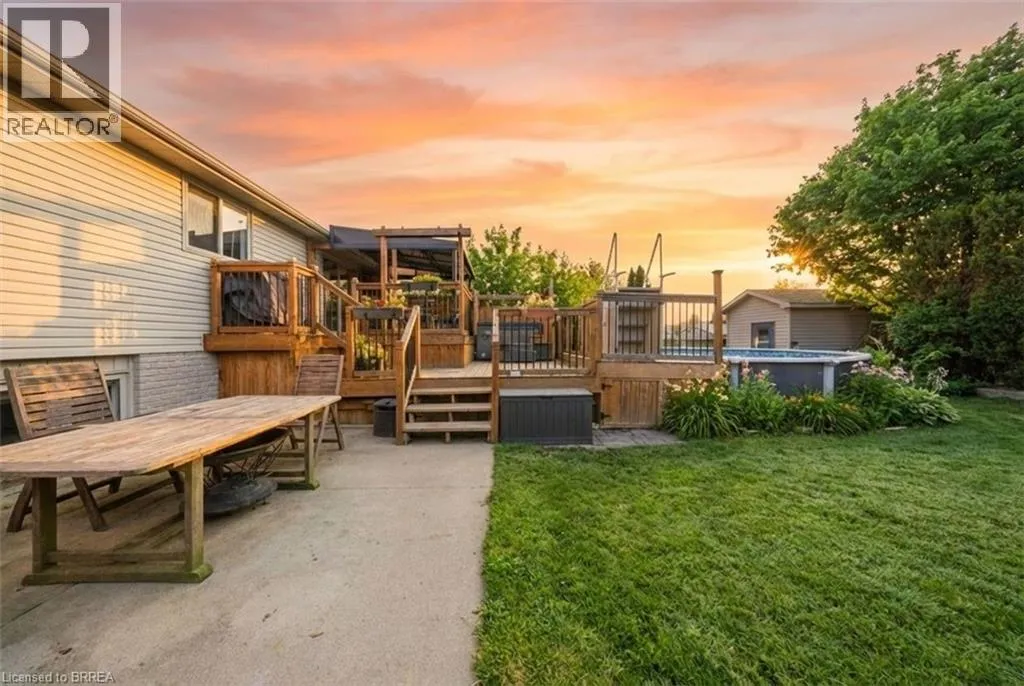 Welcome to this beautifully updated home at 97 Daugaard Ave., in the charming town of Paris. Offering a bright and open layout, this inviting property is designed for comfortable family living and effortless entertaining. The main level features a spacious sunken living room, with the dining room overlooking the space from above, creating an open, airy atmosphere and a natural sense of connection throughout the home. The stunning, fully updated kitchen is a true highlight, featuring a new centre island and abundant cabinetry. The wall between the kitchen and dining room has been thoughtfully removed to create a seamless flow, and the space is finished with beautiful hardwood flooring that continues throughout the entire main level. On the main level you will find three generous bedrooms along with thoughtfully designed closet organizers in both the primary and second bedroom. The lower level offers exceptional additional living space, including a large finished recreation room with durable vinyl flooring that is perfect for entertaining, relaxing, or creating a childrenâs play area. Outside, the backyard has been carefully enhanced to create a private outdoor retreat. A second-tier on the deck has been added, complete with a hot tub accessible directly from the upper level, while the lower deck leads to an above-ground poolâperfect for summer enjoyment. The gardens have also been beautifully updated to add colour and curb appeal. Additional improvements include a finished laundry room with sliding doors to the furnace room and a 200-amp electrical panel. The garage has also been wired for an electric vehicle charger, offering modern convenience for todayâs homeowner. Ideally located just minutes from excellent schools, shopping, parks, and highway 403, this home provides excellent access for commuters while still enjoying the quiet charm of a family-friendly neighbourhood. This is one you will not want to miss! (id:27476)