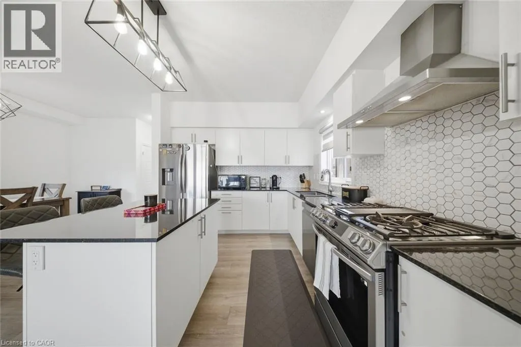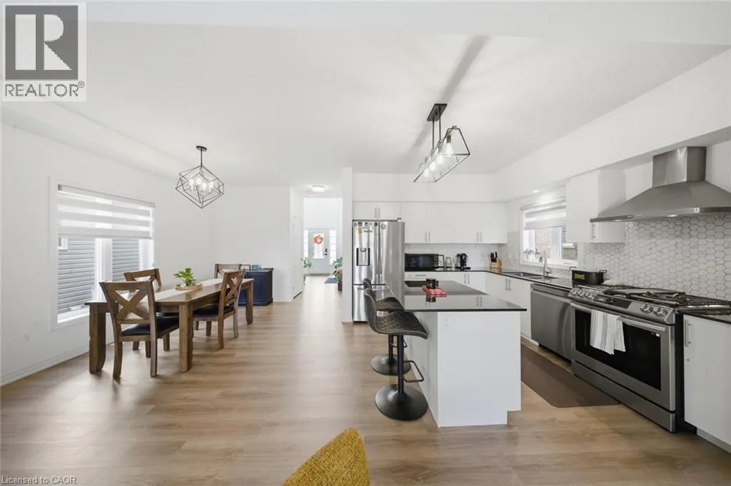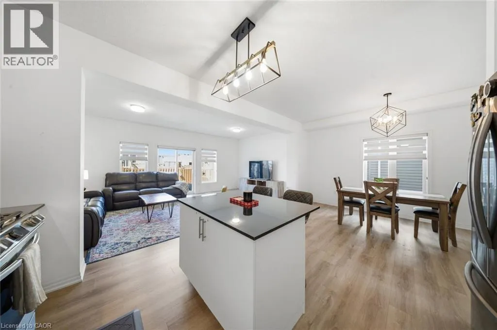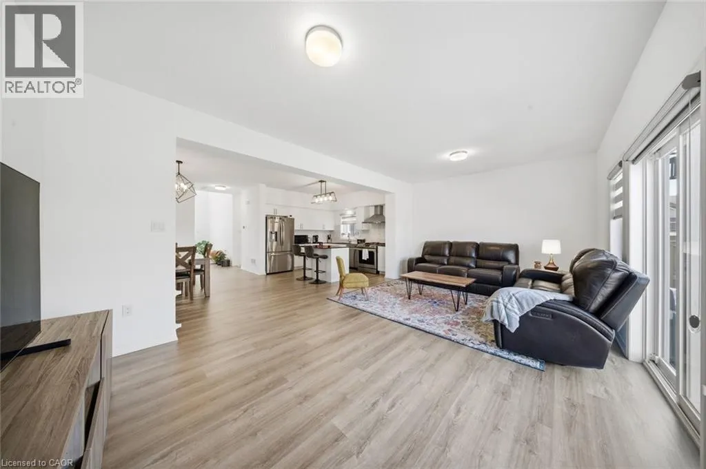 Welcome to 17 0ldham Avenue, located in the highly sought-after Pinehurst community of Paris! Built in 2021 by Reid's Heritage Homes, this stunning 2-storey residence offers approximately 1,849 sq. ft. of modern living space, featuring 3 bedrooms and 3 bathrooms. Step inside to an impressive open-concept layout highlighted by a grand foyer open to above and upgraded flooring throughout the main level. The spacious kitchen is designed to impress with quartz countertops, stylish backsplash, upgraded cabinetry, chimney hood fan, gas line, water line, and a large centre island perfect for entertaining. The bright dining area flows seamlessly into a combined with a separate great room with sliding doors leading to a fully fenced backyard complete with a shed. 9 ft ceiling on the main floor. Features a 2 piece powder room and convenient inside access from garage. An upgraded staircase leads to the second floor, where you'll find a generous primary bedroom with a walk-in closet and 4-piece ensuite, along with two additional bedrooms and a 3-piece main bathroom. The Unfinished basement offers excellent 3-piece rough-in, cold room, laundry area, and 200 AMP service. Additional features include a smart home system (Google Nest lock, digital doorbell, Hikvision cameras), Samsung appliances, water softener, garage door opener (belt drive) with 2 remotes, built-in garage storage, gas BBQ line, and upgraded front/side pavement. Situated in a family-friendly neighbourhood, just minutes from Pinehurst Lake Conservation Area, Central to Highway 401 & 403. schools parks gym and all essential amenities. Don't miss out !! (id:27476)