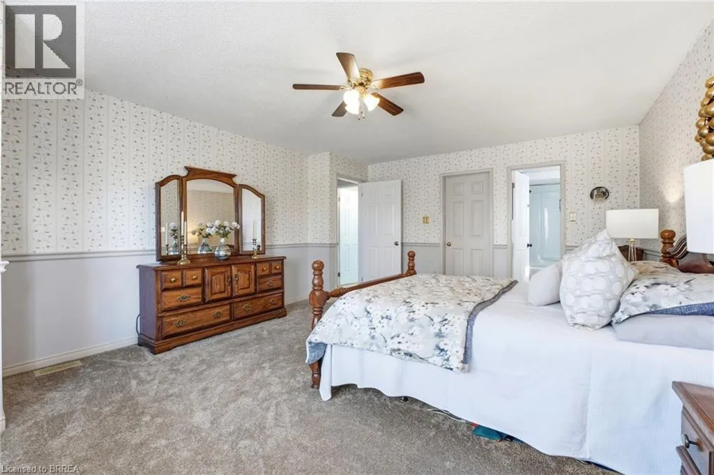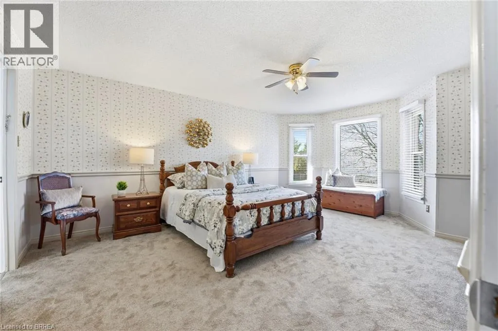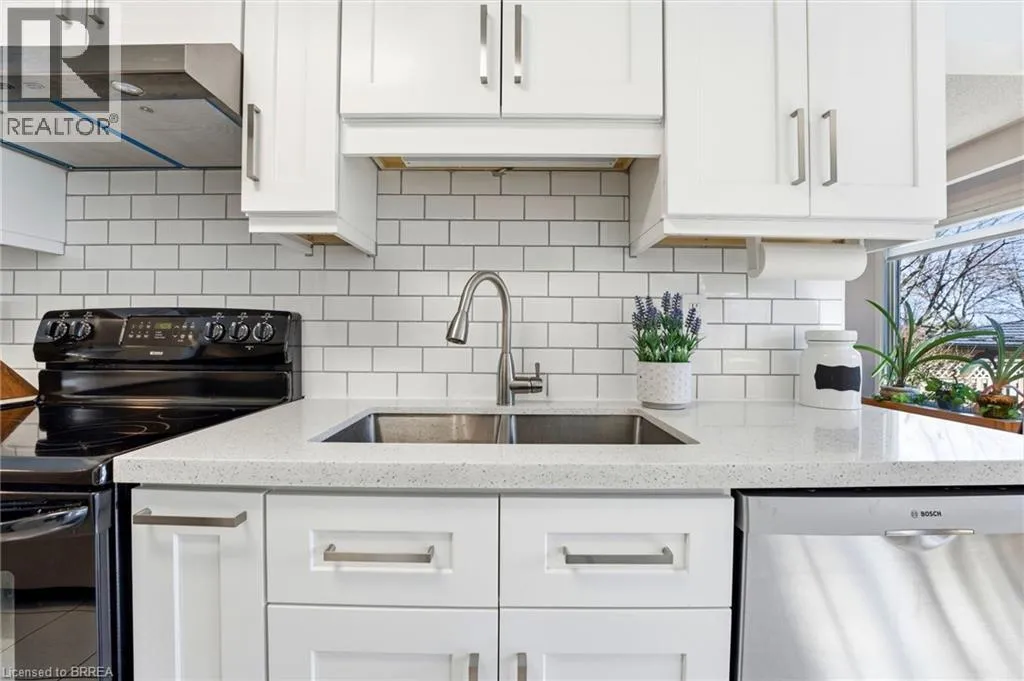 Welcome to this beautiful all-brick two-storey home offering comfort, space, and privacy in a desirable family-friendly neighbourhood. Featuring a double car garage and a fully fenced, private backyard, this property is perfect for growing families and entertaining alike. Step inside to a welcoming tiled foyer that leads to a bright eat-in kitchen, complete with quartz countertops, ample cabinetry, and sliding doors opening onto a deck with a charming gazeboâideal for outdoor dining and relaxing while enjoying the peaceful rear yard. The main floor boasts an open-concept living and dining area, along with a separate family room featuring a cozy gas fireplaceâperfect for relaxing evenings. A convenient 2-piece powder room completes this level. Upstairs, youâll find a spacious primary bedroom featuring a walk-in closet and a 4-piece ensuite. Two additional well-sized bedrooms and a modern 3-piece bathroom with a glass shower complete the upper level. The finished basement adds even more living space, offering a large recreation room with gas fireplace, a separate office, laundry room, storage room, and a cold cellar. Located in a lovely neighbourhood close to schools, parks, and all amenities, this home combines style, function, and an unbeatable location. (id:27476)