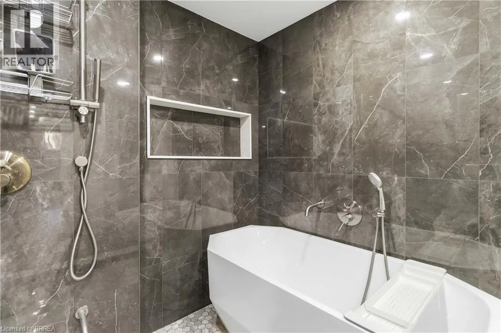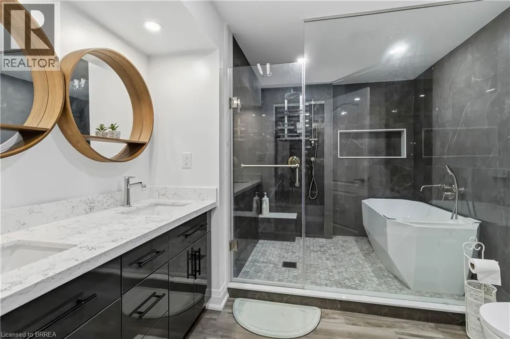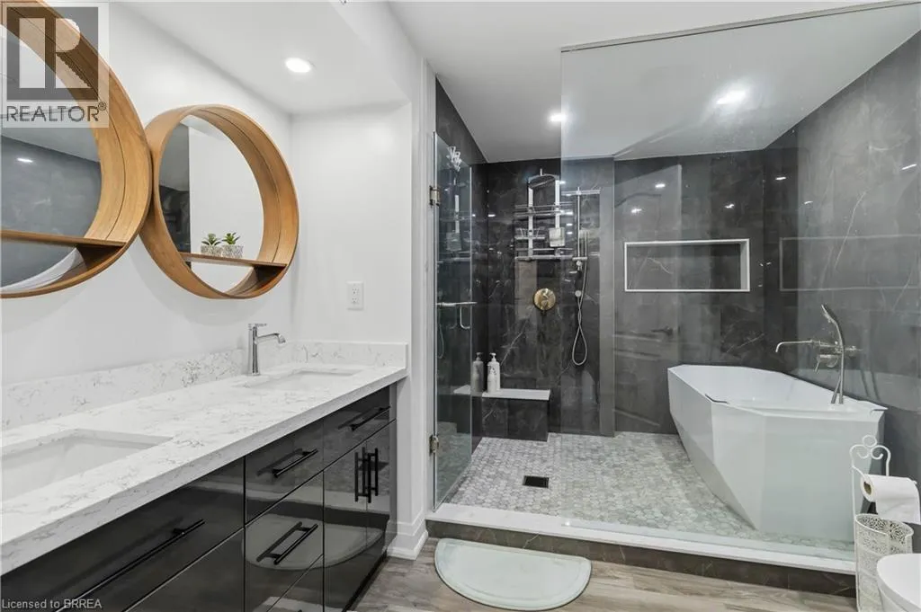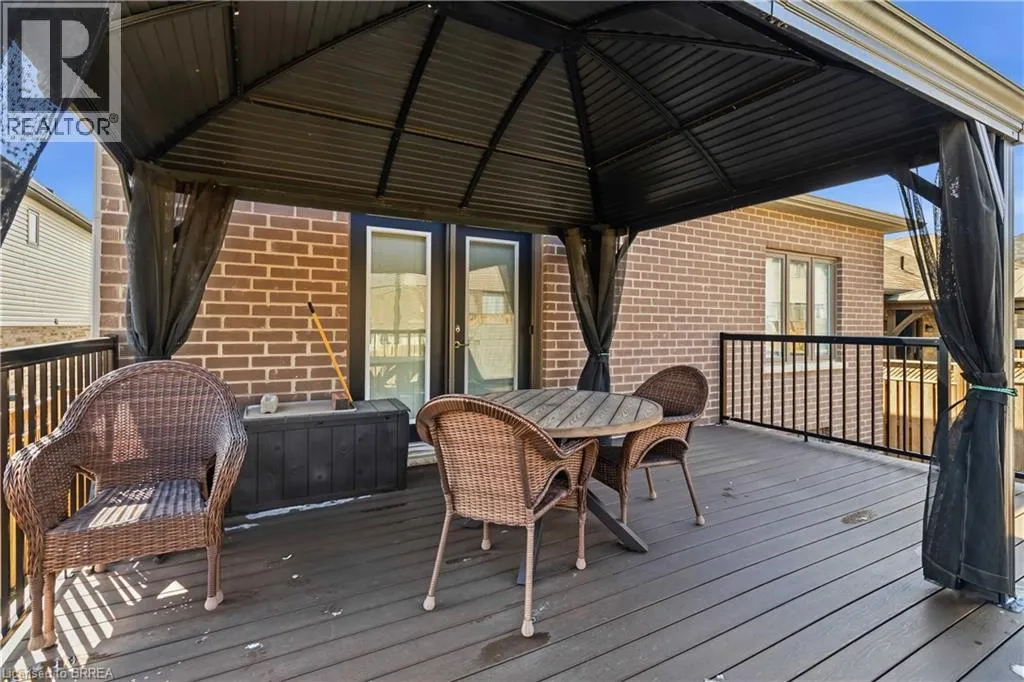 Rest Acres to Lydia Welcome to 14 Lydia Lane, Paris, Ontarioâa stunning raised bungalow with an open concept design and full of premium upgrades. As you step onto the main floor, youâll be greeted by a spacious living area to your right, and a bright eat-in kitchen complete with a discreet laundry spaceâkeeping noise away from the bedrooms. From the kitchen, youâll access a beautiful yard, featuring a large gazebo and a shedâperfect for entertaining, with plenty of space for a barbecue, table, and chairs. The main floor offers two bedrooms and a full ensuite bathroom with a bathtub, plus a second full bathroom also with a bathtub. Downstairs, youâll discover a cozy living area with a beautiful fireplace, two additional bedrooms, and a spa-like bathroom with a warming, upgraded toilet. This home is ideal for growing or multi-generational families. Donât miss this opportunity! (id:27476)