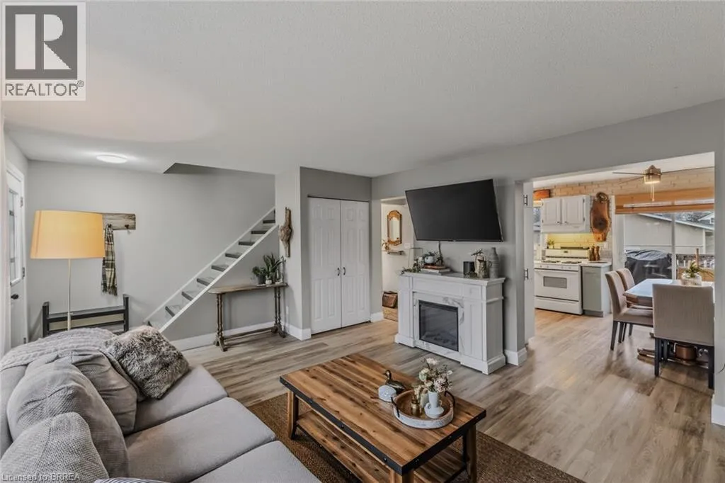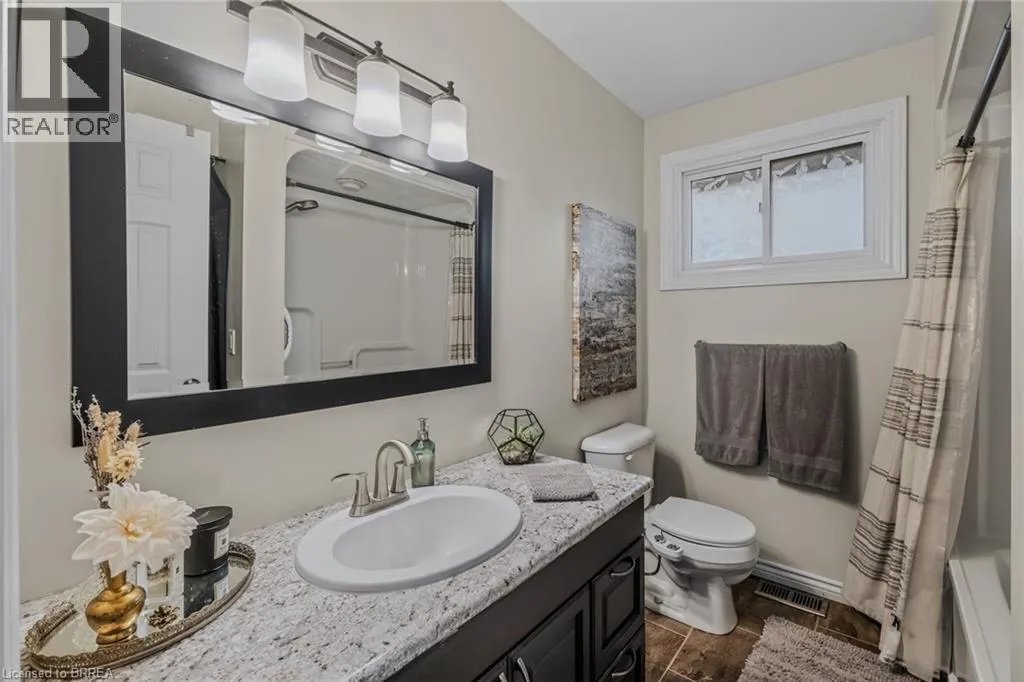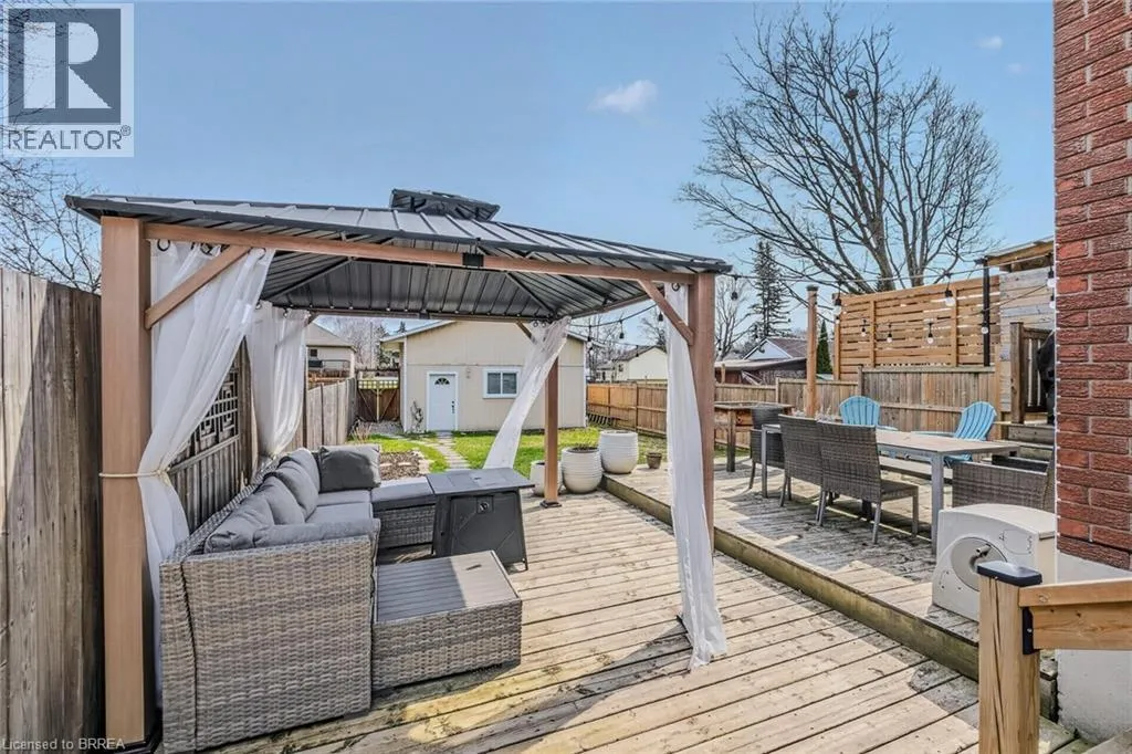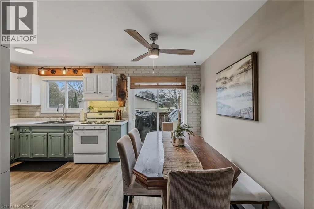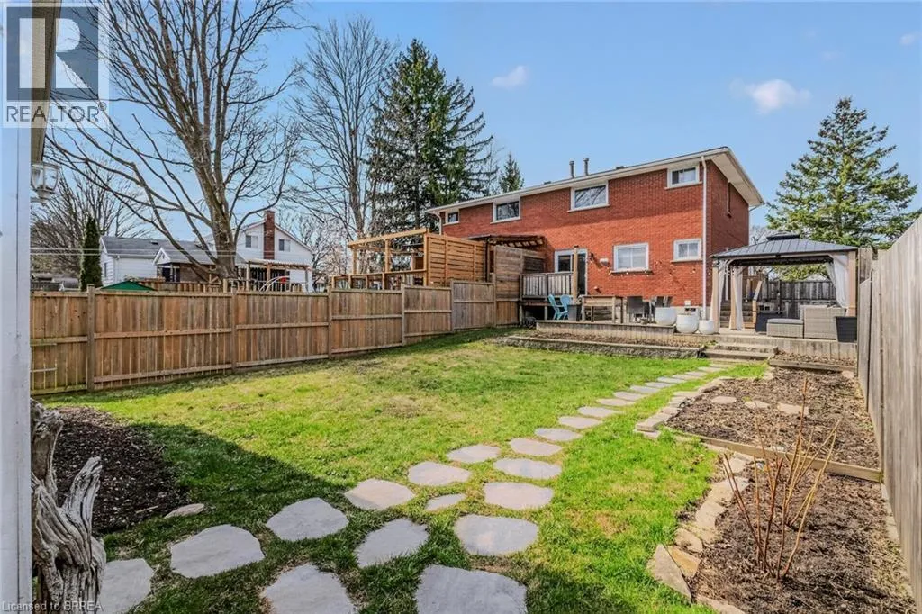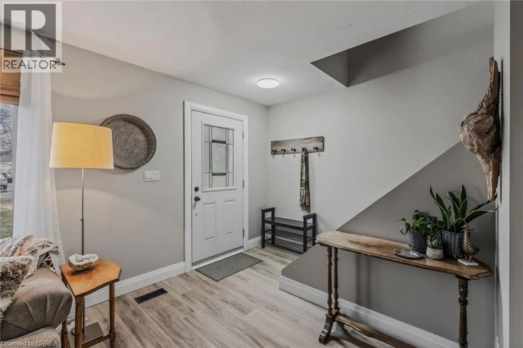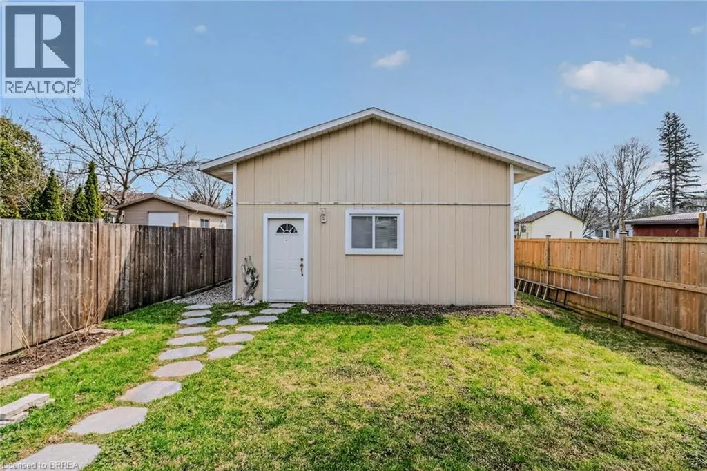 Driving South on Market Street take Wellington Street then left on Watts Lane. *House driveway is on Watts Lane* Double garage is on the left hand side. Access home through rear yard gate. Searching for an affordable 3-bedroom, 2-bath home in a family-friendly neighbourhood with a double car detached garage/workshop? Look no further! Step into a welcoming front foyer complete with a convenient double-door closet and durable vinyl flooring, flowing seamlessly into the bright and spacious living room and continuing through to the dining area and kitchenâperfect for everyday living and entertaining. The open-concept layout connects effortlessly to the kitchen, making it ideal for everyday living and entertaining. From the dining area, sliding doors lead to an expansive three-tier deck overlooking a fully fenced, private backyard surrounded by mature gardensâperfect for relaxing or hosting family and friends. A standout feature is the detached double car garage, with floor drain and high ceiling, offering excellent potential as a workshop for hobbyists or additional storage. Back inside, the main floor also includes an updated 2-piece bathroom and a secondary side entrance with easy access to the yard. Upstairs, youâll find three generously sized bedrooms, each with double closets. Two bedrooms feature laminate flooring, while the spacious primary bedroom offers durable vinyl flooring. A well-appointed 4-piece bathroom with a soaker tub completes the upper level. The finished basement adds valuable living space with a cozy recreation room, laminate flooringâperfect for movie nights or a kidsâ play area. A separate utility room also provides additional space for storage, helping keep everything organized and out of sight. Most windows have been replaced and pride of ownership is evident inside and out. Welcome home to this beautifully maintained property in a desirable neighbourhood, close to schools, shopping, and everyday amenities. Itâs time to make Paris your new hometown!! (id:27476)