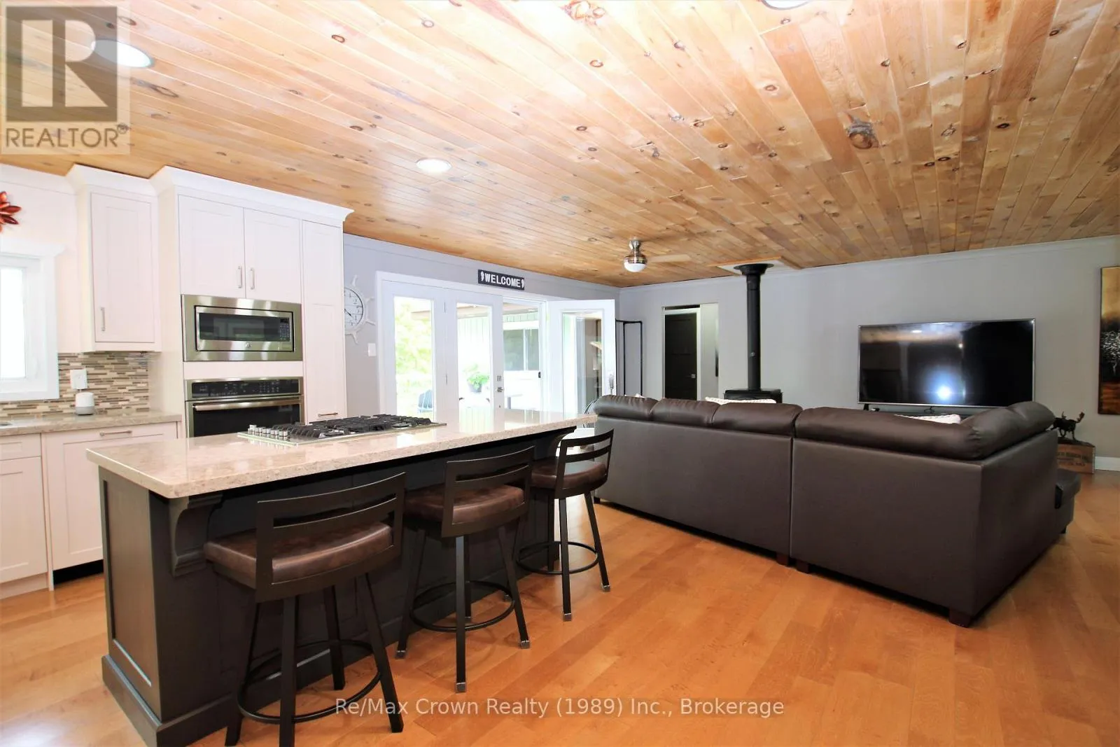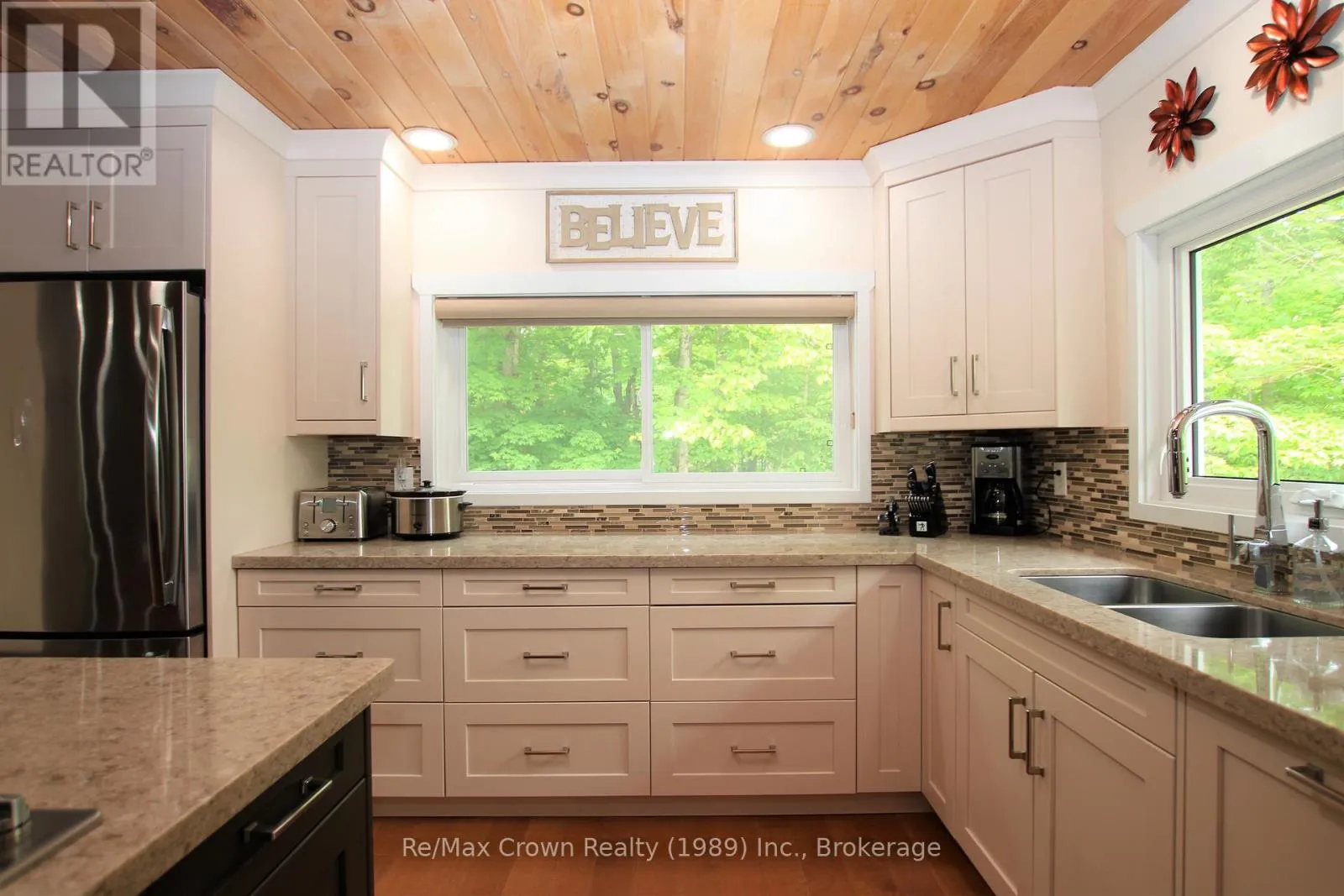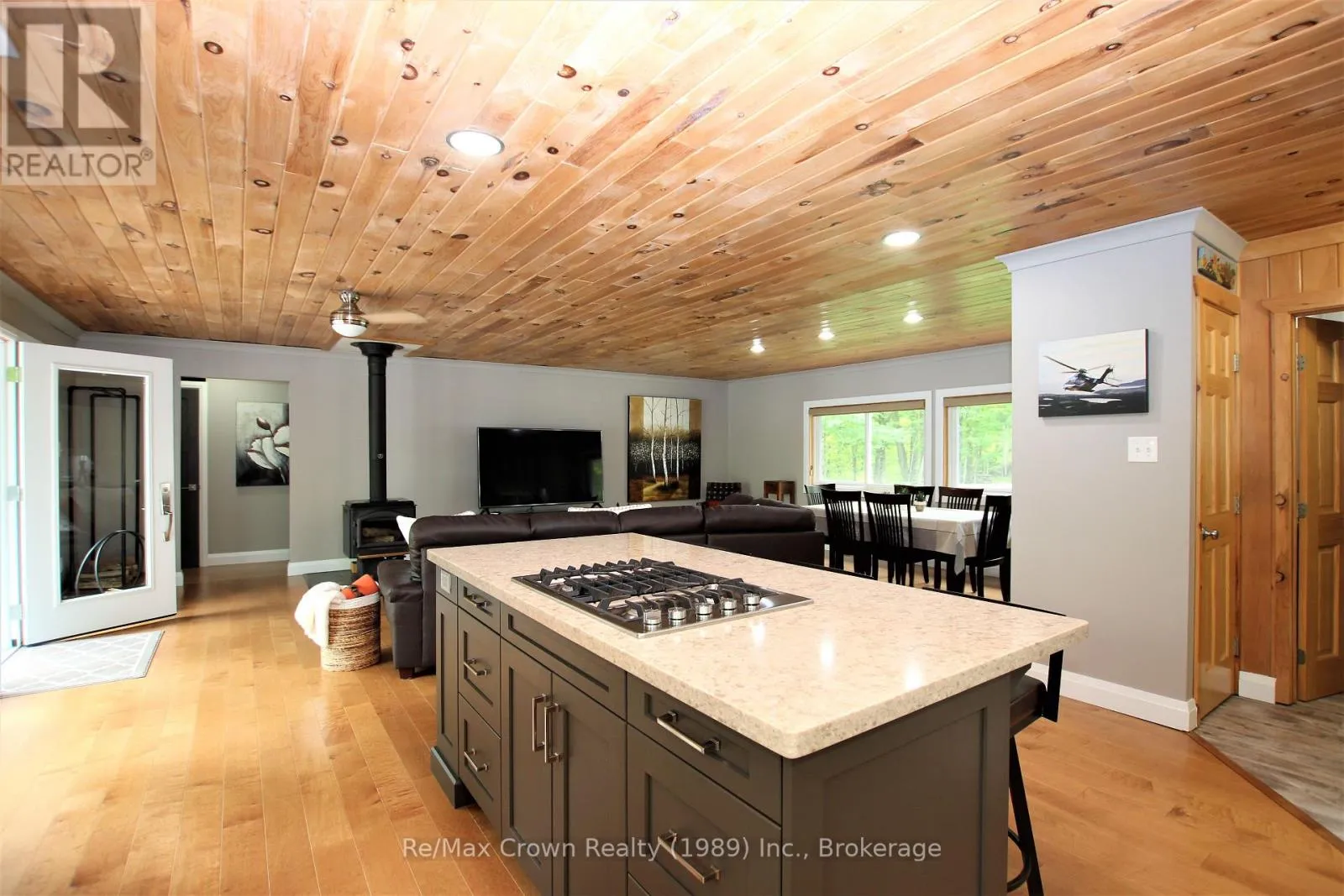 Cross Streets: Murphy Dr & Jack's Lake Rd. ** Directions: Hwy 522 to right on Jack's Lake Rd to left on Murphy Drive to #108. Experience the perfect blend of luxury & nature in this beautifully maintained TURN-KEY 3-bedroom, 3-bathroom furnished waterfront home on the serene shores of Jacks Lake. The open-concept living area features a custom kitchen W/quartz countertops, B/I appliances, & a spacious center island. Large windows offer spectacular lake views, while the living & dining spaces boast custom B/I cabinetry, wide plank flooring, & a cozy wood stove. Step through garden doors onto a generous 20'x13'6 composite deck, ideal for entertaining or relaxing while overlooking the lake & your private surroundings.The primary bedroom offers vaulted ceilings, his & hers closets, stunning lake views, & a 4-piece ensuite w/heated tile floor. Two additional bedrooms, a full 4-piece bath, & a convenient 2-piece laundry room complete the main floor. The unfinished lower level provides ample space for a workshop & includes a W/O to the side lot. The well-treed, landscaped lot gently slopes to the water, where you'll find a 22'x14' guest bunkie/sauna W/shower facilities. Enjoy lounging by the lake or on the impressive 56' x 8' floating dock system, taking in the tranquil surroundings & the crown land across the water. A handy woodshed keeps your firewood dry & accessible for the cozy wood stove. The property features a family-friendly shoreline with gently sloping access to the lake, perfect for swimming & water activities. The GenerLink ensures you're prepared for any power outages & the Starlink satellite internet keeps you connected. Located in an unorganized township, you'll benefit from lower property taxes and greater flexibility in land use & development. Jacks Lake is renowned for its exceptional fishing, offering a variety of species such as black crappie, walleye, and smallmouth bass. A 32' x 30' insulated and heated garage with 100-amp service completes this exceptional package, offering everything you need for year-round enjoyment. (id:27476)