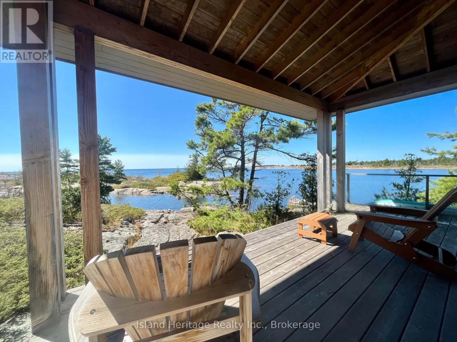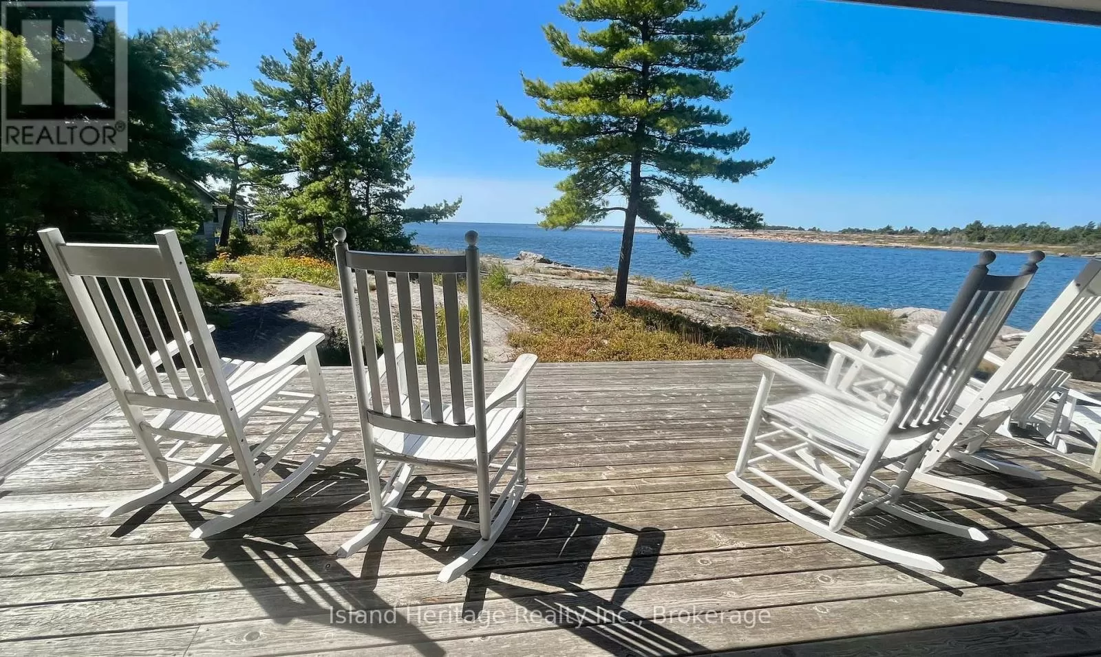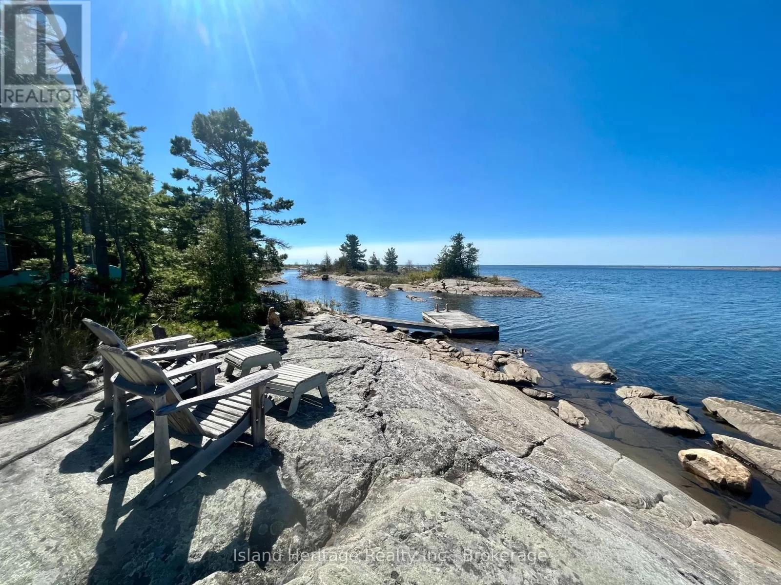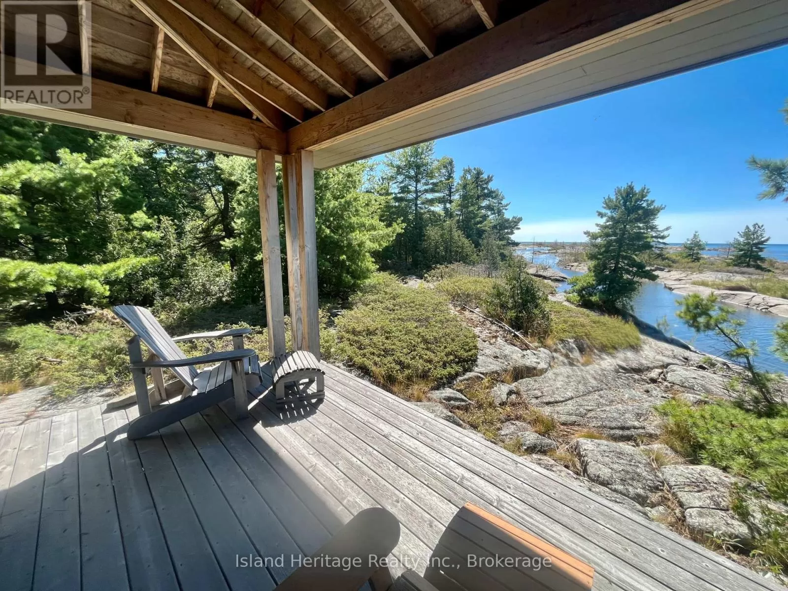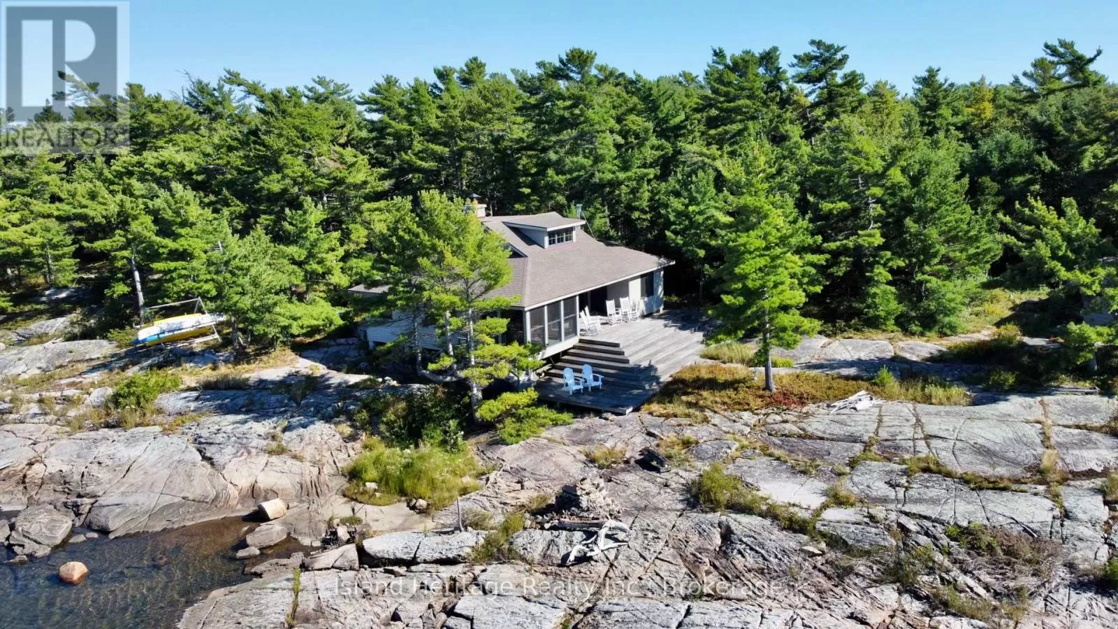 Cross Streets: Hwy 529 / Hwy 529A. ** Directions: By boat or float plane from local marinas etc. Prime, outer Georgian Bay island! 5.65 acres of picturesque Canadian Shield! Mature windswept pines abounding with wildlife! 2400 feet of granite rock shoreline offering spectacular vistas from any angle!! Full off grid seasonal living with this gorgeous property featuring a 2 bedroom, 3pc bath main cottage with full kitchen, family room with floor to ceiling stone fireplace, plus woodstove, both covered and open sun decks, outdoor shower and generator backup, plus guest cabin and master cabin! 2 bedroom guest cabin has its own kitchenette and living room space. Private master cabin features the master bedroom plus 3 pc bath and private deck. All offering panoramic open water views to the west allowing glorious sunset exposures! Be one of the very few who can spend their summers in this kayaker's paradise, exploring the outer shoals and near limitless Crown Land surrounding!!! With most all furnishings included with options on boats and toys, this property is ready to be enjoyed now!! (id:27476)
