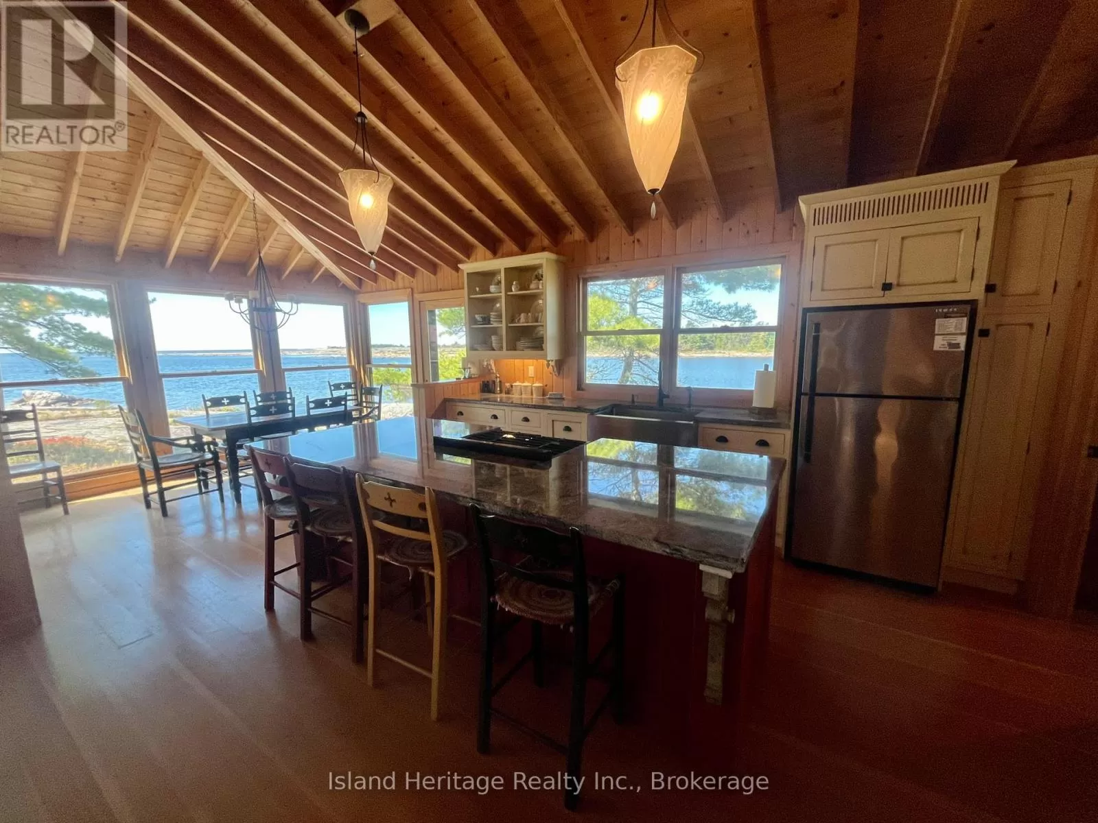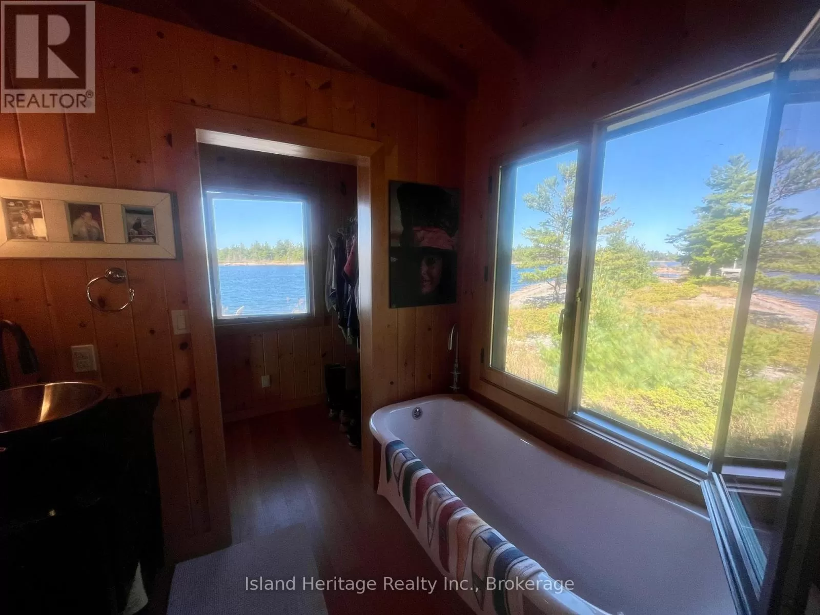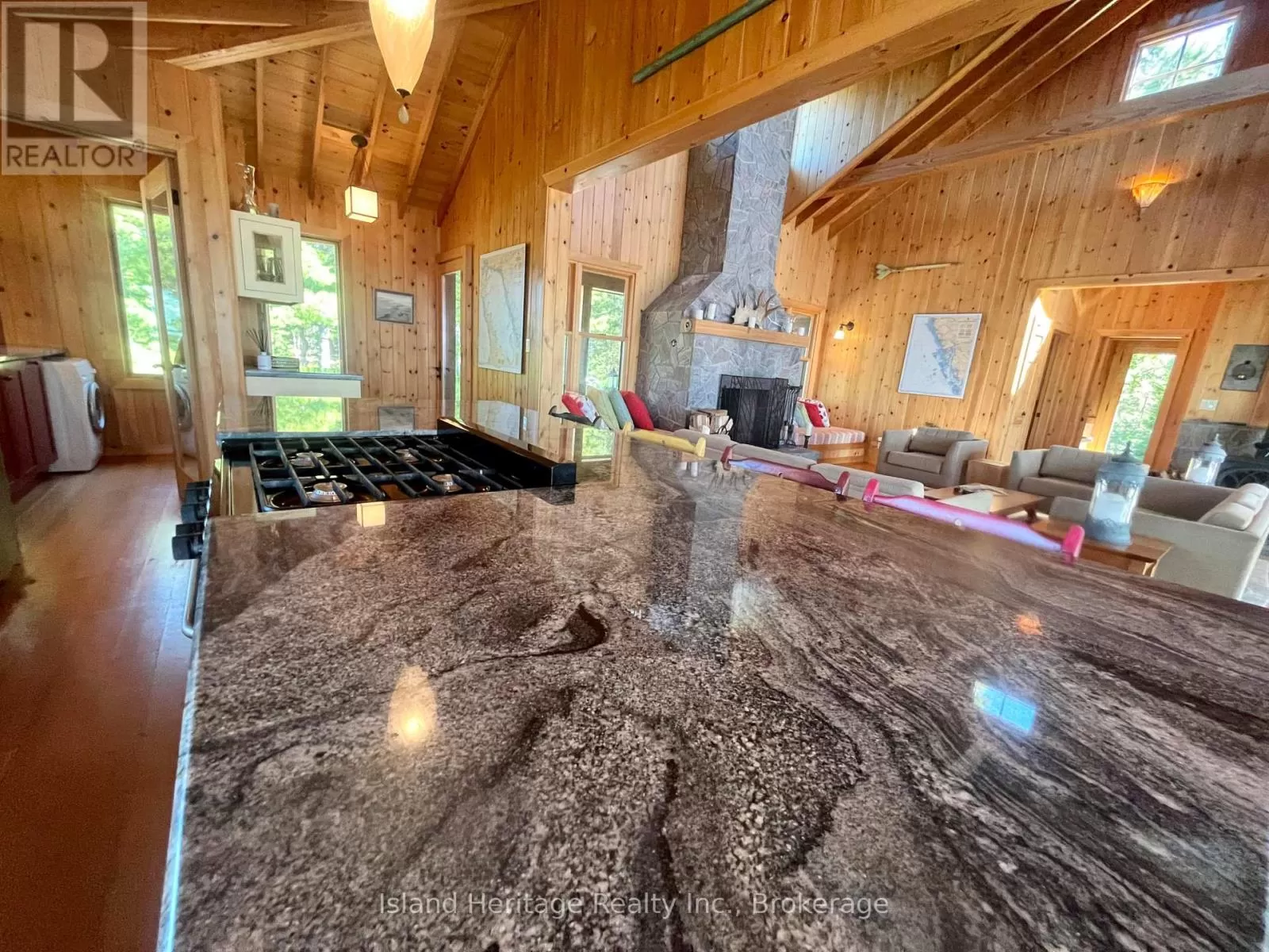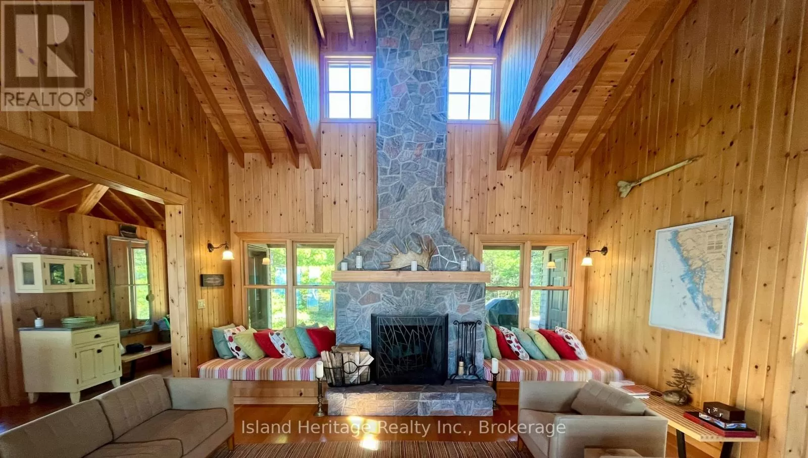 Cross Streets: Hwy 529 / Hwy 529A. ** Directions: By boat or float plane from local marinas etc. Prime, outer Georgian Bay island! 5.65 acres of picturesque Canadian Shield! Mature windswept pines abounding with wildlife! 2400 feet of granite rock shoreline offering spectacular vistas from any angle!! Full off grid seasonal living with this gorgeous property featuring a 2 bedroom, 3pc bath main cottage with full kitchen, family room with floor to ceiling stone fireplace, plus woodstove, both covered and open sun decks, outdoor shower and generator backup, plus guest cabin and master cabin! 2 bedroom guest cabin has its own kitchenette and living room space. Private master cabin features the master bedroom plus 3 pc bath and private deck. All offering panoramic open water views to the west allowing glorious sunset exposures! Be one of the very few who can spend their summers in this kayaker's paradise, exploring the outer shoals and near limitless Crown Land surrounding!!! With most all furnishings included with options on boats and toys, this property is ready to be enjoyed now!! (id:27476)