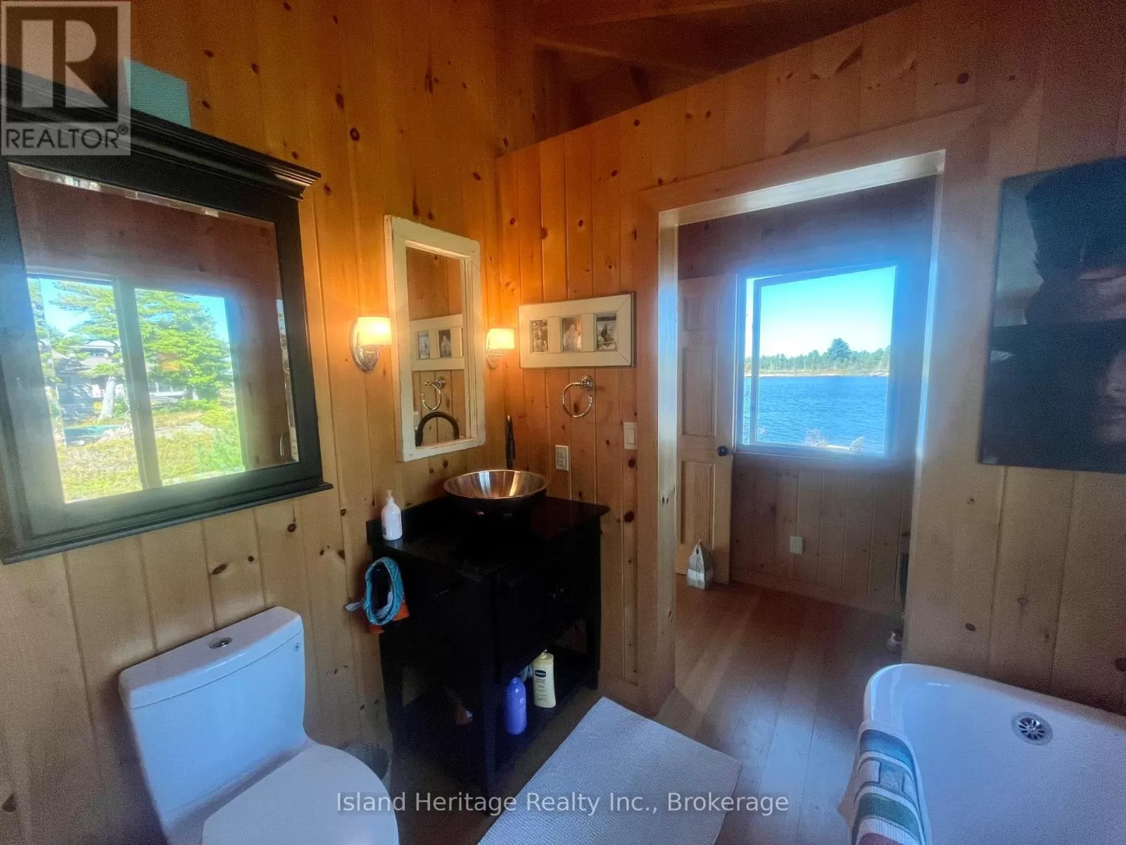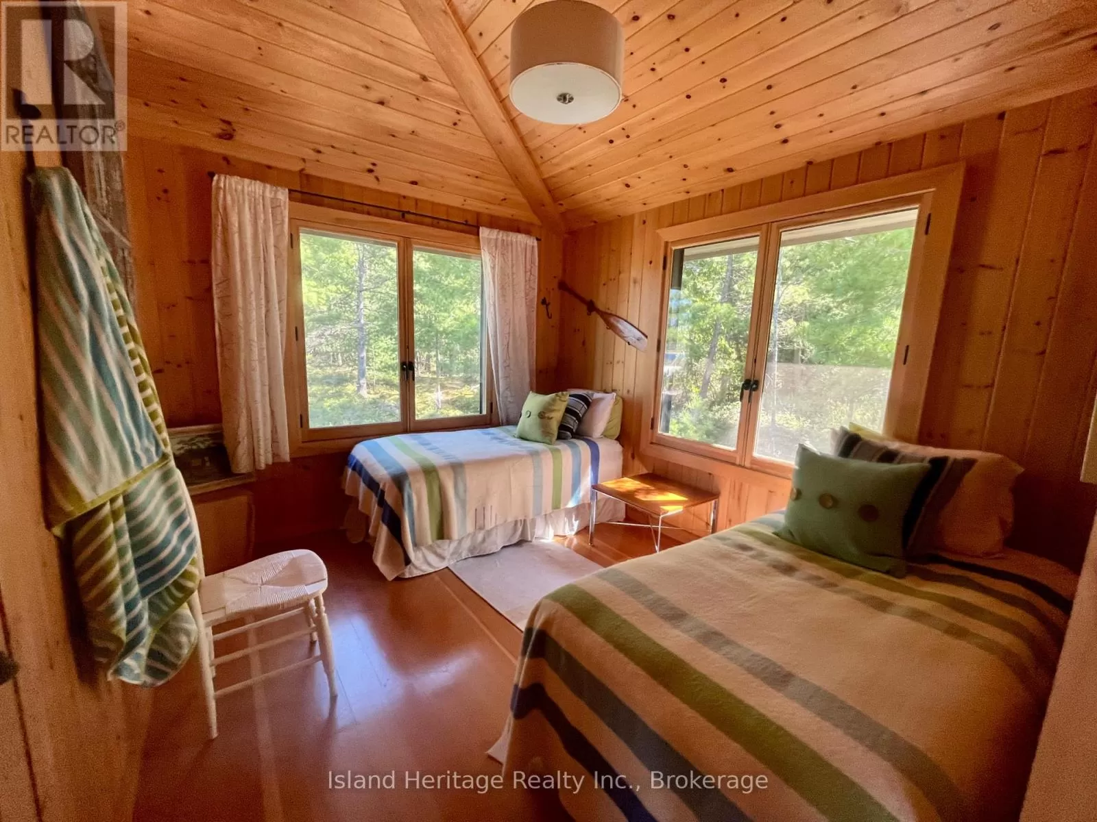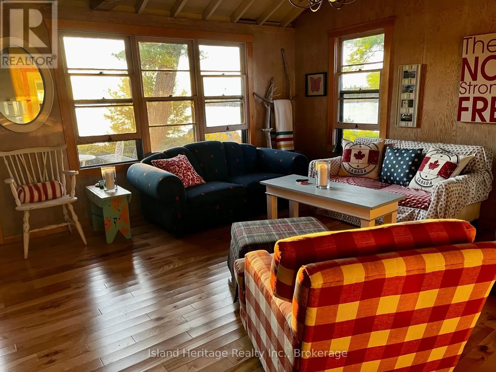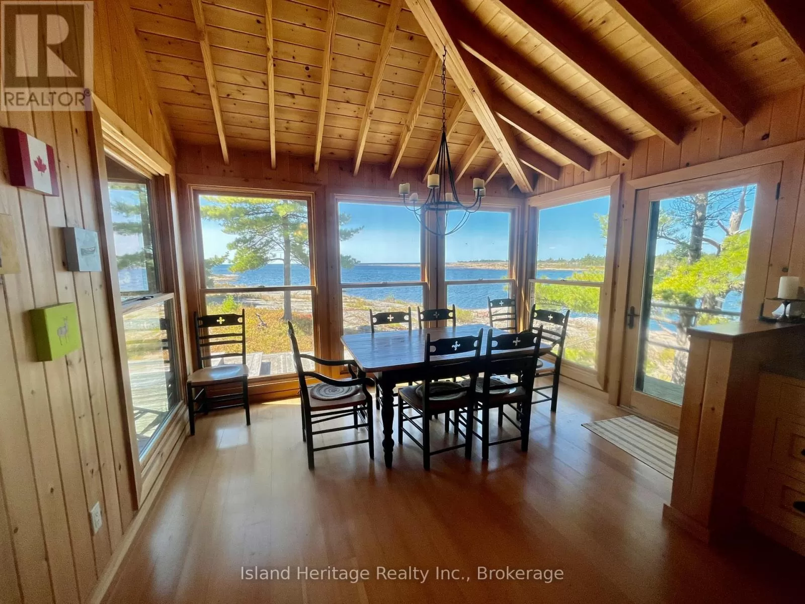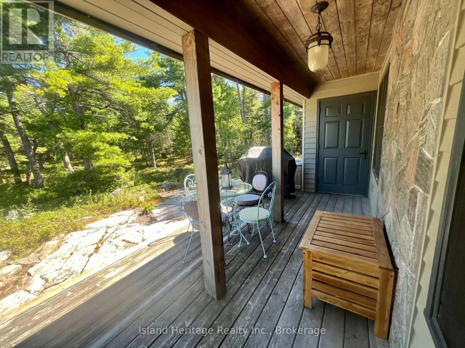 Cross Streets: Hwy 529 / Hwy 529A. ** Directions: By boat or float plane from local marinas etc. Prime, outer Georgian Bay island! 5.65 acres of picturesque Canadian Shield! Mature windswept pines abounding with wildlife! 2400 feet of granite rock shoreline offering spectacular vistas from any angle!! Full off grid seasonal living with this gorgeous property featuring a 2 bedroom, 3pc bath main cottage with full kitchen, family room with floor to ceiling stone fireplace, plus woodstove, both covered and open sun decks, outdoor shower and generator backup, plus guest cabin and master cabin! 2 bedroom guest cabin has its own kitchenette and living room space. Private master cabin features the master bedroom plus 3 pc bath and private deck. All offering panoramic open water views to the west allowing glorious sunset exposures! Be one of the very few who can spend their summers in this kayaker's paradise, exploring the outer shoals and near limitless Crown Land surrounding!!! With most all furnishings included with options on boats and toys, this property is ready to be enjoyed now!! (id:27476)