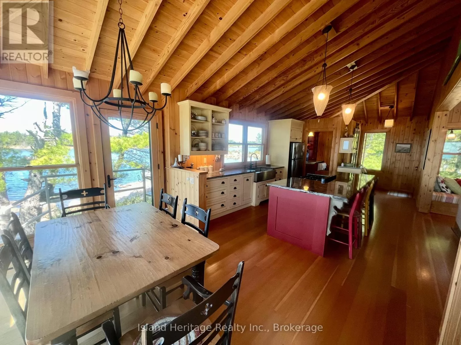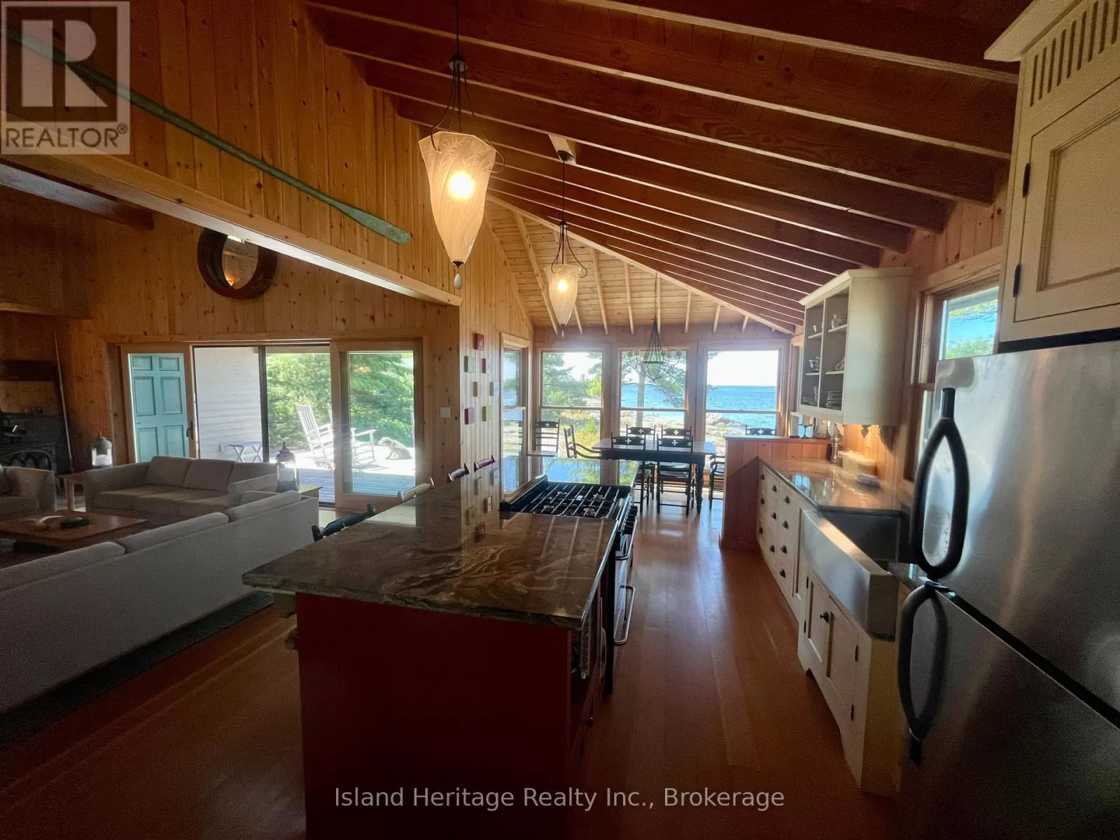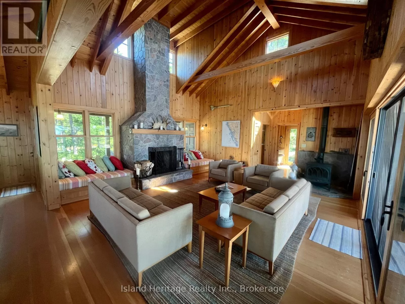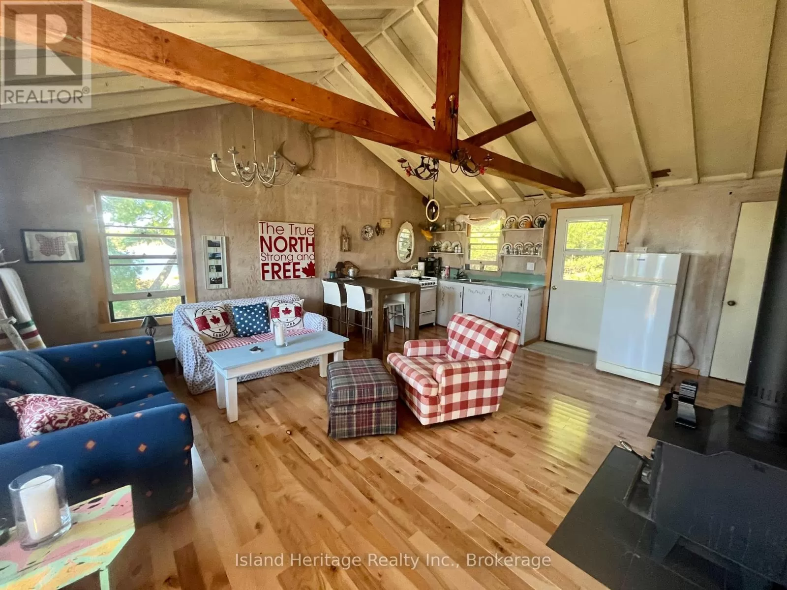 Cross Streets: Hwy 529 / Hwy 529A. ** Directions: By boat or float plane from local marinas etc. Prime, outer Georgian Bay island! 5.65 acres of picturesque Canadian Shield! Mature windswept pines abounding with wildlife! 2400 feet of granite rock shoreline offering spectacular vistas from any angle!! Full off grid seasonal living with this gorgeous property featuring a 2 bedroom, 3pc bath main cottage with full kitchen, family room with floor to ceiling stone fireplace, plus woodstove, both covered and open sun decks, outdoor shower and generator backup, plus guest cabin and master cabin! 2 bedroom guest cabin has its own kitchenette and living room space. Private master cabin features the master bedroom plus 3 pc bath and private deck. All offering panoramic open water views to the west allowing glorious sunset exposures! Be one of the very few who can spend their summers in this kayaker's paradise, exploring the outer shoals and near limitless Crown Land surrounding!!! With most all furnishings included with options on boats and toys, this property is ready to be enjoyed now!! (id:27476)