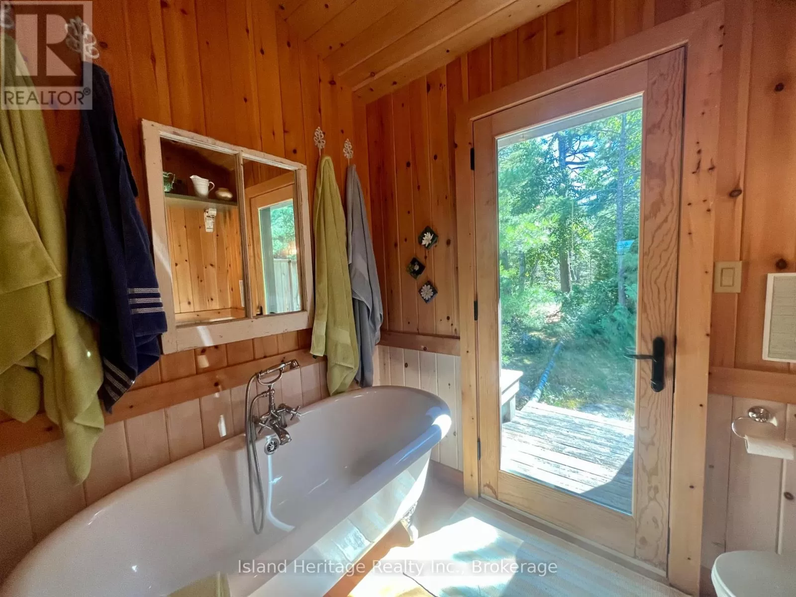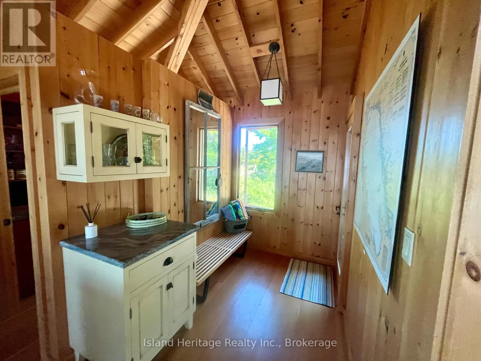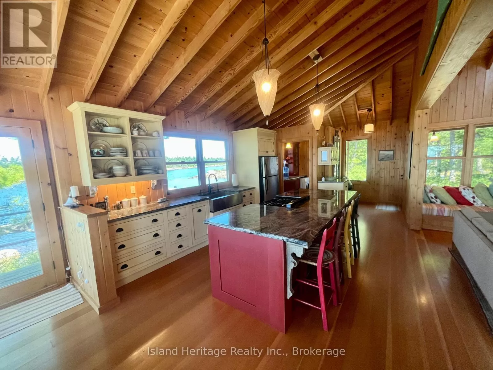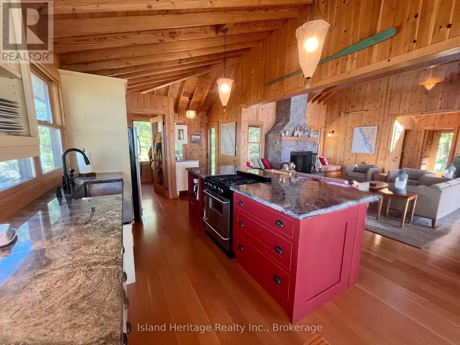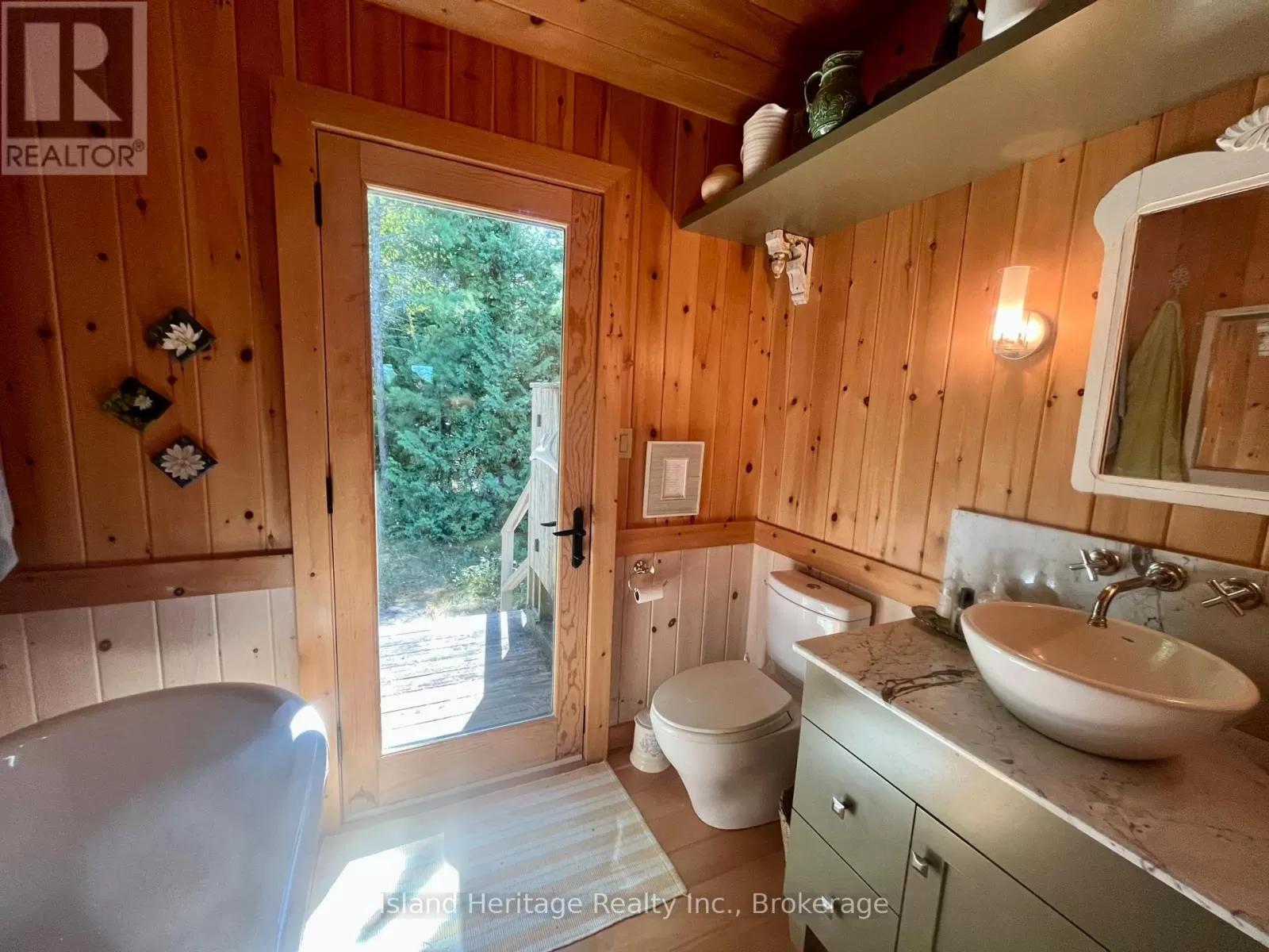Cross Streets: Hwy 529 / Hwy 529A. ** Directions: By boat or float plane from local marinas etc. Prime, outer Georgian Bay island! 5.65 acres of picturesque Canadian Shield! Mature windswept pines abounding with wildlife! 2400 feet of granite rock shoreline offering spectacular vistas from any angle!! Full off grid seasonal living with this gorgeous property featuring a 2 bedroom, 3pc bath main cottage with full kitchen, family room with floor to ceiling stone fireplace, plus woodstove, both covered and open sun decks, outdoor shower and generator backup, plus guest cabin and master cabin! 2 bedroom guest cabin has its own kitchenette and living room space. Private master cabin features the master bedroom plus 3 pc bath and private deck. All offering panoramic open water views to the west allowing glorious sunset exposures! Be one of the very few who can spend their summers in this kayaker's paradise, exploring the outer shoals and near limitless Crown Land surrounding!!! With most all furnishings included with options on boats and toys, this property is ready to be enjoyed now!! (id:27476)