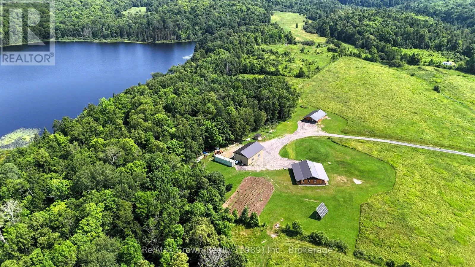 Cross Streets: Clear Lake Rd & Weller's Meadow Rd. ** Directions: Hwy 522 to right on Clear Lake Rd to SOP. Ideal for multigenerational living and hobby farming. Whether you're looking for a multi-family property or an income-generating opportunity, this nearly 30 acre farm property has expansive open fields - ideal for crops & gardens, a wooded area with trails set back from the road for privacy with scenic Bain lake as a backdrop, perfect for a sustainable lifestyle. The Primary 1500 sq.ft. Home, built in 2021, features propane boiler providing radiant in-floor heating with woodstove backup, on demand hot water system, an open-concept living space boasting vaulted ceilings, 3 bedrooms & 2 full baths - all Beautifully finished. Home is off-grid powered by a 4.8 kW solar array that supplies energy to both the home and the 30'x50' shop/garage, ideal for large equipment or workshop. All ESA inspections are in place to hook up to Hydro which is available if you'd prefer to pay a hydro bill. The secondary home is a spacious 1200 sq.ft. slab on grade bungalow w/ 3 bedrooms and vaulted living area, home is insulated and roughed-in with wiring and plumbing, ready for the new owner to finish. This building could serve as a guest house, studio/shop or home for extended family - you choose how you want to develop this property in an unorganized township. With low taxes, no hydro bill, economical wood heat, and established garden areas this property offers affordable living with endless potential. Tucked away in the charming community of Arnstein, where friendly faces and a welcoming rural vibe meet endless Lakes and Crown Land - perfect for the nature lover at heart. This is your chance to escape the rat race and embrace country living at it's best. Don't miss out - call today for your private tour! (id:27476)