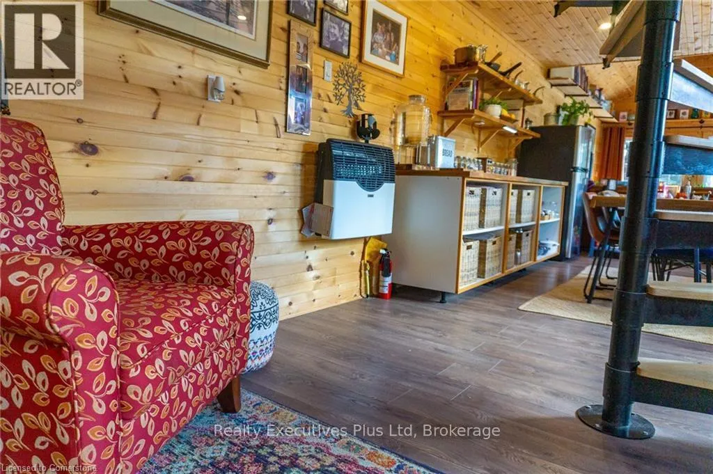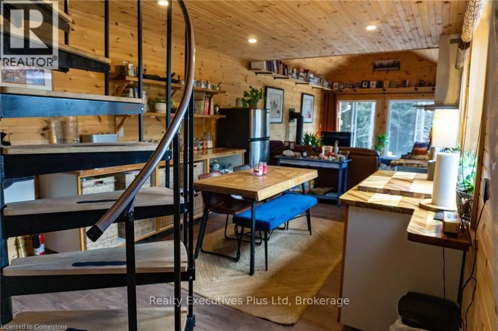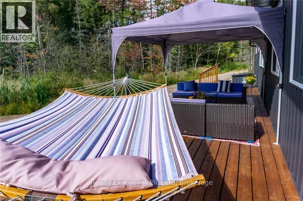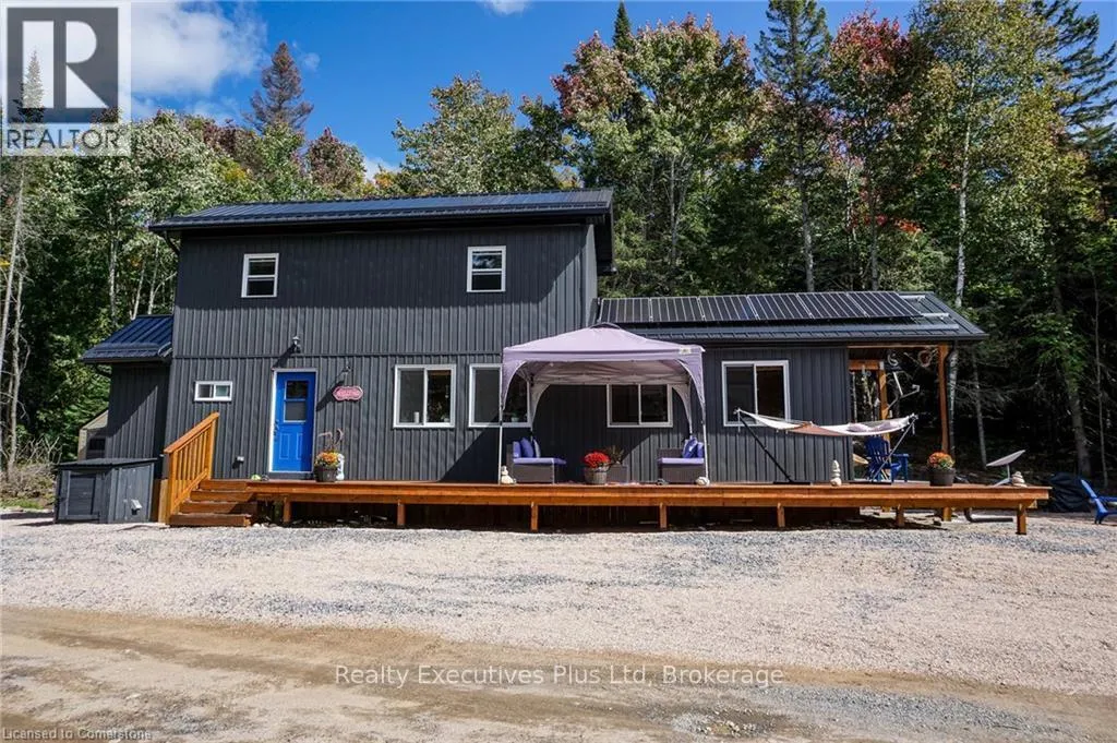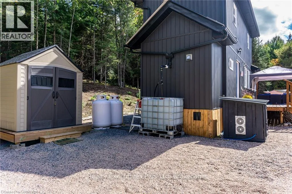 Cross Streets: Eagle Lake Road. ** Directions: Hwy 124 South River, west on Ottawa Ave to Eagle Lake Road, turn right. Follow approx. 15km to Rye road on the right, property is third driveway on the right. OPPORTUNITY AND TRANQUILITY AWAITS! SWAP CITY LIFE FOR LESS STRIFE! TURNKEY HOME AWAITS YOU! Welcome to this beautiful piece of paradise. FIRST YEAR OF FEES COMPLIMENTS OF THE SELLER. With STARILINK AVAILABLE FOR THE PERFECT WORK AT HOME OPPORTUNITY. ARE YOU READY TO LEAVE THE RAT RACE OF THE CITY? This lovely spacious not so tiny home is nicely set on a quiet lot in an off grid community only 15 minutes from South River. This fully turnkey property is located in the unorganized township of Lount offering plenty of recreational land and privacy. Set on an acre of mixed forest that provides privacy and room to explore nature at its finest. The large deck overlooking a pond sets the scene for enjoyment of the wildlife All furniture included with a few small exceptions. This lovely home offers 12 foot cathedral ceilings, 2 water cisterns, back up generator, propane stove, propane fireplace and a wall furnace to keep you warm on the cold winter nights. Lots of outdoor storage available in your own beautiful shed. Land lease $375.00 + Hst monthly + $250 annual property taxes making this a super affordable oasis. Property fees include: snow plowing, garbage pick up at the designated spot located on the site, gray waste removal, road maintenance. This home has upgraded insulation, and upgraded finishings, as well as a double water filtration system. All gas appliances have been serviced on a regular basis. This perfect worry free, warm inviting home awaits you. Whether you are looking for a cottage or a primary home, don't miss this opportunity! This is a lovely community feel that offers the best of both worlds, privacy, beauty, and open space. Second lounge upstairs can easily be turned into a second bedroom for out of town guests. (id:27476)