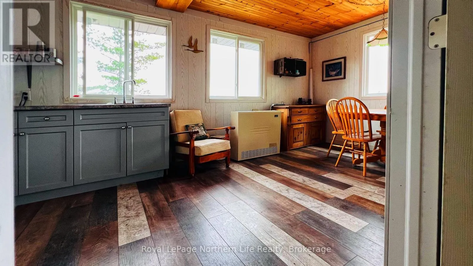 No crossroads. No roads. Your Off-Grid Getaway on the Historic French River. Looking to truly unplug? This charming water-access-only cottage offers the perfect escape on the iconic French River, just a boat ride from Lake Nipissing and not far fromNorth Bay or Sturgeon Falls. Perched on a point and backing directly onto South Bay Provincial Park, you will feel a world away while still being within reach of amenities when you need them. Located in an unorganized township, yes, that means fewer rules and more freedom. This cozy retreat offers a back-to-nature experience without sacrificing the simple comforts that make cottage life sweet. Whether you are casting a line, paddling at sunrise, or sipping your morning coffee on the deck with nothing but birdsong and the gentle ripple of water, this place delivers peace in spades. Surrounded by crown land and protected parkland, you wont see many neighbours, but you will see moose, loons, amazing sunsets and skies full of stars. If you have been dreaming of a private, low-maintenance cottage with classic northern Ontario vibes and endless adventure just beyond the dock, this is it. Start making memories in a place where the only traffic is a canoe gliding by. (id:27476)
