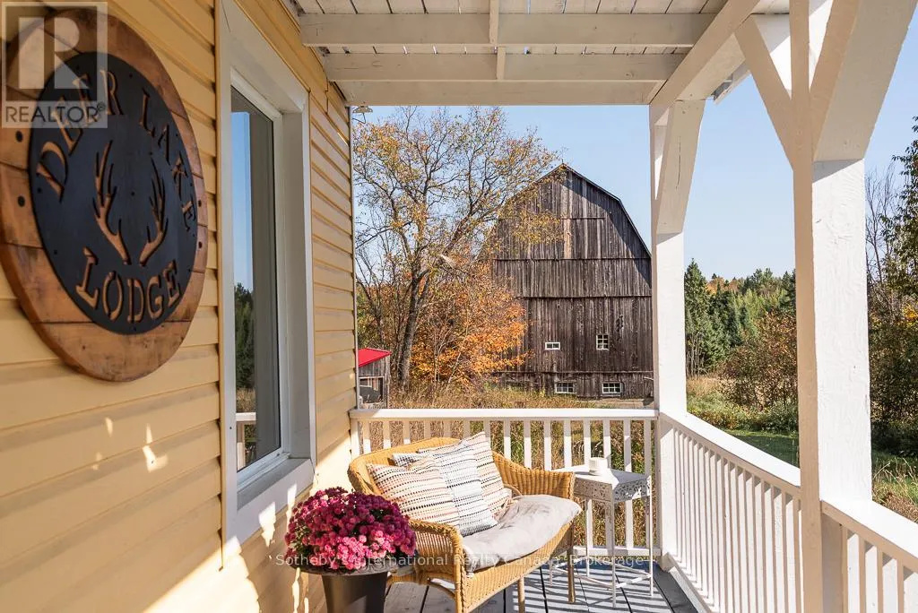 Cross Streets: Rye Road and Eagle Lake Road. ** Directions: agle Lake Road to adress. First driveway after Rye Road on the right. #4198. DEER LAKE WILDERNESS RETREAT - OWN THE PROPERTY + ESTABLISHED GLAMPING BUSINESS! Set on 10.5 private acres in Ontario's beautiful Almaguin Highlands, this exceptional wilderness getaway offers multiple four season accommodations and future expansion potential. The newly renovated 5 bed, 3 bath century Lodge is ideal for hosting or owner use, while the semi off-grid Cabin, Stargazer Geodome, and Barn loft suite provide multiple income streams with the possibility of adding more glamping sites. Two private driveways and ample parking allow for guest privacy, event hosting, and smooth operations. The stunning bank Barn features stalls and an insulated loft space with incredible future value as a venue for retreats, workshops, or weddings. Located in an unorganized township, the property offers rare flexibility and freedom for further development or expansion giving the new owner flexibility to create a truly unique property and experience. Enjoy trails throughout the land, nearby lake access and outdoor pizza oven - don't miss out on a truly turn-key retreat and lifestyle opportunity. (id:27476)