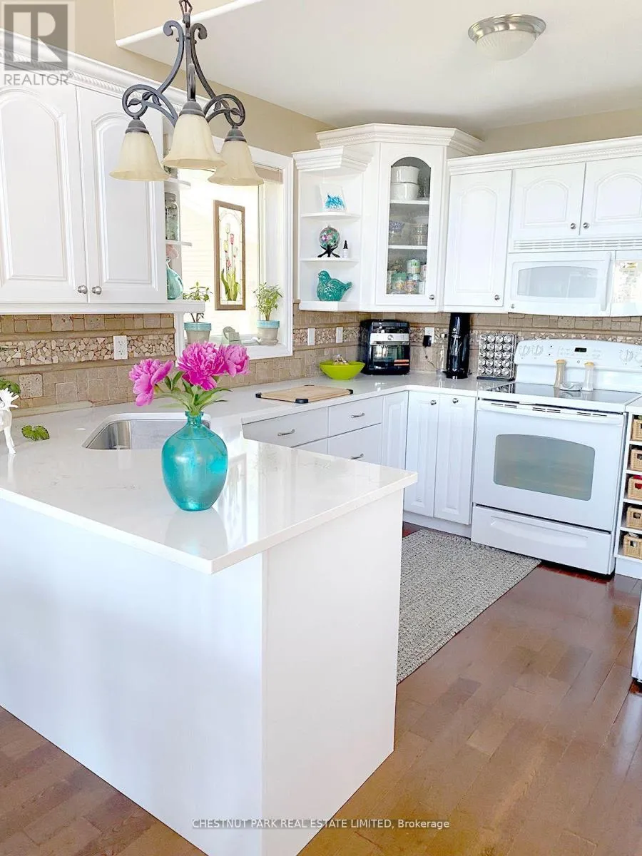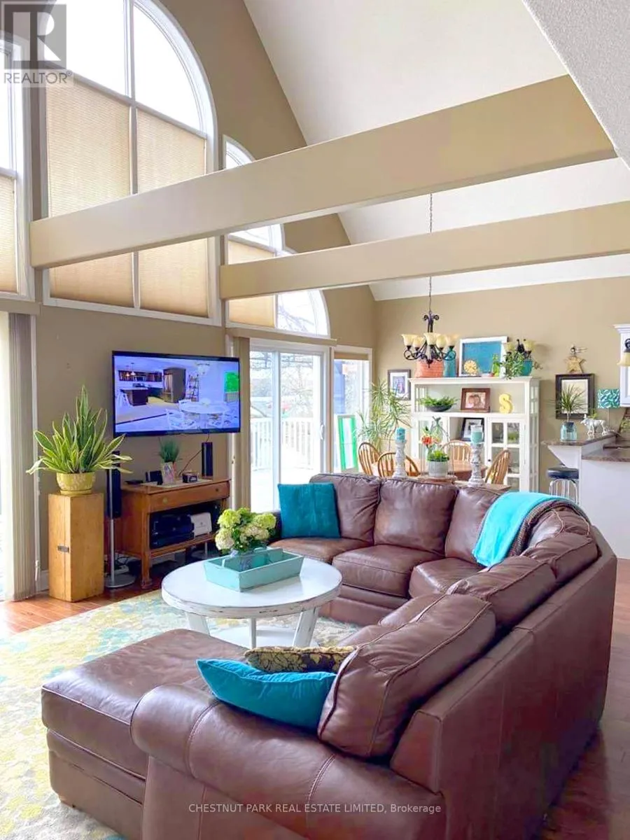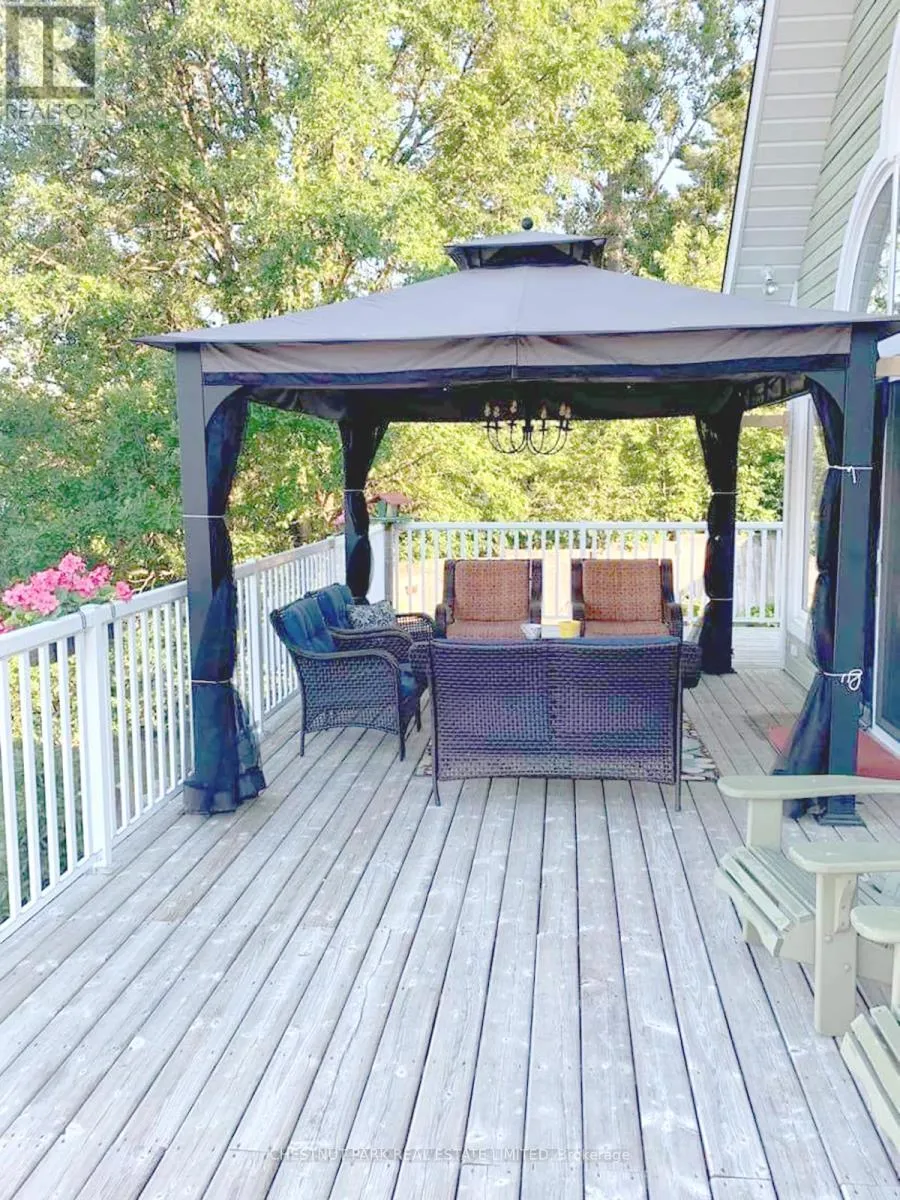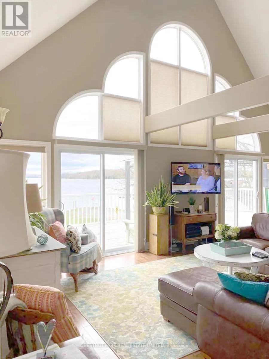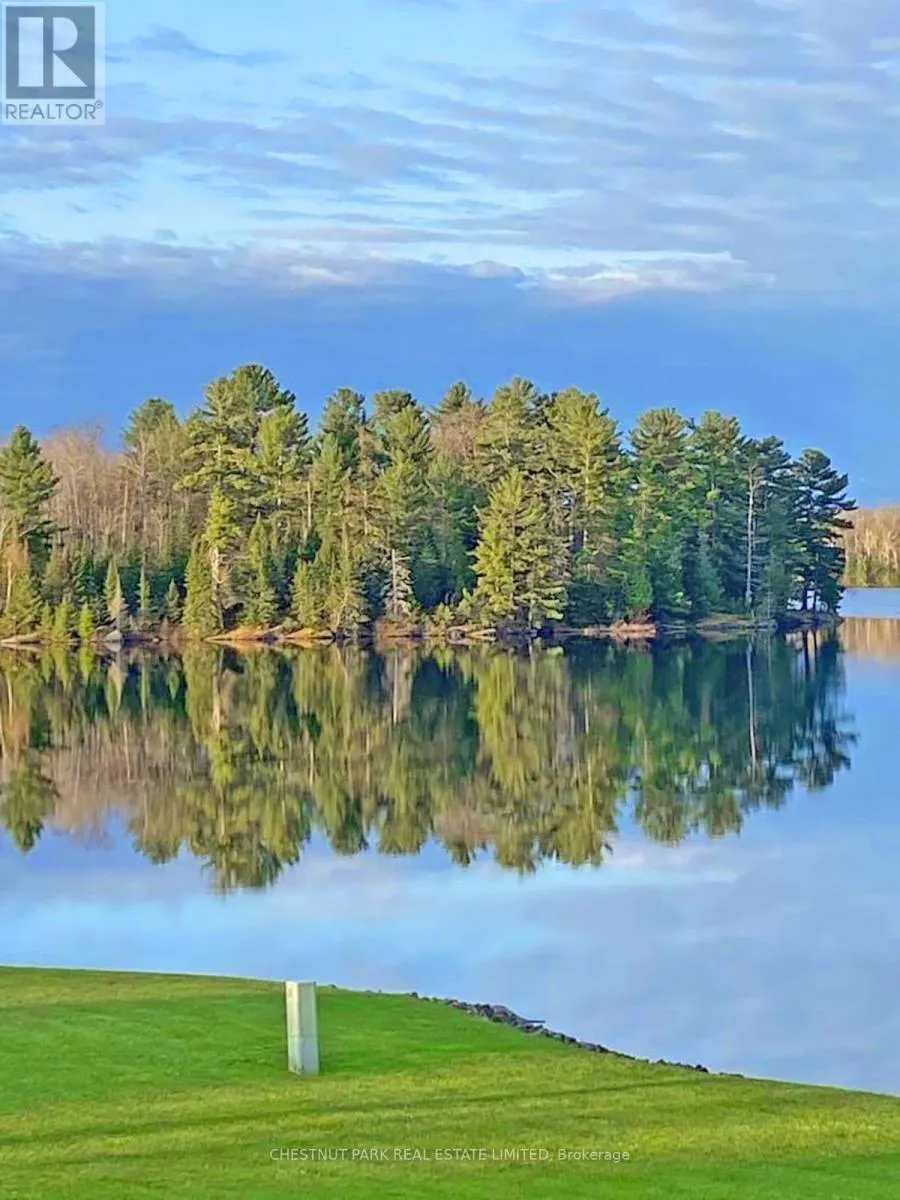 500m south of Hwy 522 Superb quality, well-designed custom home, with majestic, long views down Wilson Lake, and a dreamy 30 x 42 garage/workshop/art studio. High-end finishes throughout including hardwood and cork flooring, quartz countertops (2023), ceramic, marble and earthstone tile, oak railings and trim, and rounded drywall corners. Truly abundant natural light: great room with cathedral ceiling, two double glass door walkouts, and a wall-of-windows soaring to the apex. Over-built floor systems for no-squeak solidity. ~900sf wrap-around deck affords ultimate lake views. Lower level has 9 ceilings and above-grade windows. R30 insulation, including the garage. Garage features 6 walls, baseboard heating, 3-pc washroom, laundry hook-ups, steel roof. Wilson lake is a large lake with numerous islands and access to Pickerel River, Lost Channel and Dollars Lake for ~80km of boating and exceptional pickerel and bass fishing! 2 blocks to a public boat launch. Docking rental immediately adjacent the property. (id:27476)