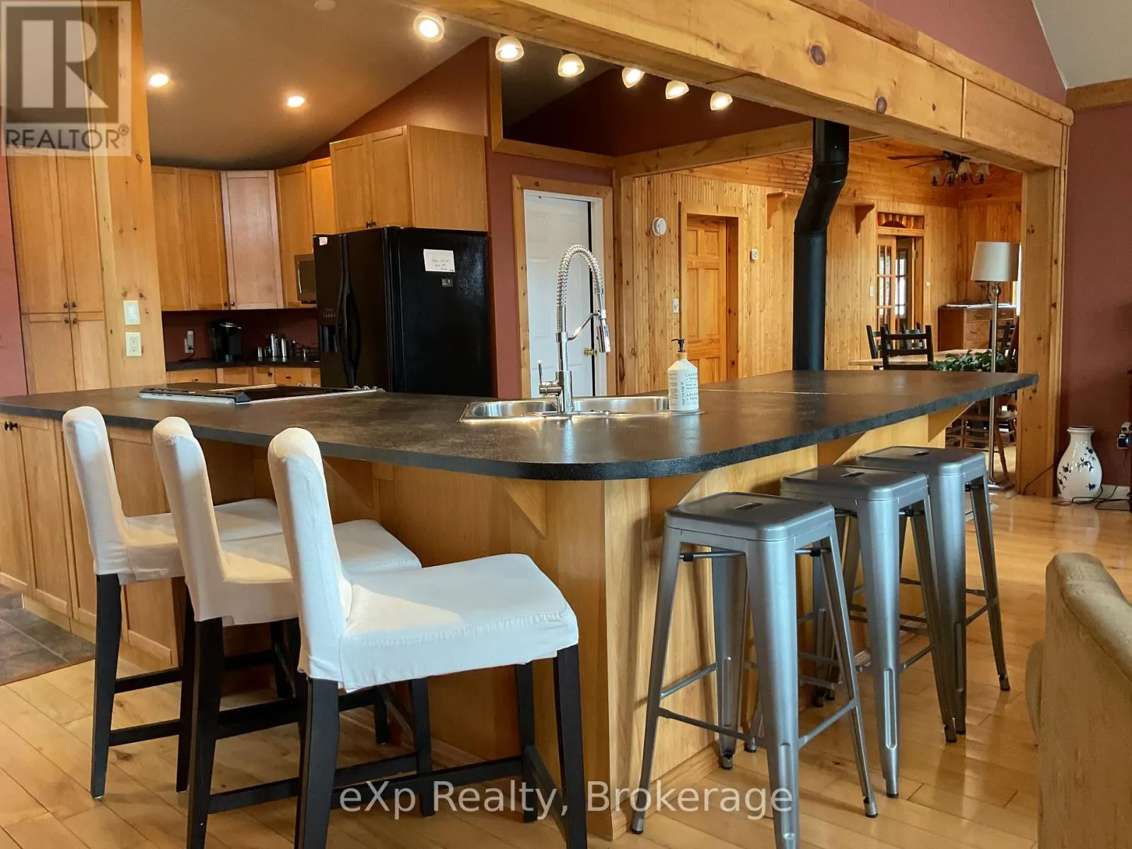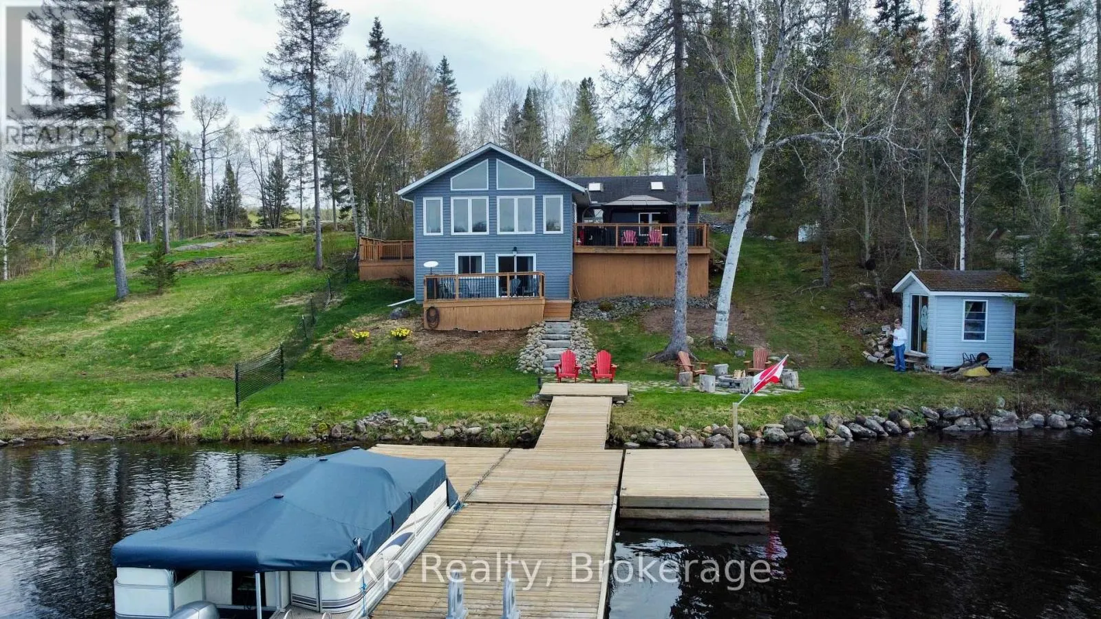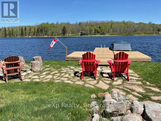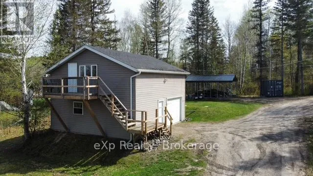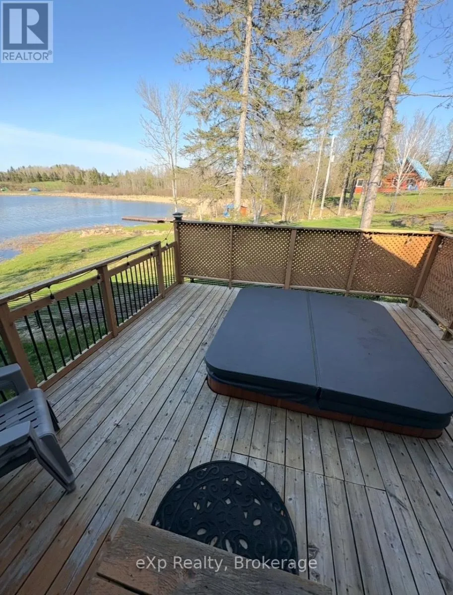Cross Streets: HWY 522 and Golden Valley Parkway. ** Directions: Travel HWY 522, turn onto Golden Valley Parkway, turn right onto Valley Drive to SOP in cul-de-sac. Welcome to your dream getaway on the shores of beautiful Jacks Lake! Nestled on over 3 acres in an unorganized township, this waterfront home is ready for your enjoyment. Step inside to a bright, open-concept layout featuring a spacious kitchen with a large island, ideal for cooking and entertaining. The living room boasts cathedral ceilings and stunning lake views, with French doors that open onto a large deck with a gazebo perfect for grilling or hosting guests. Just off the kitchen, another deck leads to a sunk-in hot tub- an inviting space for relaxing under the open sky. The lower-level walk-out is currently used as the primary bedroom. This suite includes a convenient 2-piece bath and patio doors leading to a private deck. It's an excellent retreat for parents or guests, offering immediate access to the outdoors, whether for a night swim or sipping your morning coffee. An oversized garage offers plenty of space for storage or hobbies, and above it you'll find additional living space with a bedroom, a 3-piece bathroom, kitchen, and sitting area ideal for guests, rental income, or extended family. Other features include a covered boat storage structure, a wood shed with hydro, a large dock, a lakeside fire pit and storage shed for quick access to your favorite water toys. Some furniture and furnishings are included. Whether you're looking for a peaceful family cottage, a rental opportunity, or a full-time residence, this move-in ready gem offers it all. (id:27476)