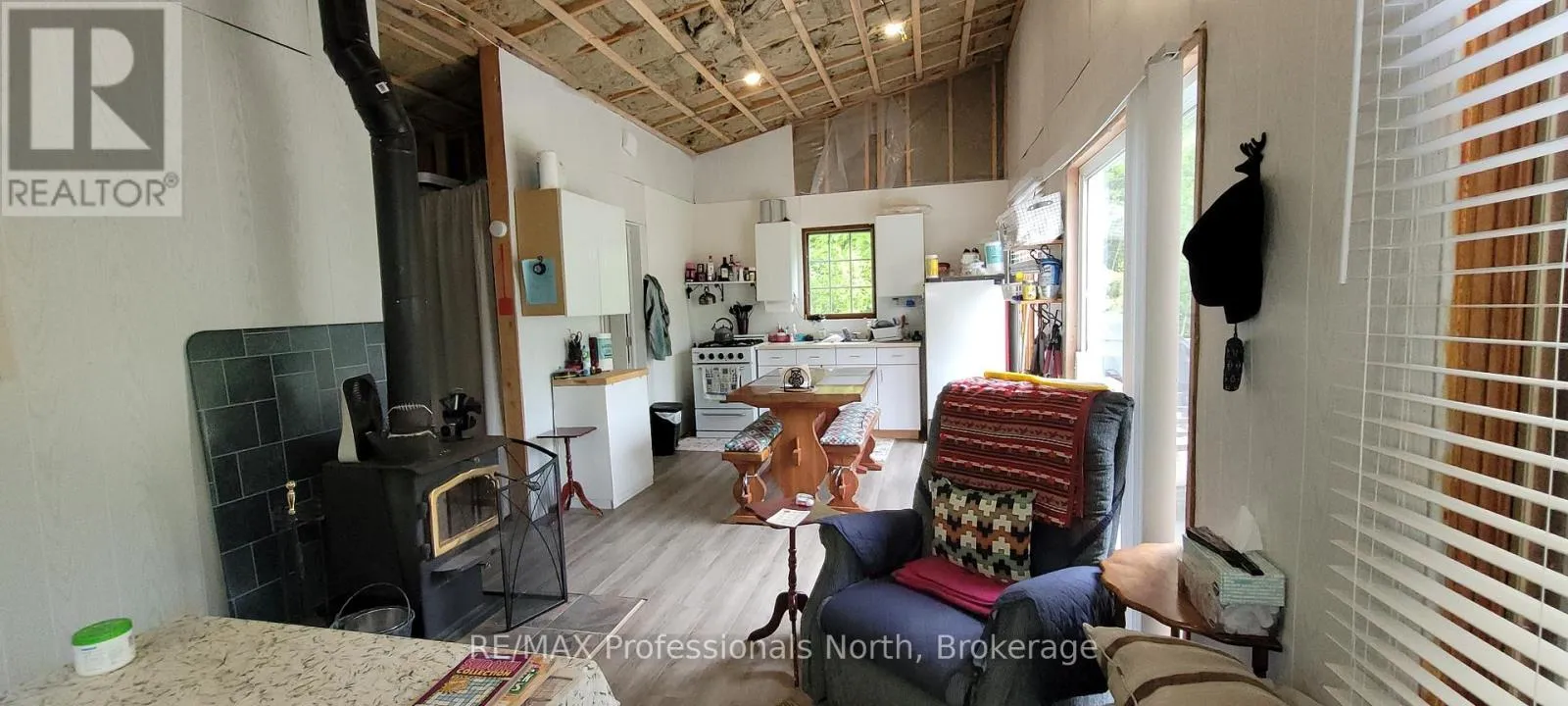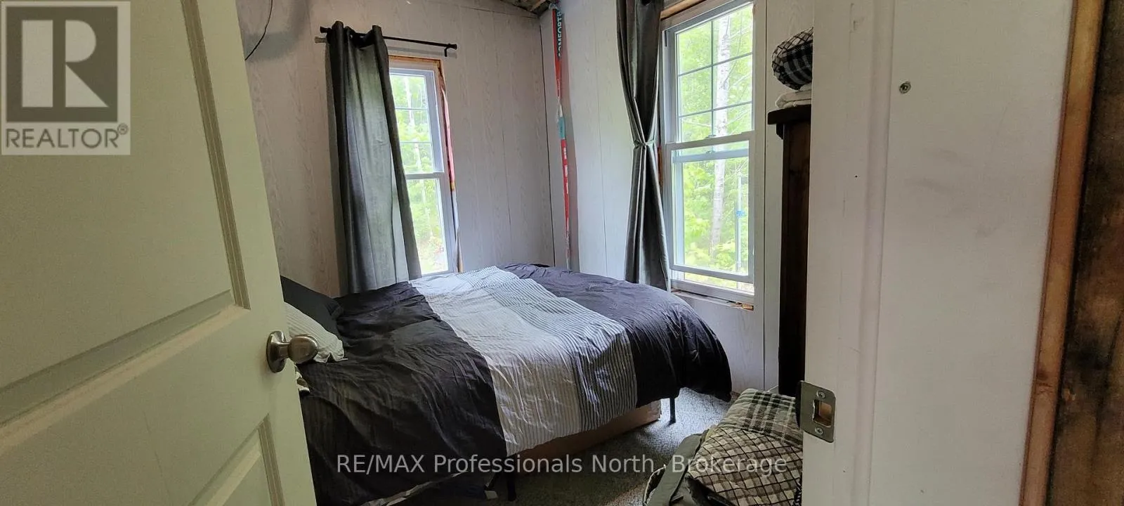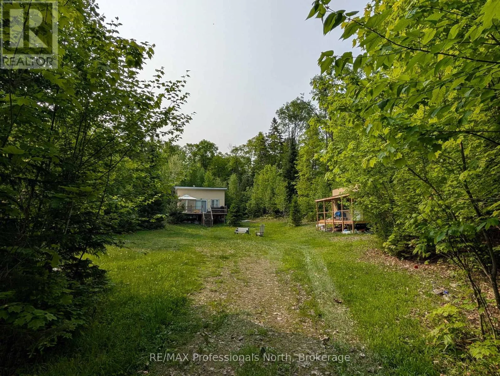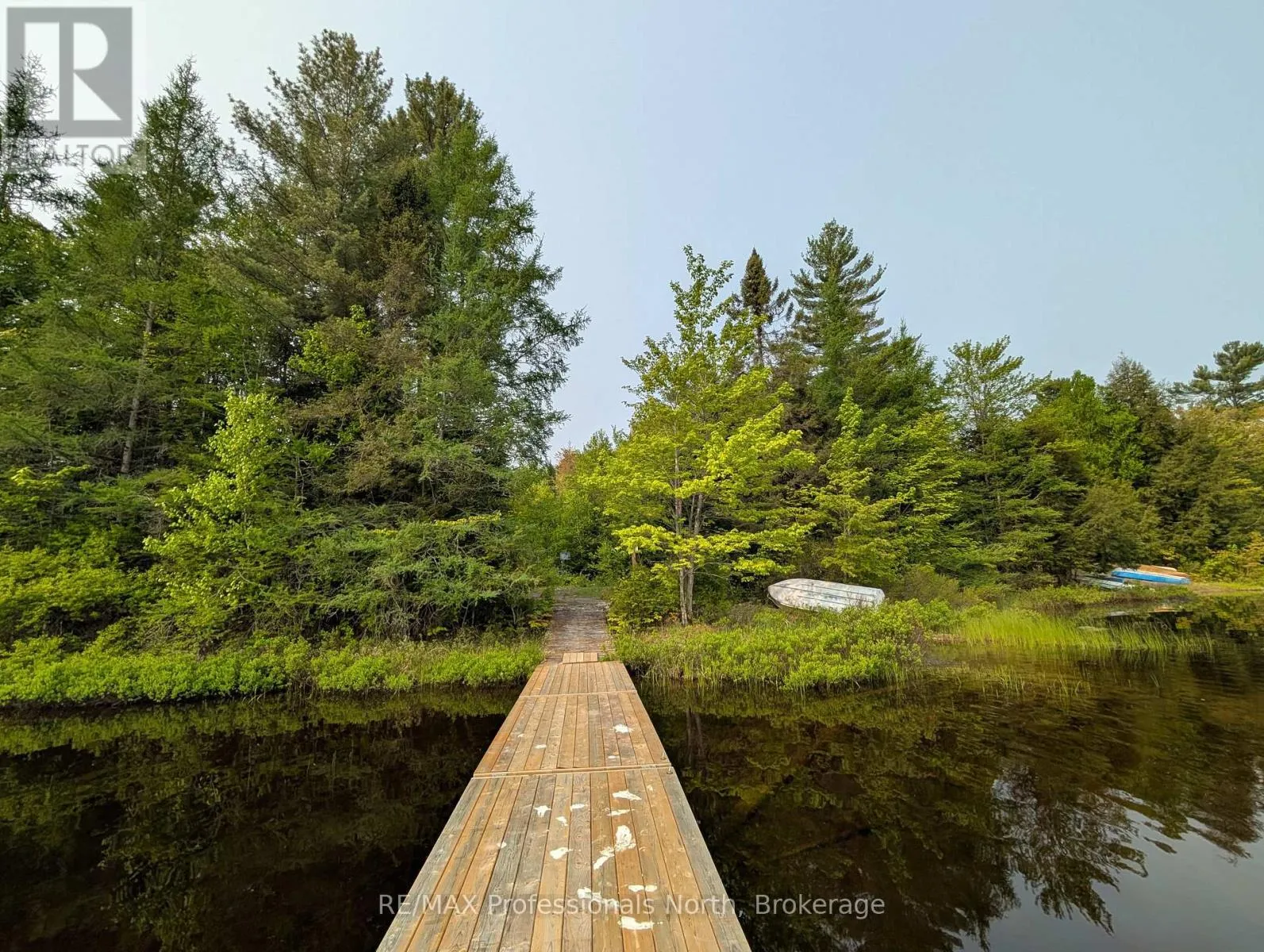 Cross Streets: Spring Lake Rd & Centre Rd. ** Directions: South River: Ottawa Ave, West on Eagle Lake Rd, Follow to Spring Lake Rd, Right on Woods Rd to Property. Private, waterfront getaway in unorganized township on Maeck Lake in the heart of the Almaguin Highlands. Enjoy this 16 acre waterfront property on Maeck Lake with easy access from the main road and 2 secluded cabins built in 2019. The main cabin has 2 bedrooms, a living area which includes an eat-in kitchen and living room with woodstove and sliding doors leading to a 10' x 28' deck w/gazebo. Outdoor 120 gal cistern supplies water to the cabin, hot water available, all leading to a grey water drain. The cabin is fully insulated with 2" x 6" construction and R24 insulated floor, double pane vinyl clad windows, low maintenance Lifetime Smartside tongue and groove panels, propane fridge and stove, small solar system with RV batteries, led lighting, including jacks for cell phones and other devices. The 2nd cabin is a modified trailer with screened-in deck and open space to make your own. Ideal for Airbnb rental or build your own home/cottage with a number of potential building sites. Build to Ontario Code with no building permits required, other than septic & hydro. Hydro available at the property line. Private laneway leads to waterfront with turnaround, boat launch, and newer dock. Maeck Lake Association has a 9.9 HP motor restriction, and no public access to the lake. Property is adjacent to acres of crown land.. Great opportunity... much to appreciate here! (id:27476)