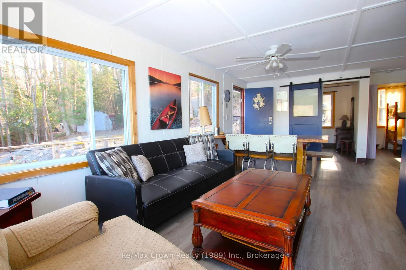 Cross Streets: Lakeview Rd & Riverview Ln. ** Directions: Hwy 534 to Restoule cross single lane bridge and take first right onto Lakeview Rd - appoz 1/2 km to Rivervewi Ln on Right. Make This Summer One to Remember! Discover your own slice of paradise with this affordable & charming waterfront cottage on beautiful Restoule Lake. This 3-bedroom, 1-bath getaway offers a maintenance-free exterior with vinyl siding, steel roofing and vinyl windows and sits in close proximity to the Lake with 107' perfect shorline on a well treed lot. While the approach to the property is sloped, the cottage itself and the outdoor living space are perfectly level-an ideal setting for summer relaxation. The cottage comes fully furnished, making it completely turn-keyand ready for fun. A storage shed and Dock-in-a-Box vinyl docking system (easy to install) complete the package. Located in an unorganized township, this property offers exceptional flexibility for future development, upgrades, or additions with far fewer permit requirements than most areas. It also makes an excellent short term rental for weeks you're not using it. Nestled in the quiet, welcoming community of Restoule you'll enjoy the conveniences of a fire department, helipad, restaurant, general store, meat market, and a stunning provincial park nearby. If you've been waiting for an affordable waterfront retreat this is the opportunity you don't want to miss. Come take a look-your summer escape awaits (id:27476)