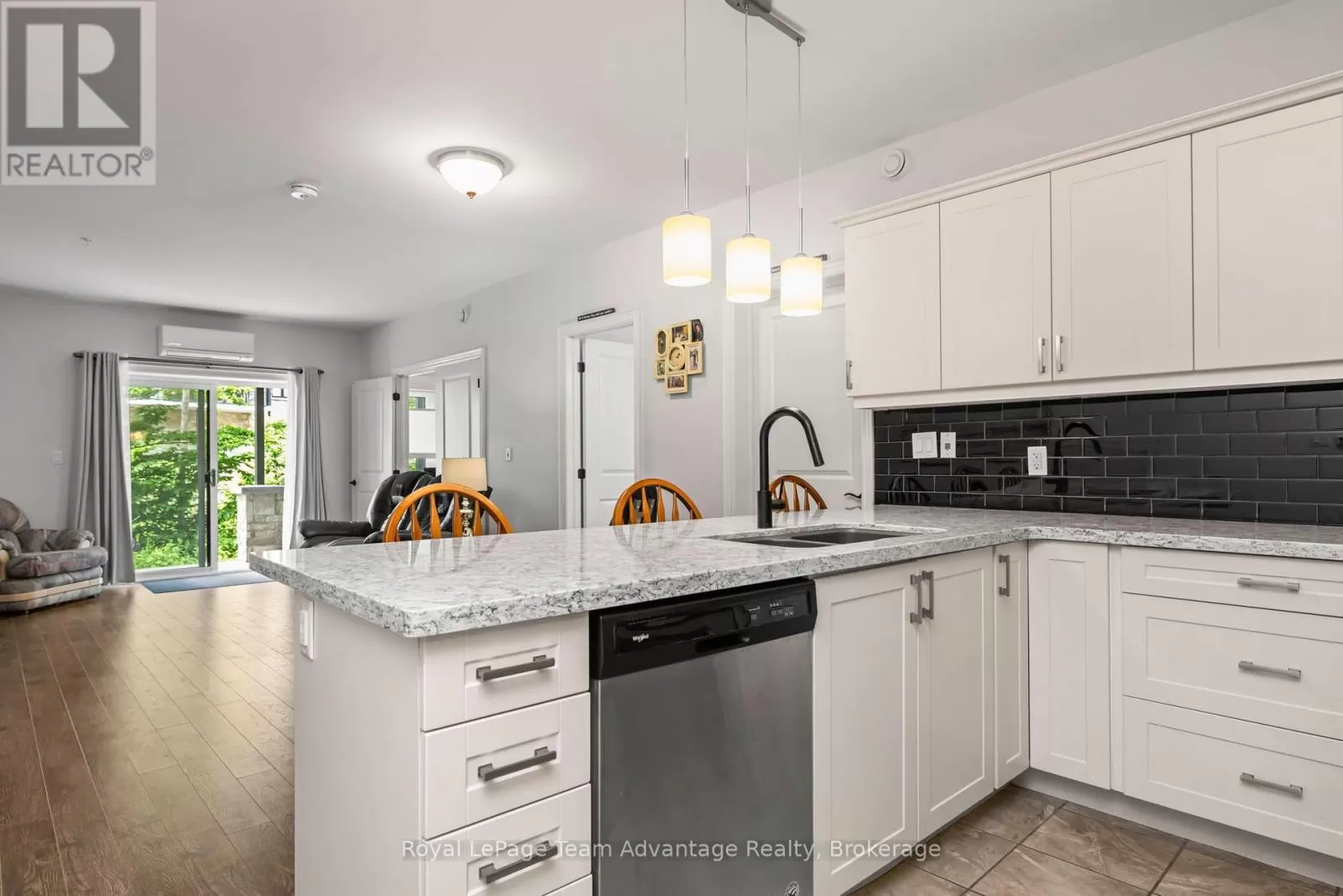 Cross Streets: Salt Dock Rd & Waubeek St. ** Directions: Highway 400 to Bowes St to Seguin Street left onto Waubeek Street, Right onto Georgina St left to Salt Dock Road, right to Granite Harbour Condos. Welcome to effortless living in this ground-floor condo unit located in the Breakers at Granite Harbour. Step inside to find an open concept layout featuring a spacious living and kitchen area, 2 bedrooms and 2 baths. A rare bonus is the private side entrance leading to a charming patio area perfect for morning coffee or entertaining. Steps to Georgian Bay, Fitness trail, sailing club and the Stockey Centre. This is a must-see opportunity for those seeking year-round living or a turn-key weekend retreat close to the bay. (id:27476)