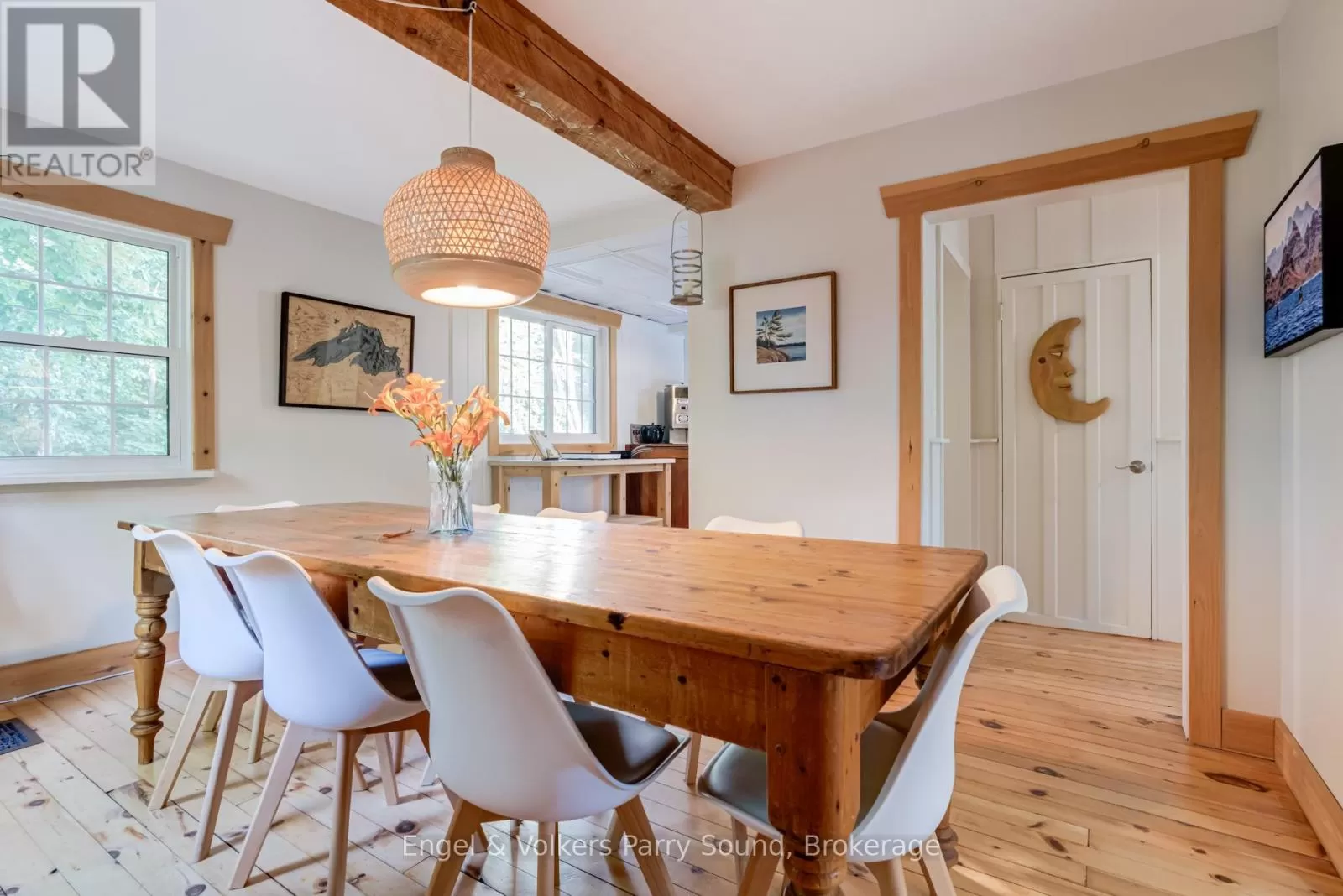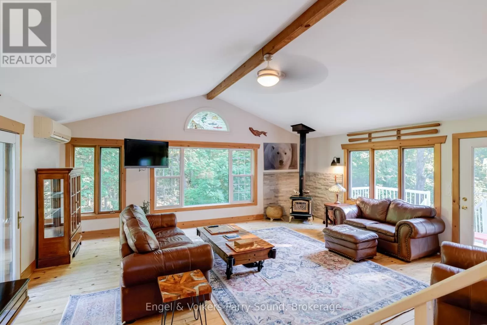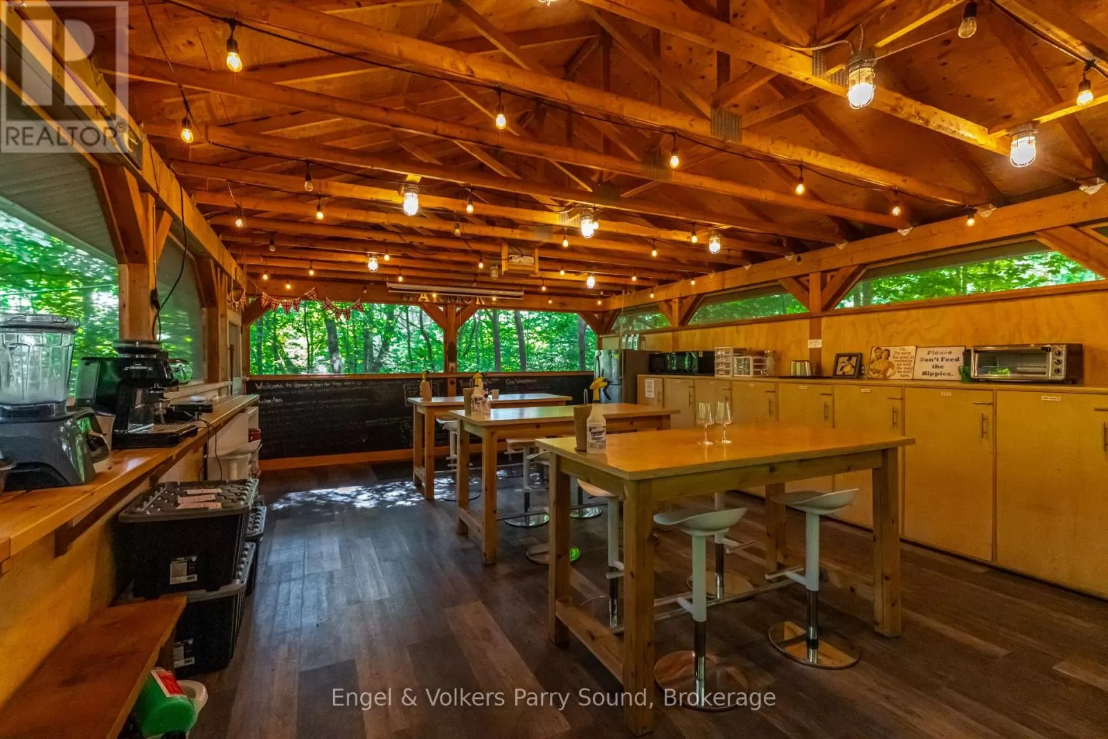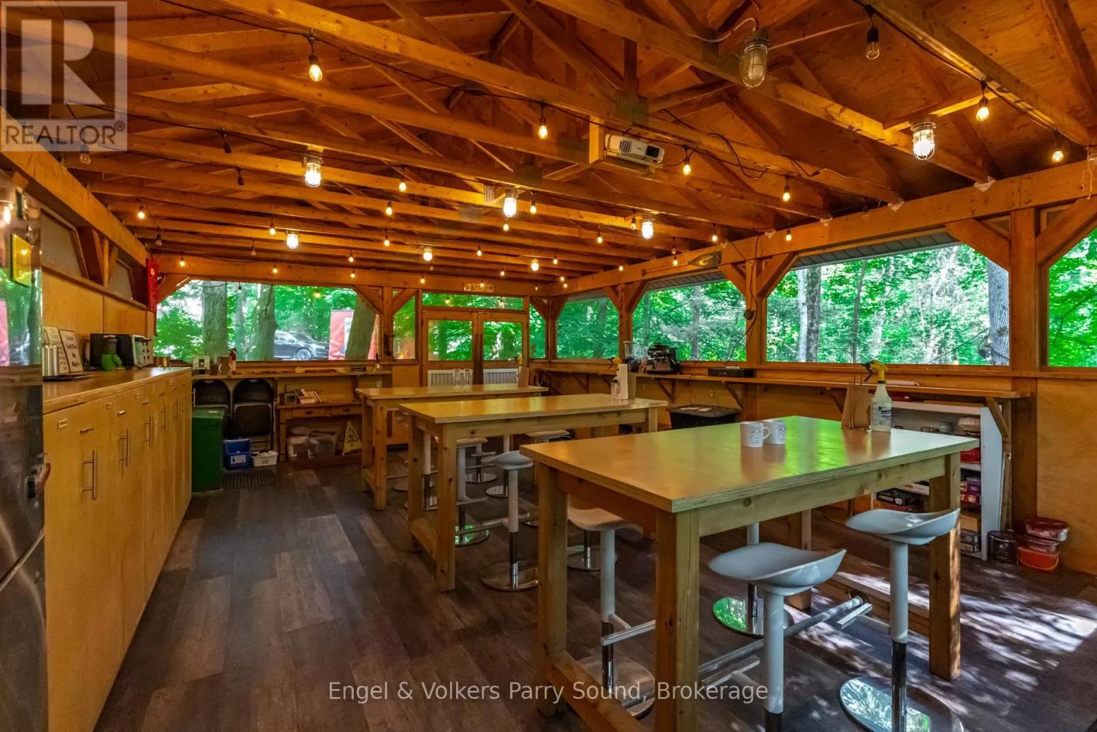 Cross Streets: Hwy 400 & Bowes Street. ** Directions: Highway 400, exit Bowes Street. First right on Louisa St, right on Harmony Lane. Rare Commercial Waterfront Opportunity in Parry Sound - Harmony Outdoor Inn. A truly rare opportunity to acquire Parry Sound's only waterfront hospitality retreat or use personally for your own private oasis! This well-established and highly rated business sits on 14.16 acres of commercially zoned waterfront land, boasting nearly 500 feet of shoreline on the scenic Seguin River and surrounded by tranquil forest trails. Minutes from the downtown core, yet immersed in nature, this unique property offers an unparalleled fusion of seclusion and convenience. Zoned for six guest suites and up to ten campsites or tourist accommodation units (up to 500 SF each), the property presents a tremendous opportunity for a visionary entrepreneur or outdoor enthusiast seeking to grow an already thriving enterprise. The main house features three bedrooms, further sleeping accommodations in the lower level, and inviting open concept common living and dining spaces. Two wood burning fireplaces on the main floor and lower level. A thoughtfully designed Pavilion anchors the property, offering guests, friends & family a communal hub for dining, working remotely, or relaxing after a day of adventure. Seven glamping-style campsites are already in place, each outfitted with eco-conscious, chemical-free composting outhouses. At the waters edge, guests enjoy a sandy beach, dock, yoga platform, fire-pit and serene riverfront vistas ideal for kayaking, canoeing, stand-up paddle-boarding, or simply unwinding by the water. In the winter, the experience transforms with snowshoeing, skating, and cozy fireside moments, offering four-season revenue potential. This is a once-in-a-generation offering; a fully zoned, turnkey hospitality retreat or personal oasis. All within moments of Parry Sound's vibrant shops, restaurants, and hospital, with direct highway access. A premier investment and lifestyle opportunity unlike any other in the region. (id:27476)