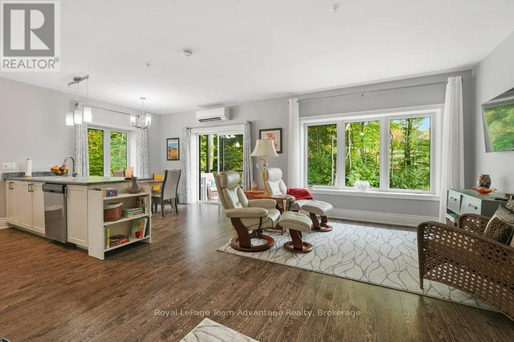 Cross Streets: Waubeek Street. ** Directions: Highway 400 to exit 229 left on Joseph St, right on Isabella, left on Wood St, right on Marion, right on Salt Dock Road. Welcome to condo life 11B - Granite Harbour Parry Sound- where comfort meets nature in the heart of Parry Sound. This bright 2 bedroom, 2 bathroom condo is thoughtfully designed with wheelchair accessibility and the ease of single-level living. Step out onto your private deck and take in the calming view of trees, a gentle stream, the rear gardens and even a glimpse of Georgian Bay. It's the perfect spot to enjoy your morning coffee or unwind at the end of the day. Inside you'll find a modern layout built in 2019 paired with the convenience of an indoor parking and locker space. Everything here is set up for practical, low-maintenance living without sacrificing comfort. Just outside your door explore walking trails, the waterfront and all that Parry Sound has to offer. Close to town yet surrounded by nature, this home is an easy fit for anyone looking for a place that's simple to live in and lovely to come home to. (in-floor radiant heat, ductless split A/C) (id:27476)