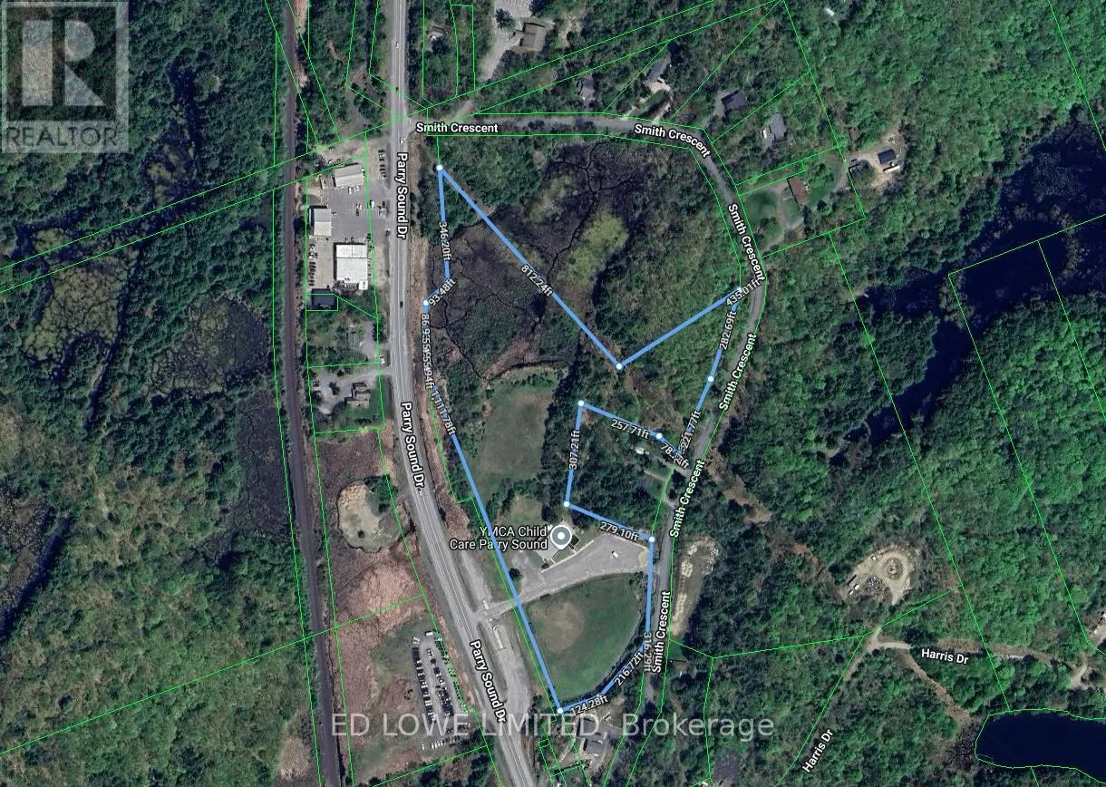 Cross Streets: Parry Sound Drive and Smith Crescent. ** Directions: Highway 400, West on Parry Sound Drive, North on Parry Sound Drive. Now offered for sale, this 14.57-acre property is truly one of a kind. With two road frontages on Smith Crescent and Parry Sound Drive this site offers outstanding visibility, access, and potential.The property includes a versatile 10,000 sq. ft. building suitable for a wide range of uses, supported by ample on-site parking and extensive acreage ideal for future expansion or development. Currently zoned Open Space, the property's flexibility extends even further, the Seller is open to considering offers conditional on pursuing an Official Plan and Zoning Amendment, unlocking the full potential this site can offer. This is a unique opportunity to secure a significant parcel in Parry Sound. The property is being listed at $1.00 as it will be sold through a bid process, with all offers welcomed after December 14, 2025. (id:27476)