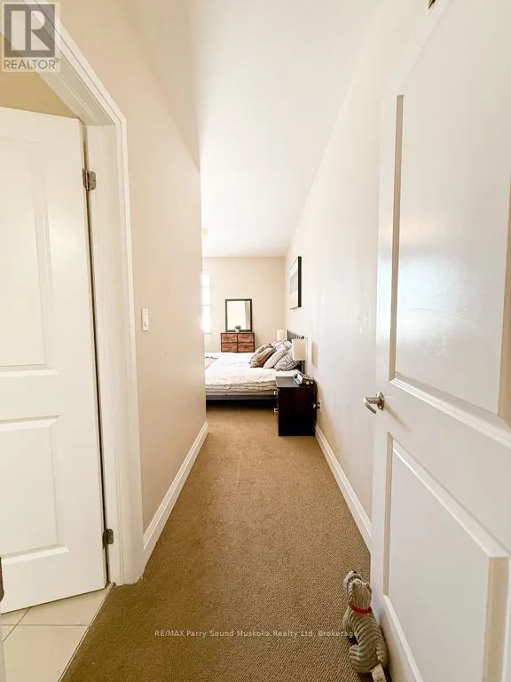Cross Streets: William St and Silver Birch. ** Directions: William St to Silver Birch. Impressive, sun-filled top-floor corner unit. This two-bedroom, two-bathroom condo offers comfortable, easy living in a professionally managed building in Parry Sound. The bright and inviting layout features high ceilings and an open-concept kitchen and living area, ideal for everyday living or entertaining. The primary bedroom includes its own private ensuite, while the second bedroom offers flexibility for guests, family, or a home office. Step out onto your private balcony to enjoy fresh air and seasonal views, complete with a natural gas BBQ hookup. Comfort is enhanced with a natural gas furnace and central air conditioning. Additional highlights include in-suite laundry, underground parking, a dedicated storage locker, and elevator access for added convenience. Well suited for year-round living, this condo is close to local amenities and offers convenient access to Highway 400-an ideal opportunity for those seeking low-maintenance living in the beautiful town of Parry Sound. (id:27476)