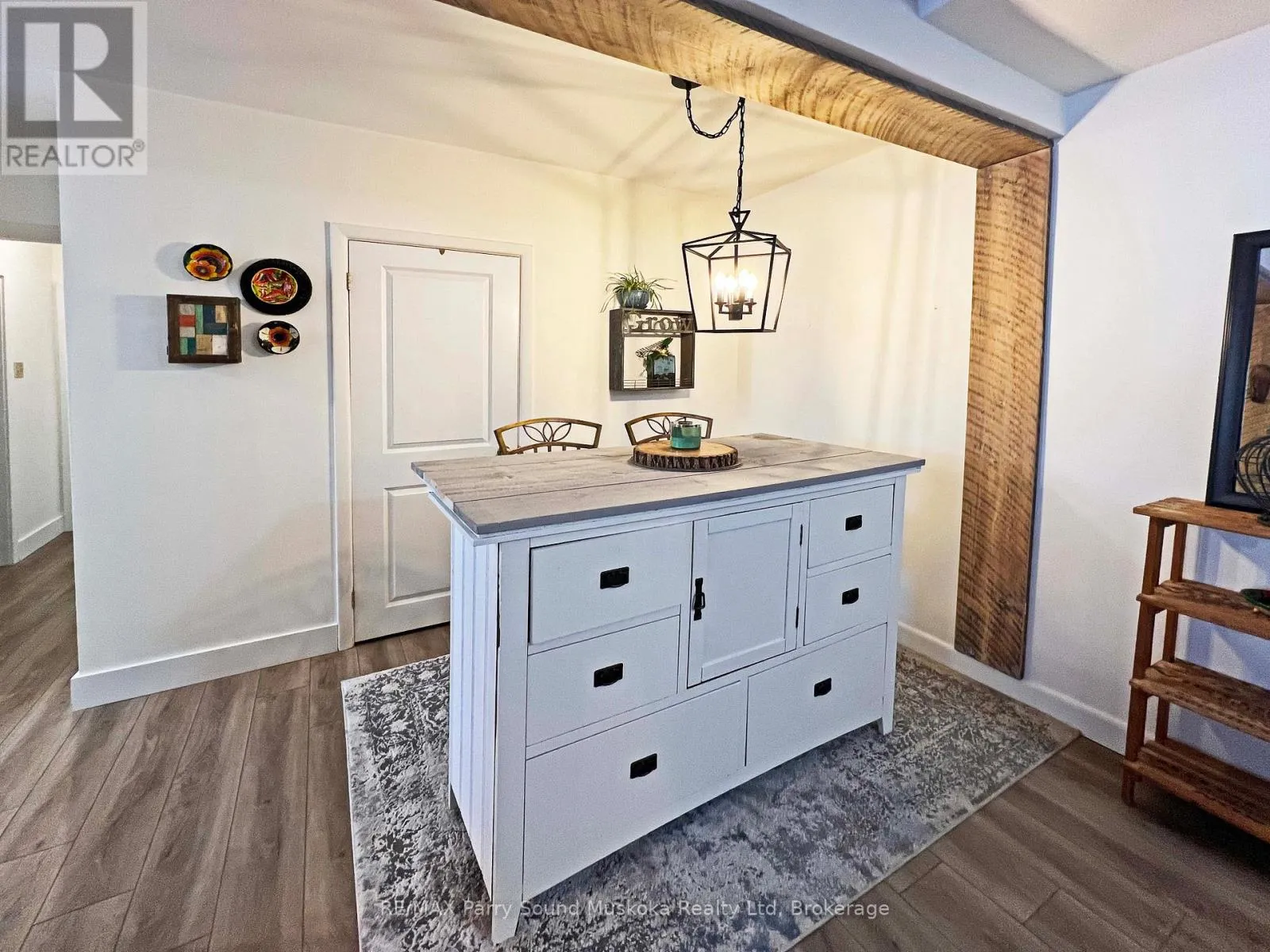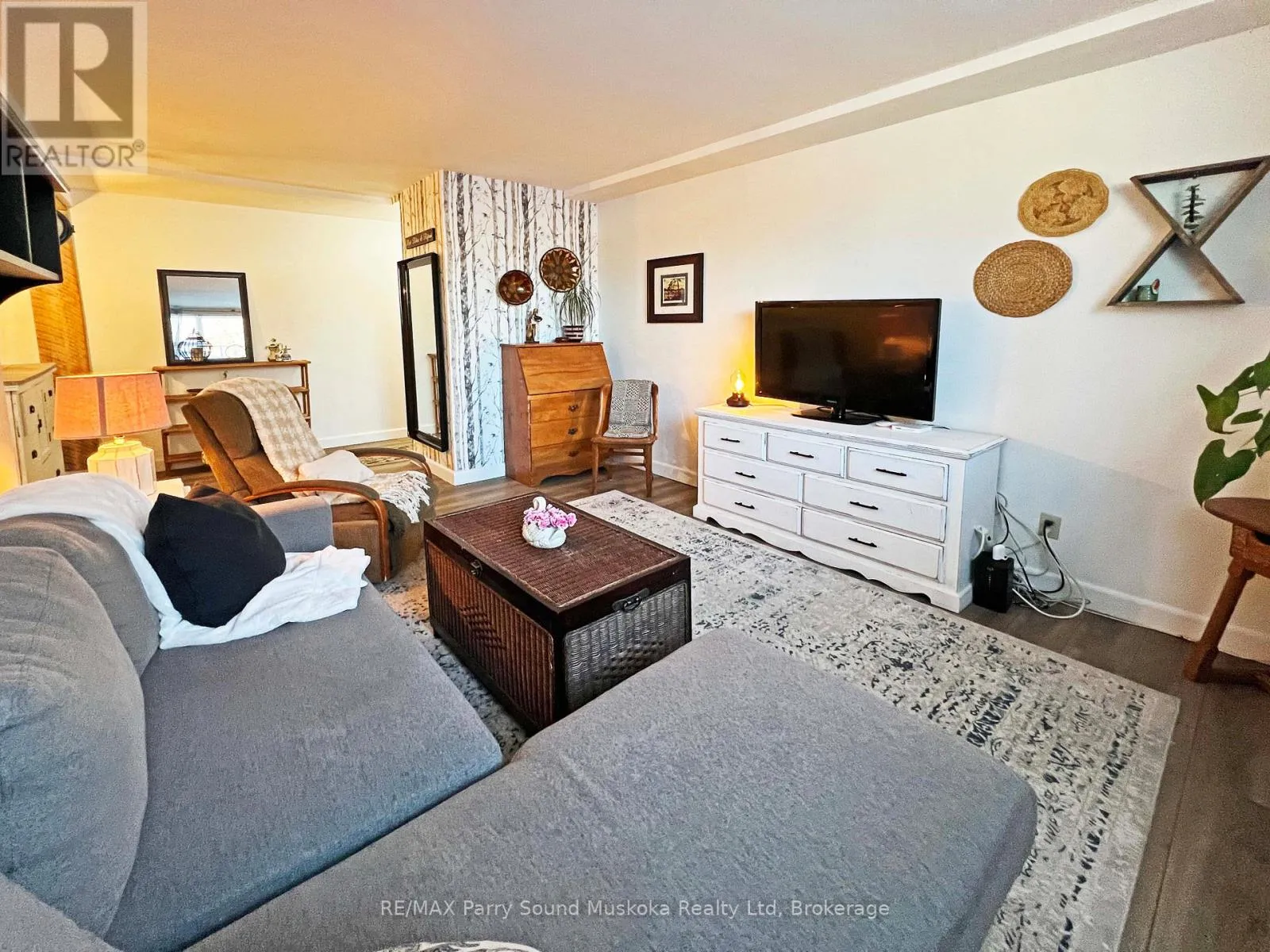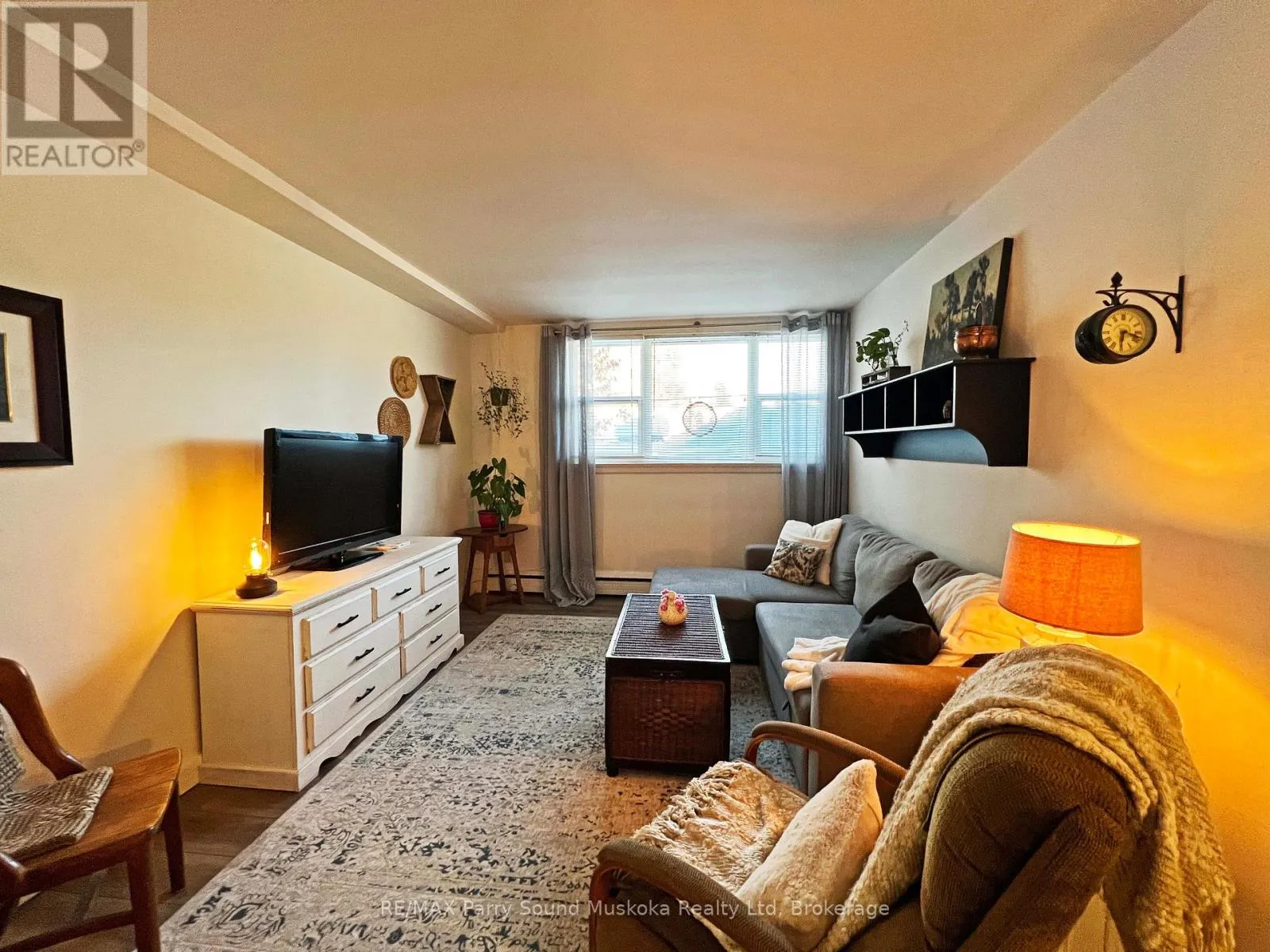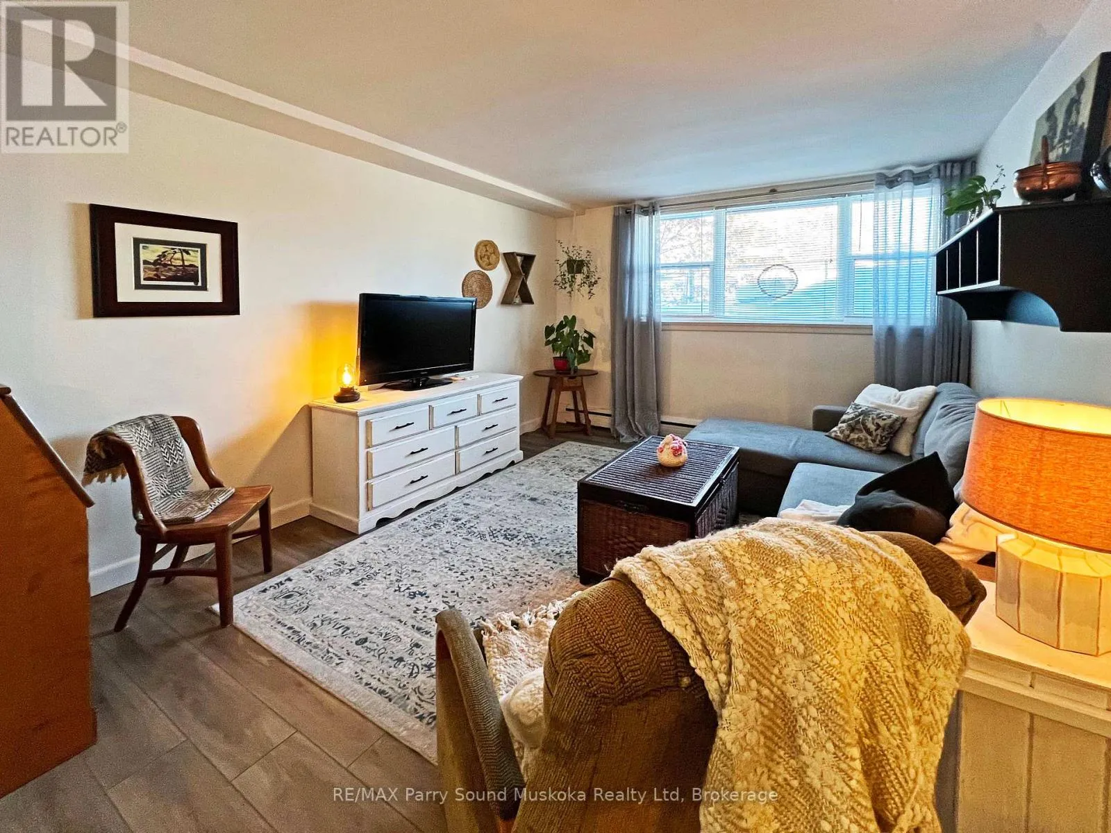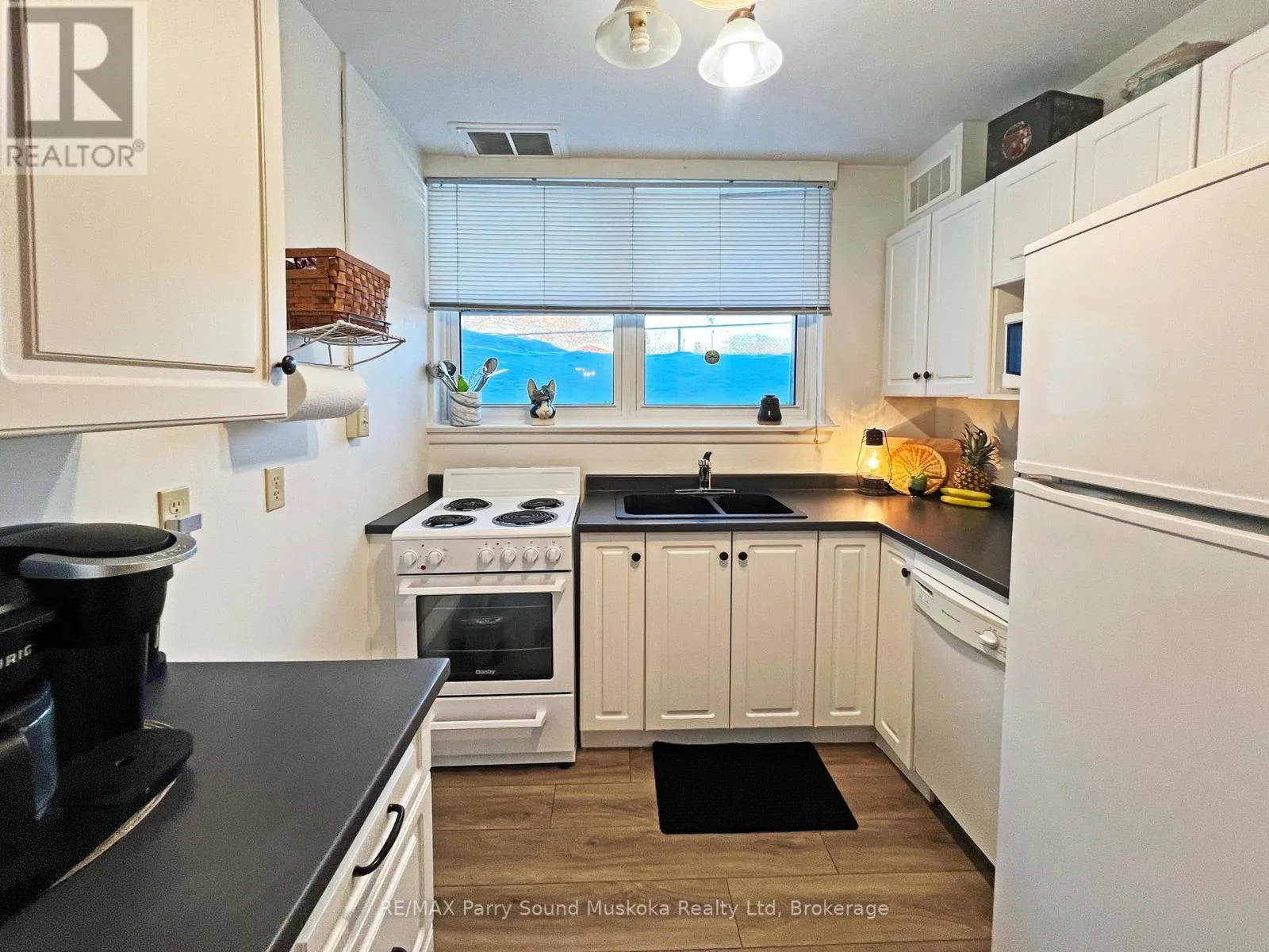 Cross Streets: 400, Parry Sound Dr, Joseph, Isabella. ** Directions: Hwy 400 to Parry Sound Dr, left to Joseph St, right to Isabella St to #118 on left. Beautifully Updated 2 bedroom first level condo, Large naturally bright windows, Featuring upgraded modern Kitchen, Updated 4 piece bath with new vanity & low flush toilet, Easy care laminate floors throughout, (only allowed on this level), Ideal layout opens from the the foyer to an open & bright living room, Separate dining area, Fully equipped kitchen boasts abundance of cabinetry & storage, New sink & countertop, Primary bedroom is large enough for a king size bed, double closets, 2nd bedroom offers closet & fold down desk, Ensuite storage room, Just a few steps from the main door and to the laundry room, Economical living - Low taxes, Condo fees include Heat, water & sewer, Walking distance to downtown Parry Sound, Shopping, Georgian Bay Beach & fitness trail! Home Sweet Home! (id:27476)