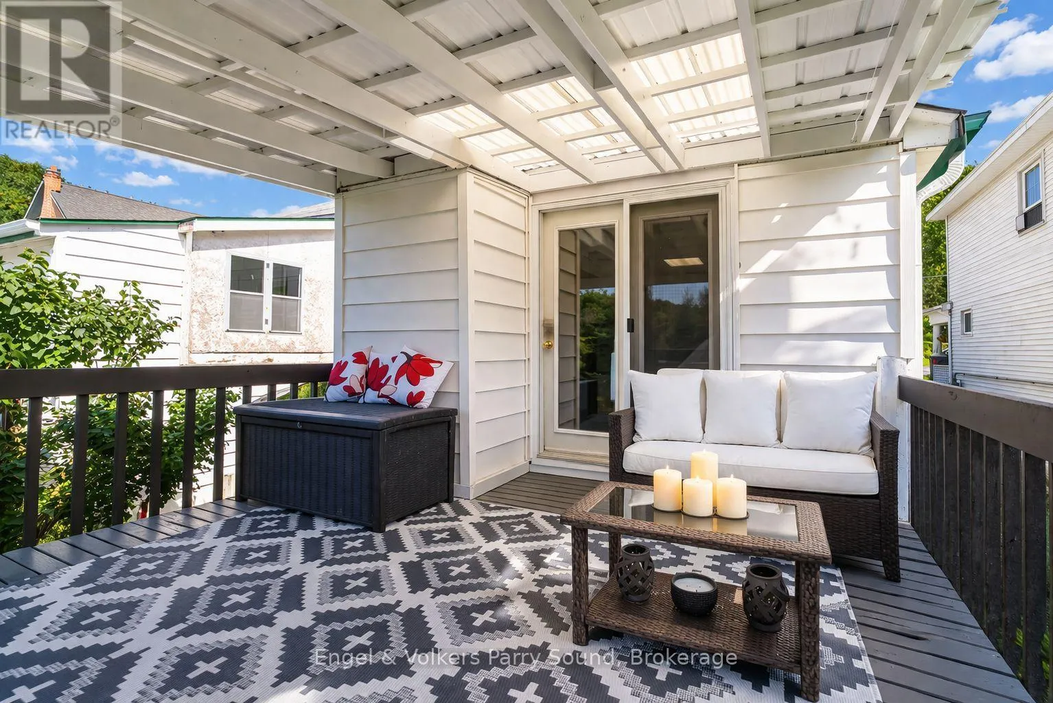 Cross Streets: Bowes & River. ** Directions: 400 North, exit onto Bowes. Continue to River, right on River Street. SOP. Riverfront Living in the Heart of Parry Sound -- Nestled along the tranquil Seguin River, this charming semi-detached home offers a rare blend of nature and convenience in one of Parry Sounds most sought-after locations. Featuring two bedrooms and nearly 800 sq. ft. of living space, the home is set on a 33' x 121' lot with a covered deck where you can unwind and enjoy peaceful river views. The property invites future possibilities with room for an addition, while the auxiliary riverside building provides incredible bonus space, ideal for a games room, art studio, yoga retreat, or whatever inspires your lifestyle. Slip a kayak directly into the river and explore the scenic waterways, or simply relax in the natural serenity at your doorstep. Perfectly situated within walking distance to downtown amenities, including shopping, restaurants, hospital, and more, this home offers both lifestyle and convenience. Whether you're seeking a starter home, a riverside retreat, or a strong rental investment in Parry Sound's growing market, the opportunities are endless on River Street. (id:27476)