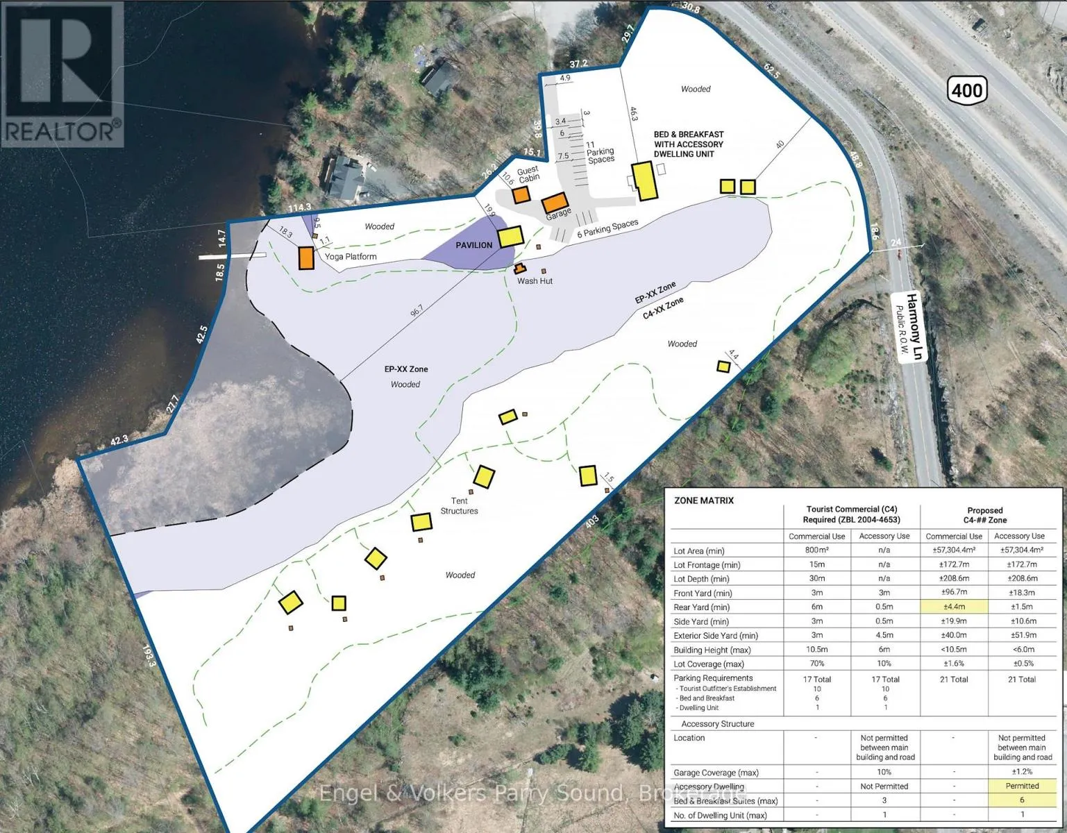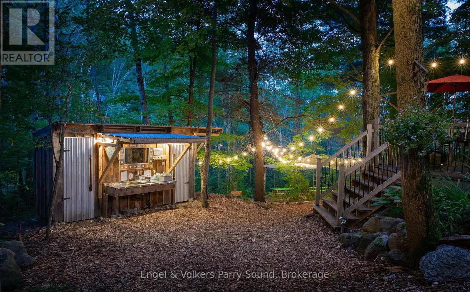 Cross Streets: Hwy 400 & Bowes Street. ** Directions: Highway 400, exit Bowes Street. First right on Louisa St, right on Harmony Lane. Rare Commercial Waterfront Opportunity in Parry Sound - Harmony Outdoor Inn. A truly rare opportunity to acquire Parry Sound's only waterfront hospitality retreat or use personally for your own private oasis! This well-established and highly rated business sits on 14.16 acres of commercially zoned waterfront land, boasting nearly 500 feet of shoreline on the scenic Seguin River and surrounded by tranquil forest trails. Minutes from the downtown core, yet immersed in nature, this unique property offers an unparalleled fusion of seclusion and convenience. Zoned for six guest suites and up to ten campsites or tourist accommodation units (up to 500 SF each), the property presents a tremendous opportunity for a visionary entrepreneur or outdoor enthusiast seeking to grow an already thriving enterprise. The main house features three bedrooms, further sleeping accommodations in the lower level, and inviting open concept common living and dining spaces. Two wood burning fireplaces on the main floor and lower level. A thoughtfully designed Pavilion anchors the property, offering guests, friends & family a communal hub for dining, working remotely, or relaxing after a day of adventure. Seven glamping-style campsites are already in place, each outfitted with eco-conscious, chemical-free composting outhouses. At the waters edge, guests enjoy a sandy beach, dock, yoga platform, fire-pit and serene riverfront vistas ideal for kayaking, canoeing, stand-up paddle-boarding, or simply unwinding by the water. In the winter, the experience transforms with snowshoeing, skating, and cozy fireside moments, offering four-season revenue potential. This is a once-in-a-generation offering; a fully zoned, turnkey hospitality retreat or personal oasis. All within moments of Parry Sound's vibrant shops, restaurants, and hospital, with direct highway access. A premier investment and lifestyle opportunity unlike any other in the region. (id:27476)
