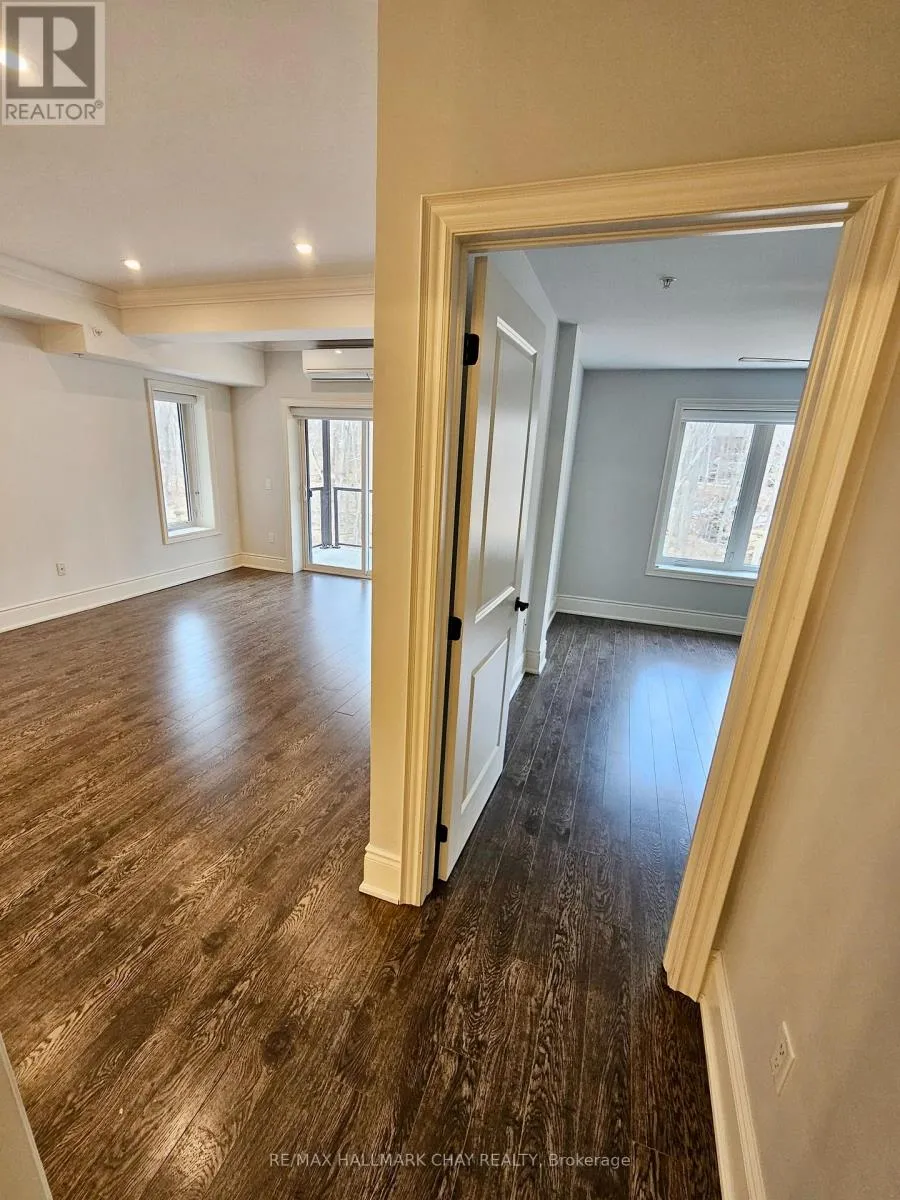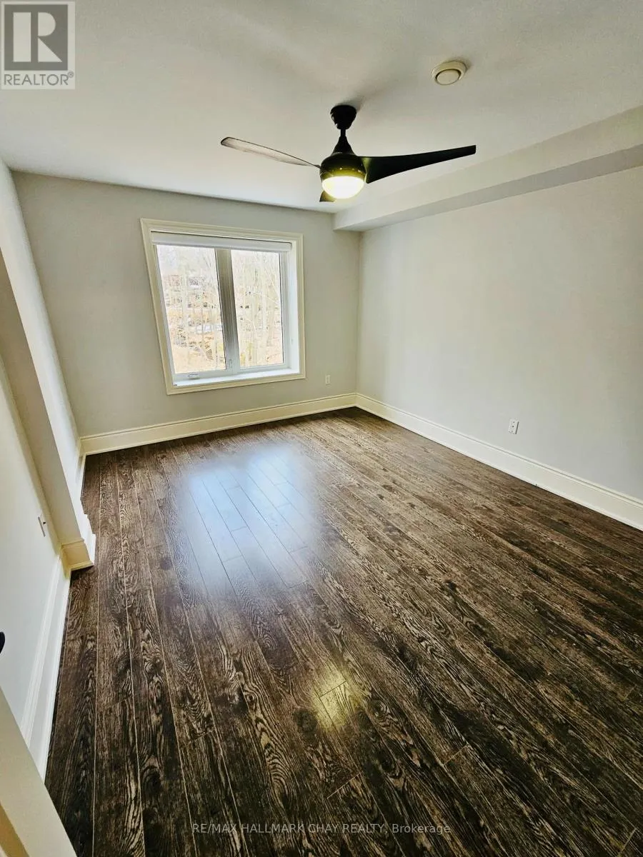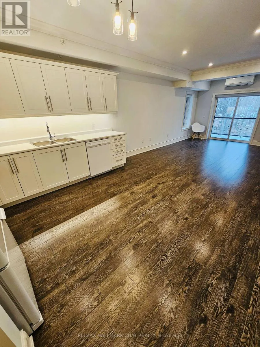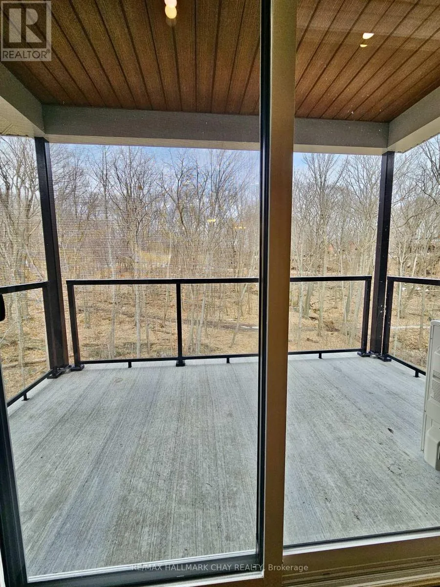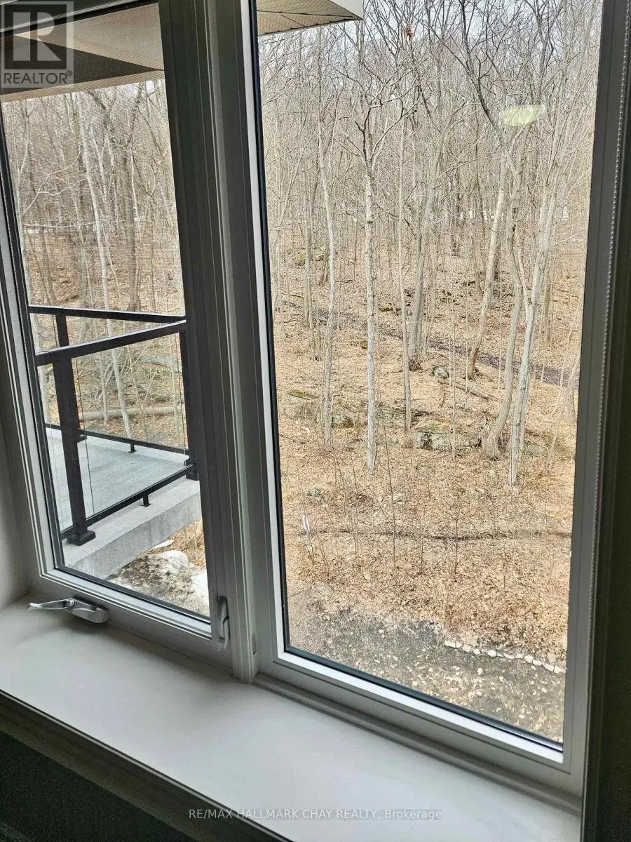 Cross Streets: Marion Ave./Salt Dock Rd. ** Directions: Waubeek to Marion to Salt Dock Rd. Approx. 875 Sq Ft 'Keystone' Condo at the Granite Harbour development on Georgian Bay. Top Floor unit includes 1 Bedroom with walk-in closet, den with closet, 1 bathroom with walk-in shower, in-floor radiant heat, A/C, in-suite laundry, HRV ventilation system, LED pot lights and crown moulding in kitchen/dining/living areas. Entire unit is carpet-free with laminate flooring and ceramic tiled washroom. Private balcony with forest canopy view. Included is one designated heated underground parking space and storage unit. Elevator access to parking garage. Available visitor parking and use of 'party' room. Appliances and custom blinds included. Easy access to the coastal walking trail and close to amenities of downtown Parry Sound including the Stockey Centre and waterfront restaurants. Listing agent is the owner of the property. (id:27476)