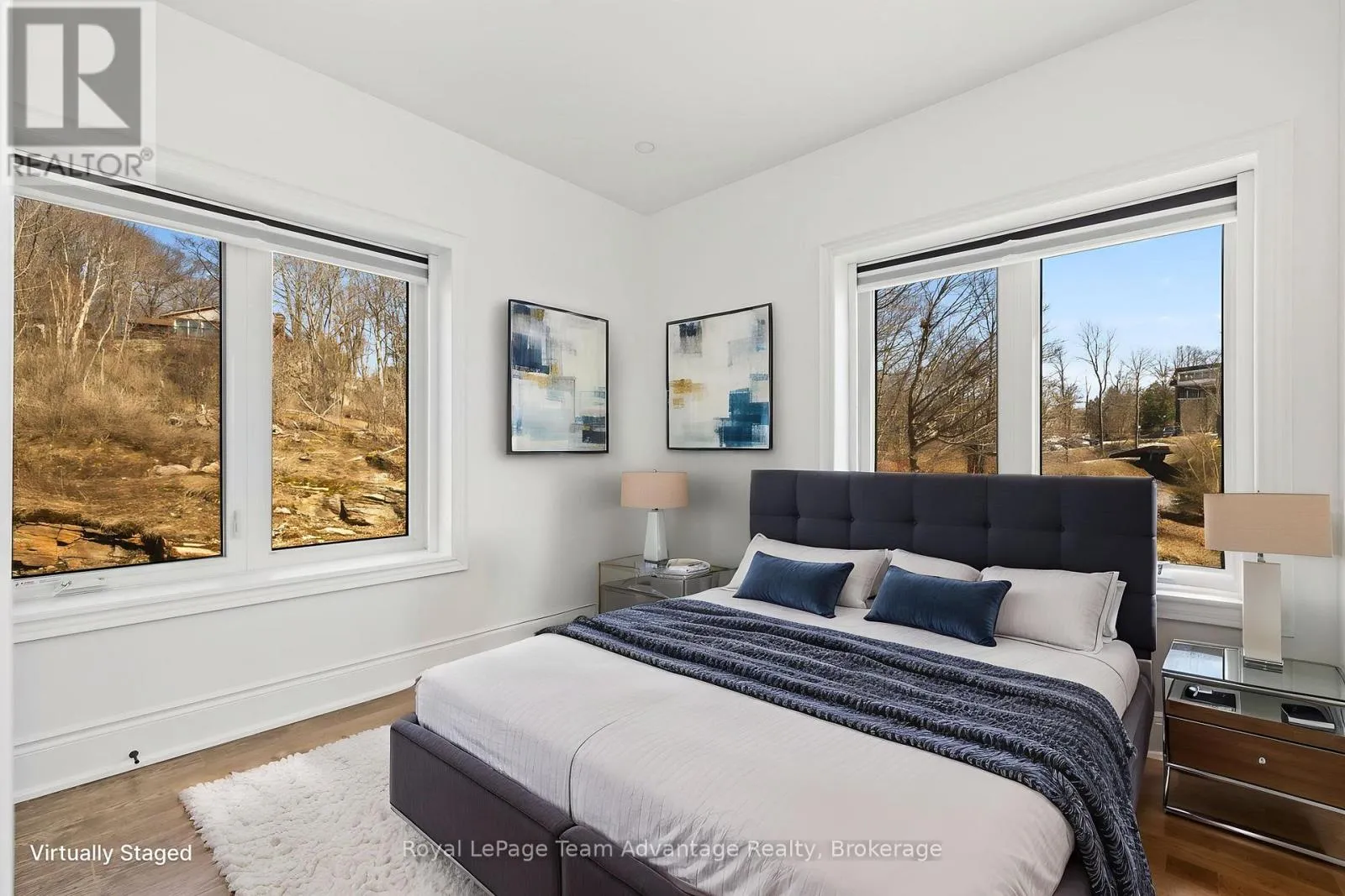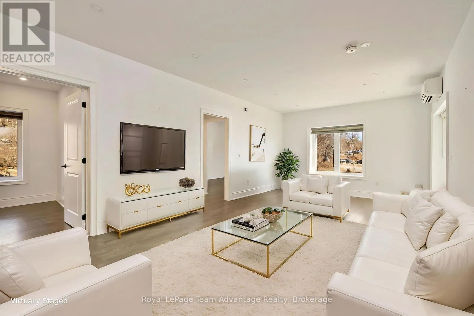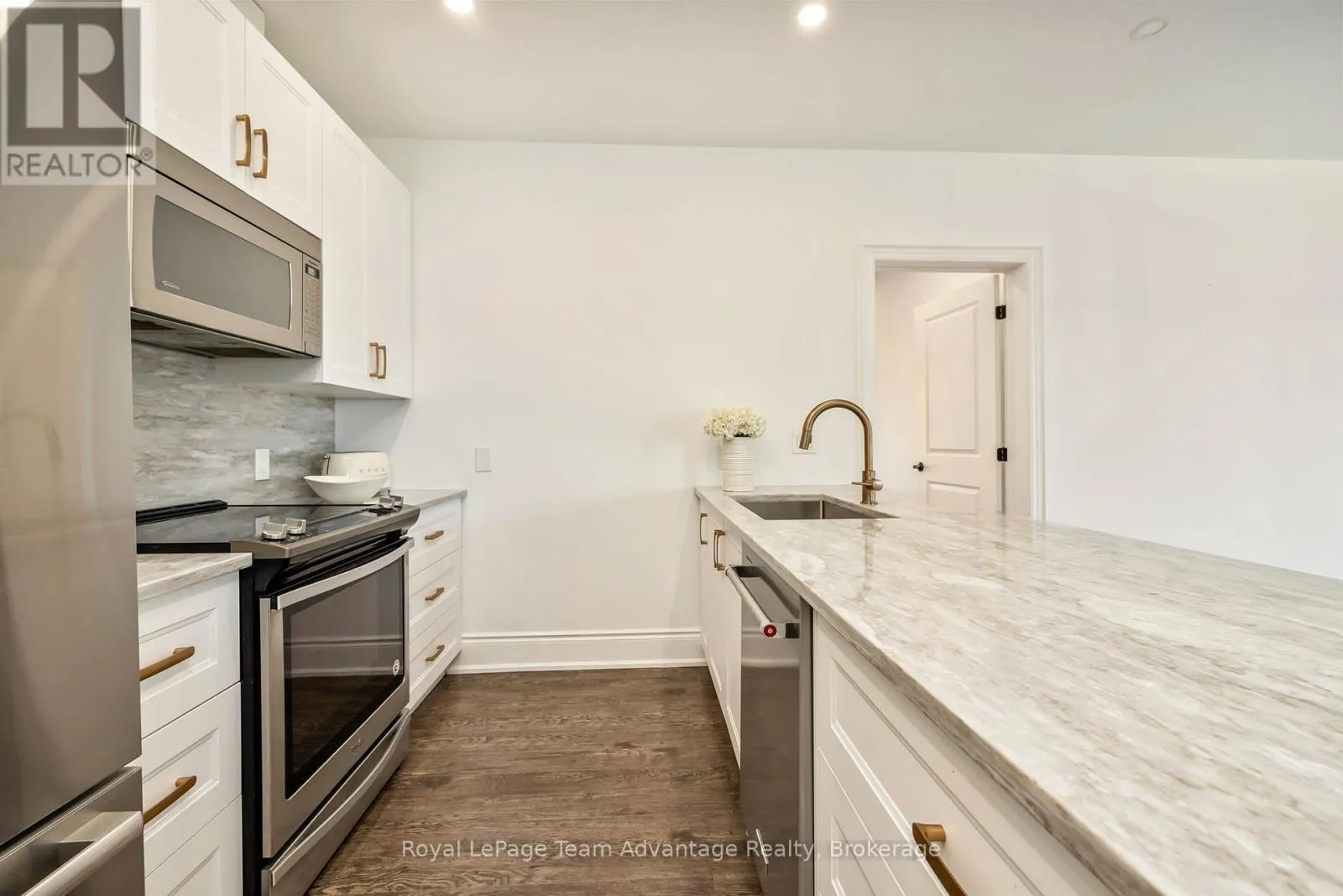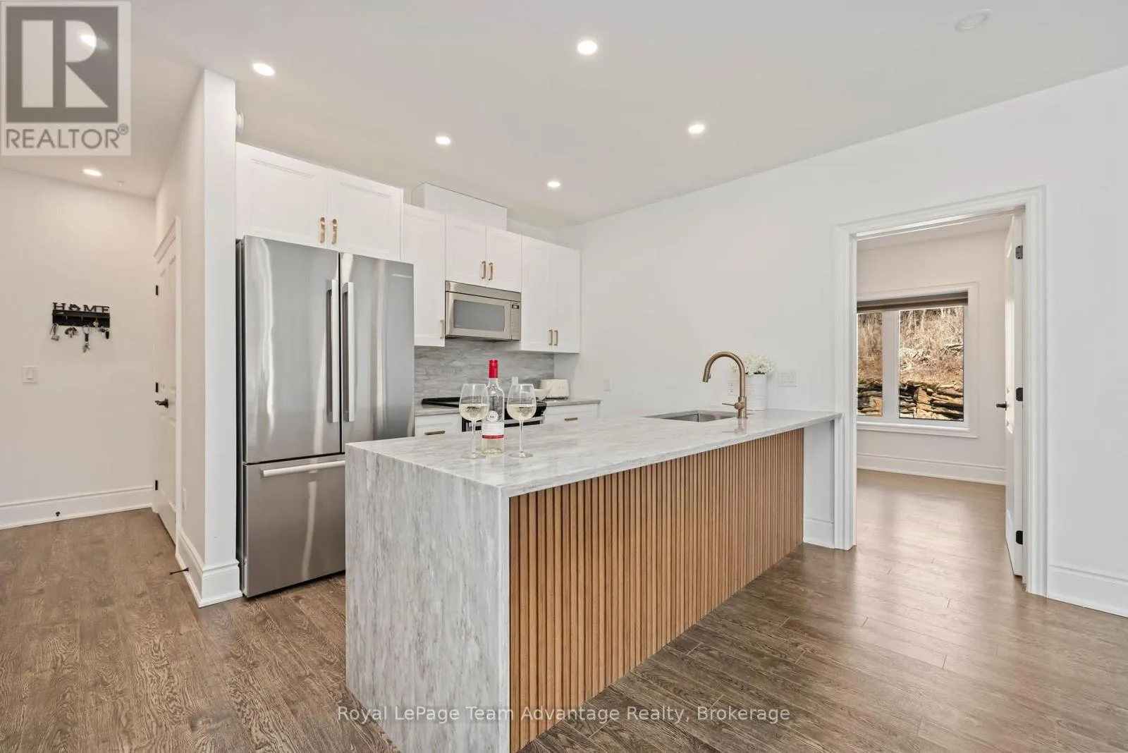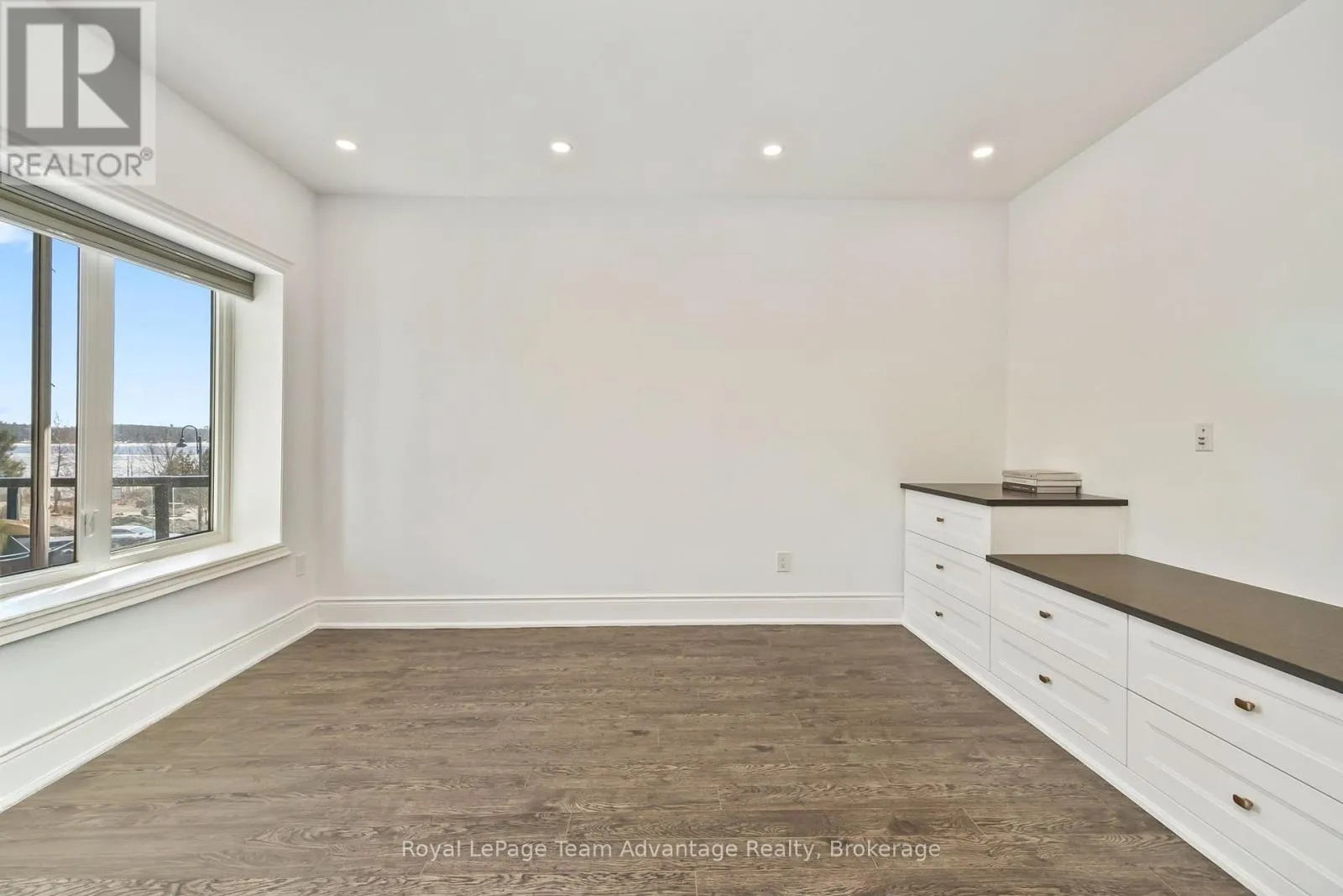 Cross Streets: Marion Ave and Salt Dock Road. ** Directions: Wood St to Marion Ave to Salt Dock Road. Experience breathtaking Georgian Bay waterfront views from this stunning open concept 2 bedroom, 2 bath + den condo. The beautifully appointed kitchen boasts a large peninsula island with waterfall countertop and stainless steel appliances - perfect for entertaining or casual dining. Step out from the living room onto your private balcony and take in picturesque views of Georgian Bay. The primary bedroom offers a walk-in closet and a private ensuite while the second bedroom enjoys adjacent access to a 3-piece bath. The den/media room is enhanced with gorgeous built-in cabinetry providing style and functionality. Located in Parry Sound - this exceptional residence in 'The Breakers' places you a short distance from the fitness trail, sailing club, beach, restaurants and Stockey Entertainment Centre making it easy to enjoy a relaxed, low-maintenance lifestyle. Welcome home. (id:27476)