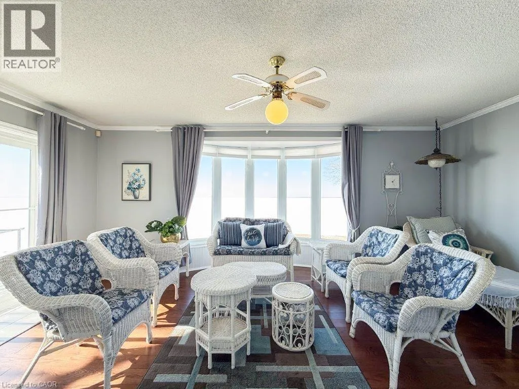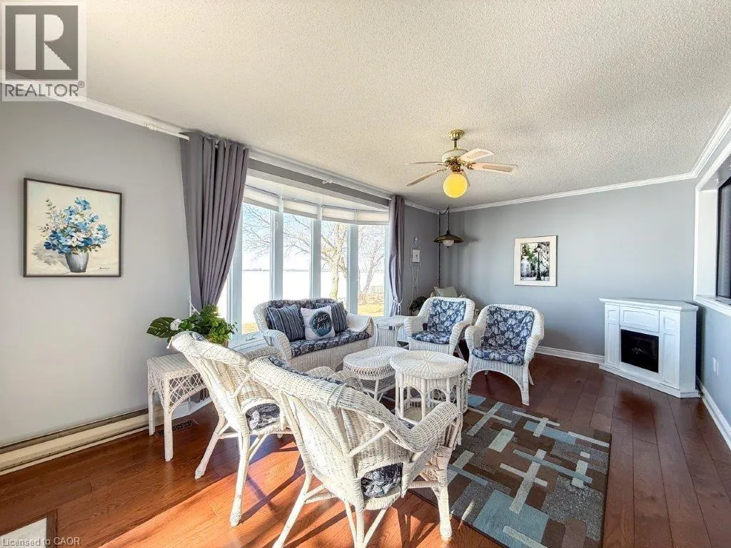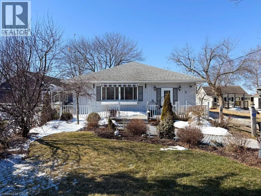 Sandusk Road south to South Coast Drive. East to Sunset Drive. Property on the corner of South Coast Drive & Sunset Drive. Begin each day at the lake where reflections on the water replace walls, delivering a natural stress relief and a lifestyle rather than a house. The doorstep opens to limitless recreationâswim, boat, fish, or simply relax on a sun-drenched afternoon. Waterfront dinners, sunset bonfires, and sweeping views redefine entertaining, and guests arrive instantly sensing the calm. 2 Sunset Drive is a lakefront residence at Peacock Point, just west of Selkirk, on a 0.27-acre lot. With 3 bedrooms and 2 bathrooms, this vinyl board & batten home offers breathtaking Lake Erie views and 2,200 sq ft of well-planned living space, plus an attractively landscaped front yard and a welcoming front deck with an awning. Inside, the open plan features a generous living room with a natural gas fireplace, built-in cabinetry, crown molding, and hardwood floors which flow throughout the home. The dining area flows into a large kitchen equipped with ample cabinetry, a peninsula for three stools, a center island for prep, a built-in stove top, oven, and dishwasherâideal for the family chef. A nearby family room connects to a sunroom filled with natural light and views of the lake, with patio doors to the side deck and rear yard. The main level includes two guest bedrooms and a three-piece bathroom, while the expansive primary bedroom offers direct access to the side deck and rear yard. It also has its own private three-piece ensuite bathroom complete with an additional closet for clothes storage plus washer and dryer. The full, unfinished basement provides uncapped potential. Ready to see it in person? Reach out to arrange a private tour and imagine living the lakefront lifestyle at 2 Sunset Drive, where every sunset invites you home. (id:27476)